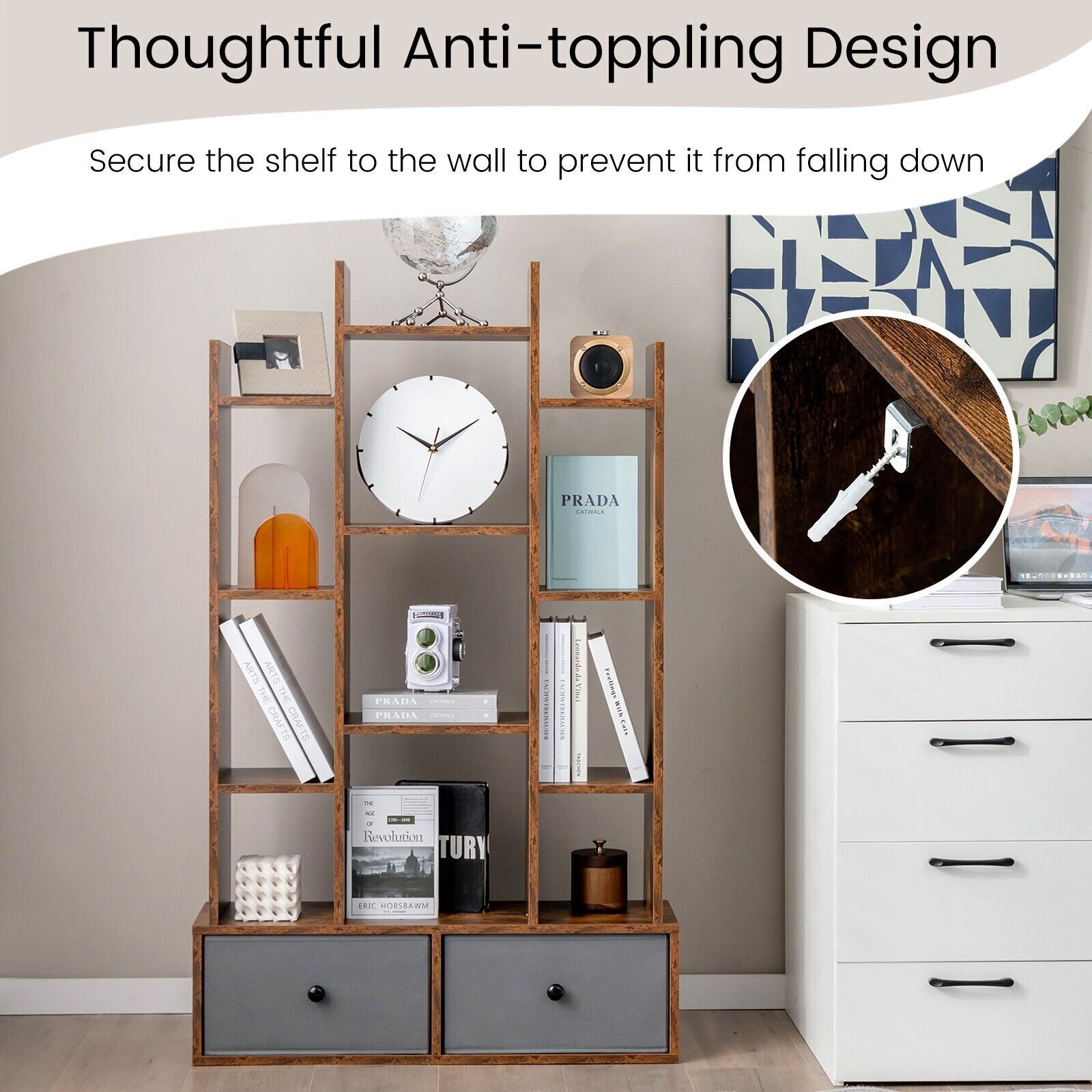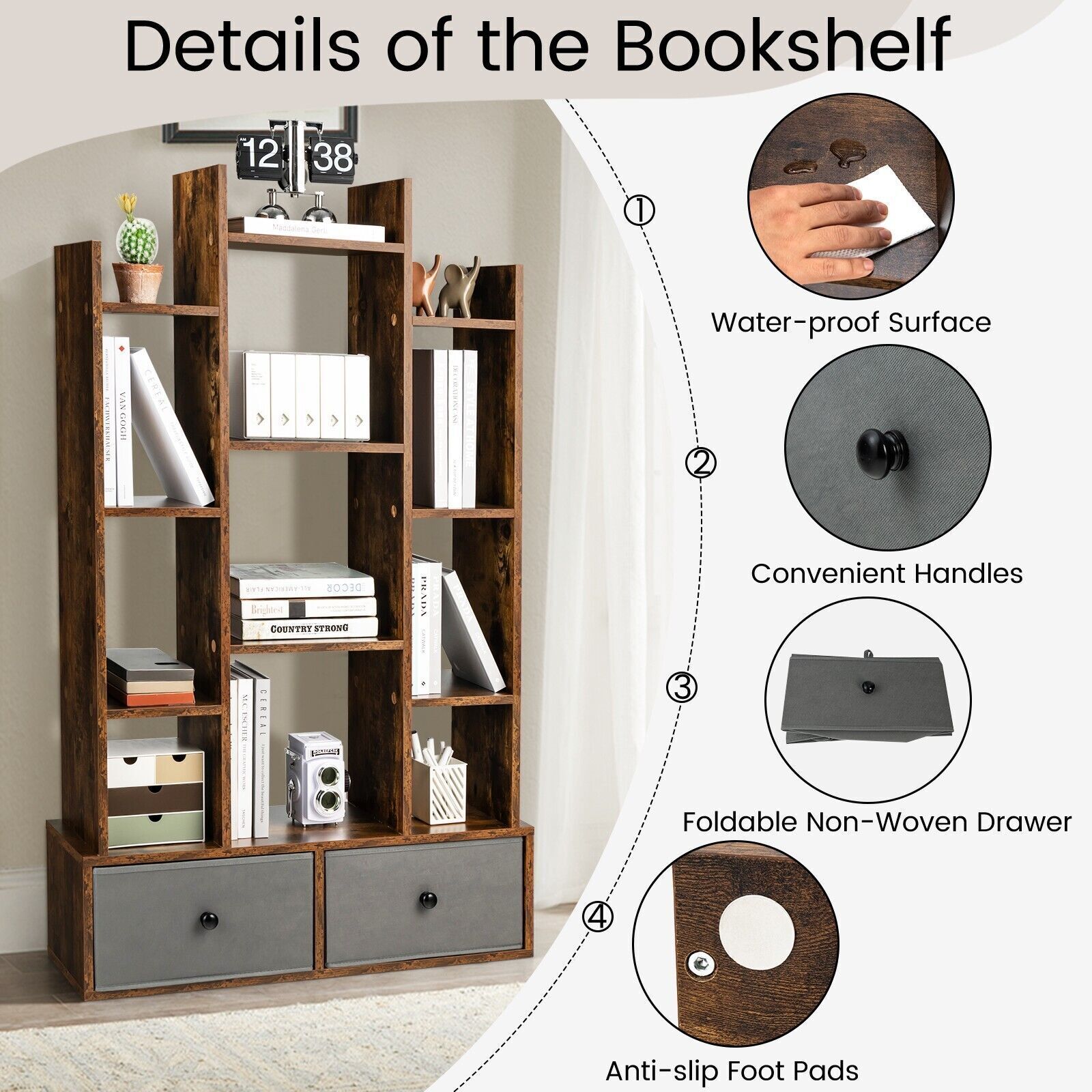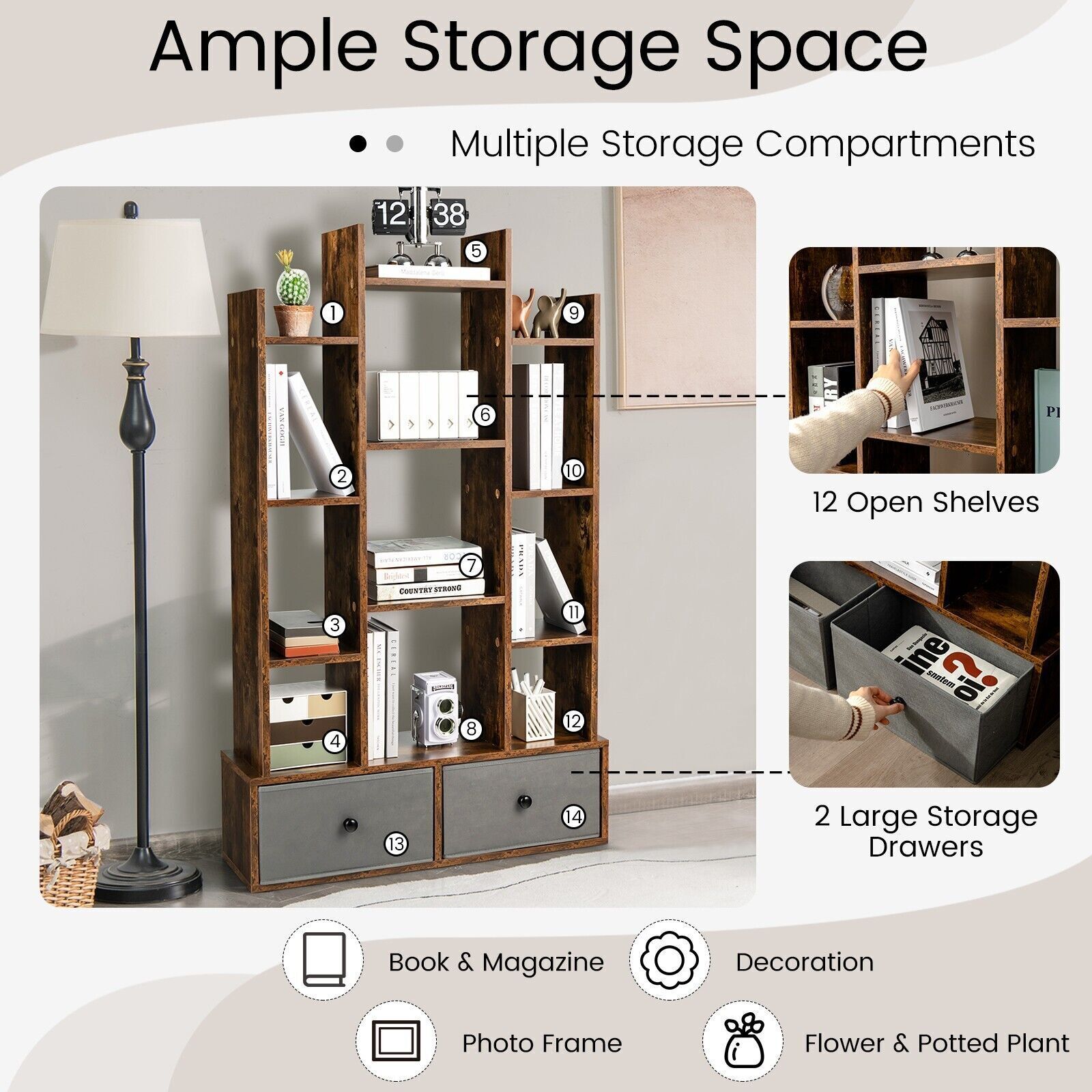 12 Tier Bookshelf Open Storage Wood Bookcase Organizer Display Shelf