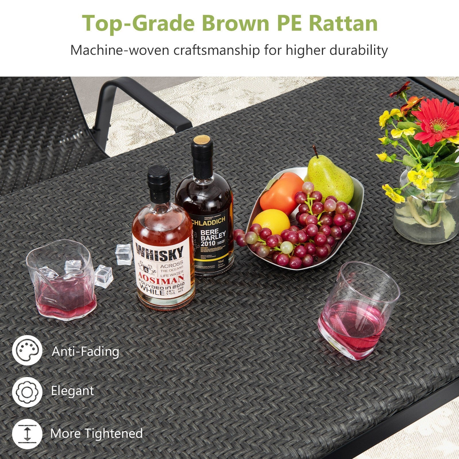 120 cm Wicker Dining Table Patio Rectangular Rattan Table for 6 people