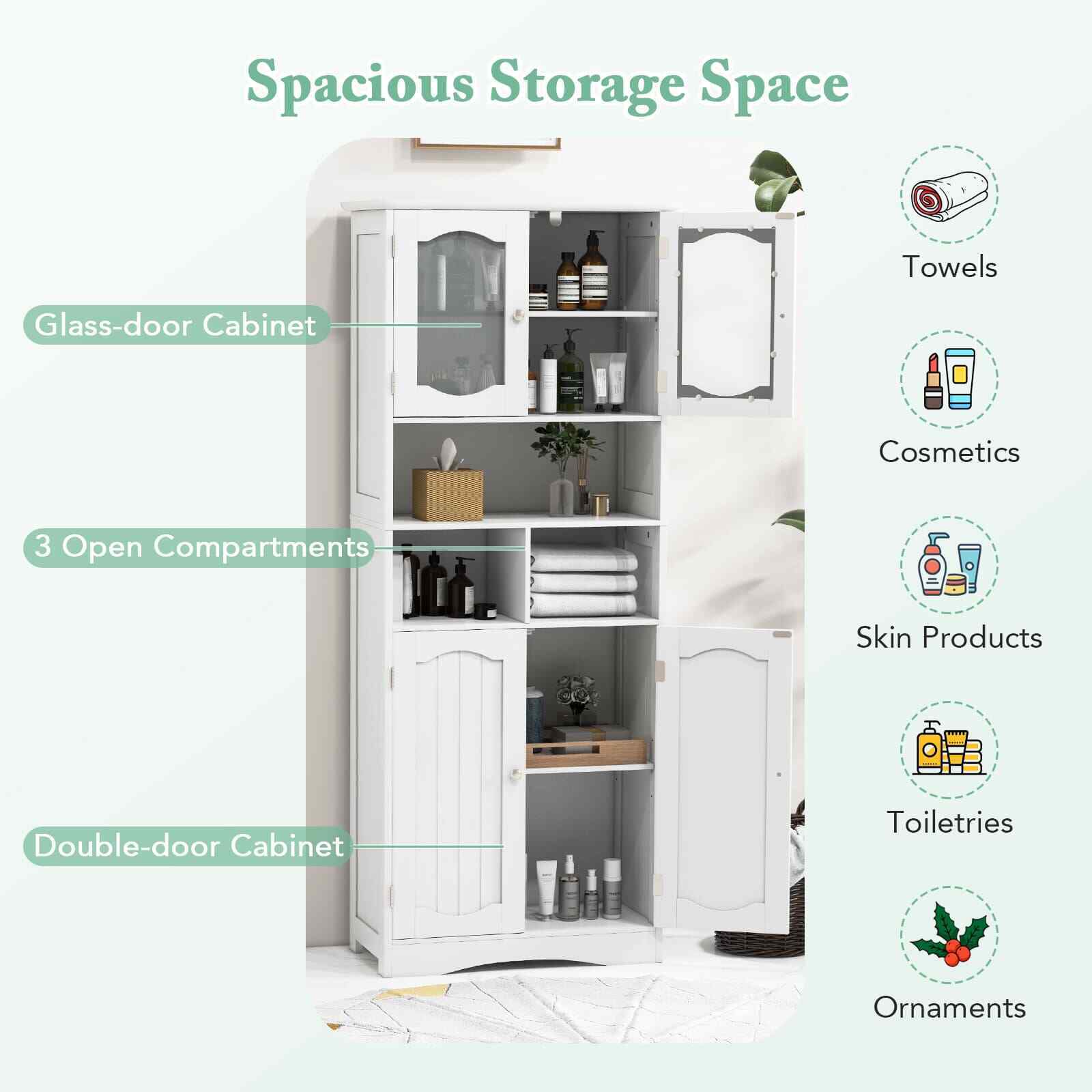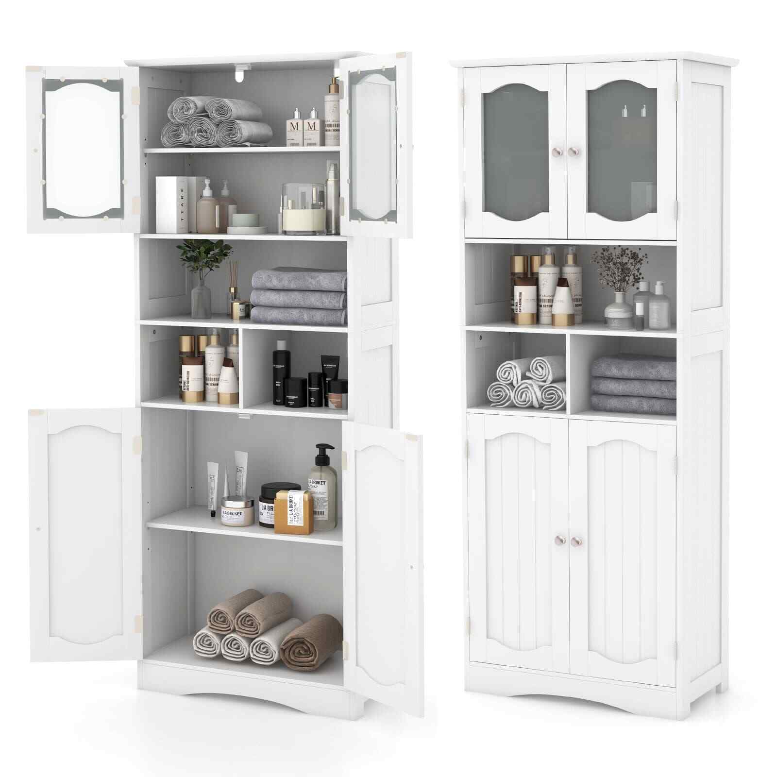 148cm Tall Bathroom Cabinet Freestanding Storage Cabinet-White