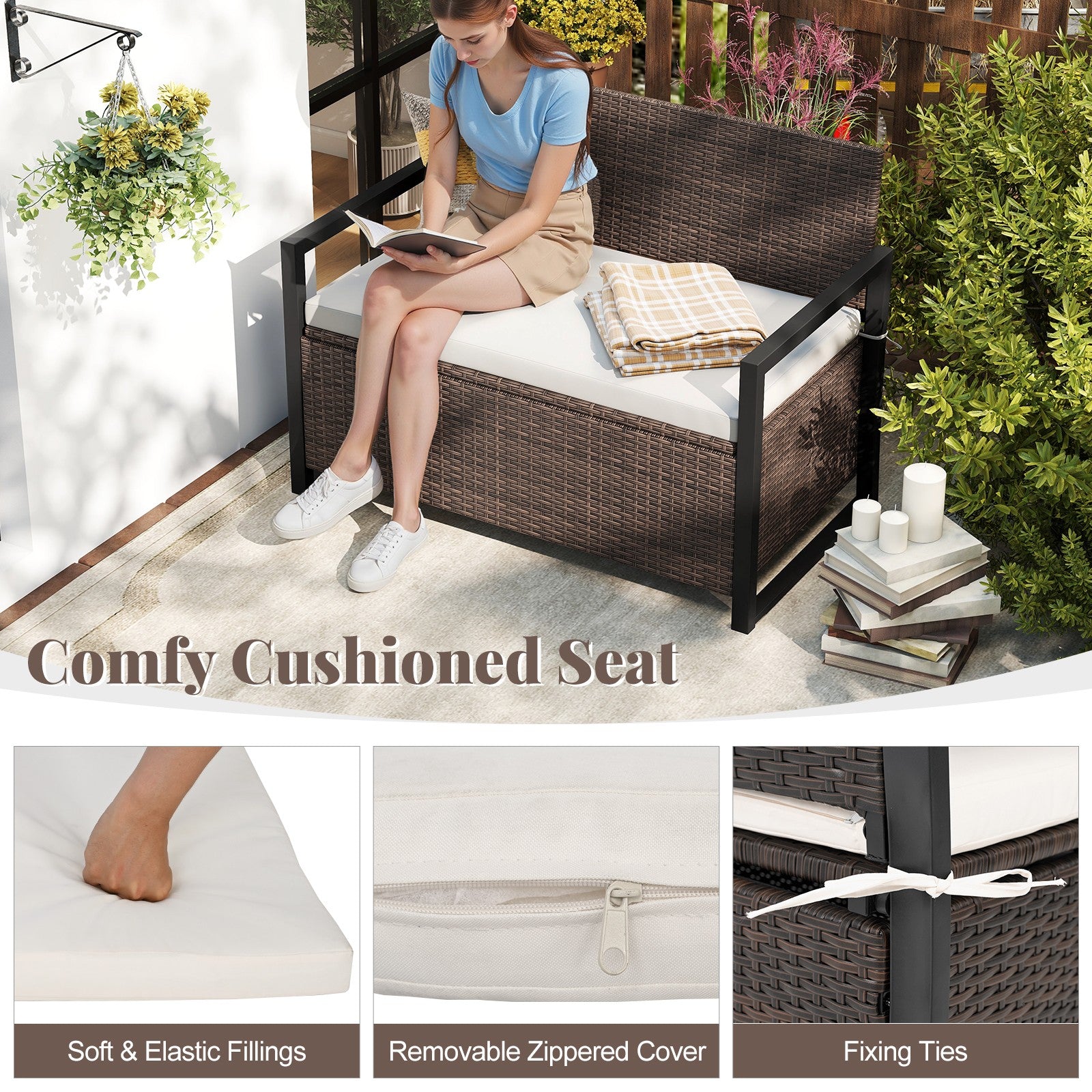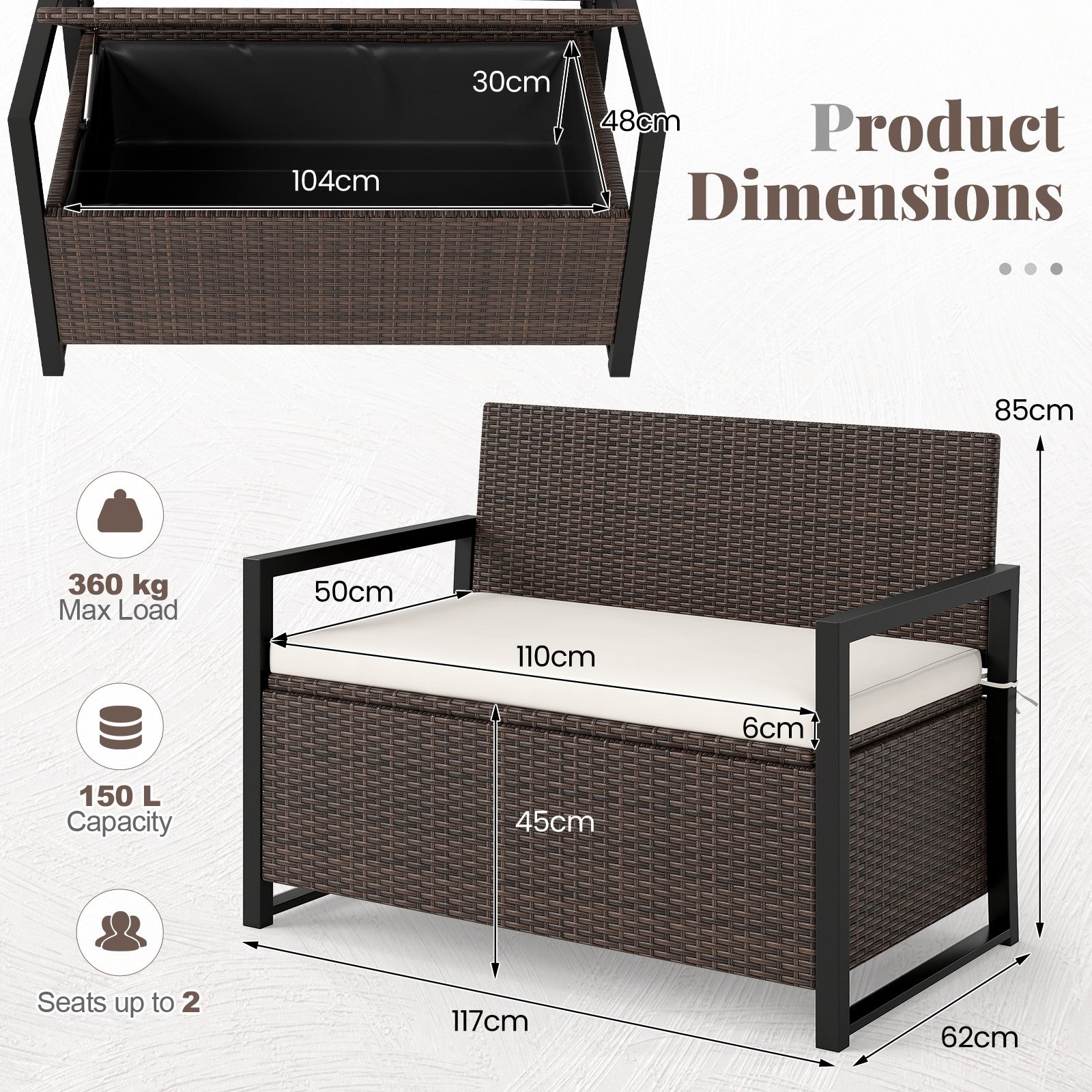 150L Outdoor Storage Bench PE Rattan Deck Box Seat w/Cushion-Brown