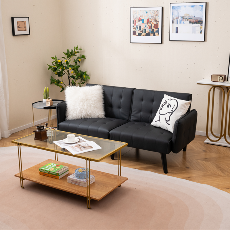 164 CM Convertible Futon Sofa Bed Couch Loveseat W/Backrests Black