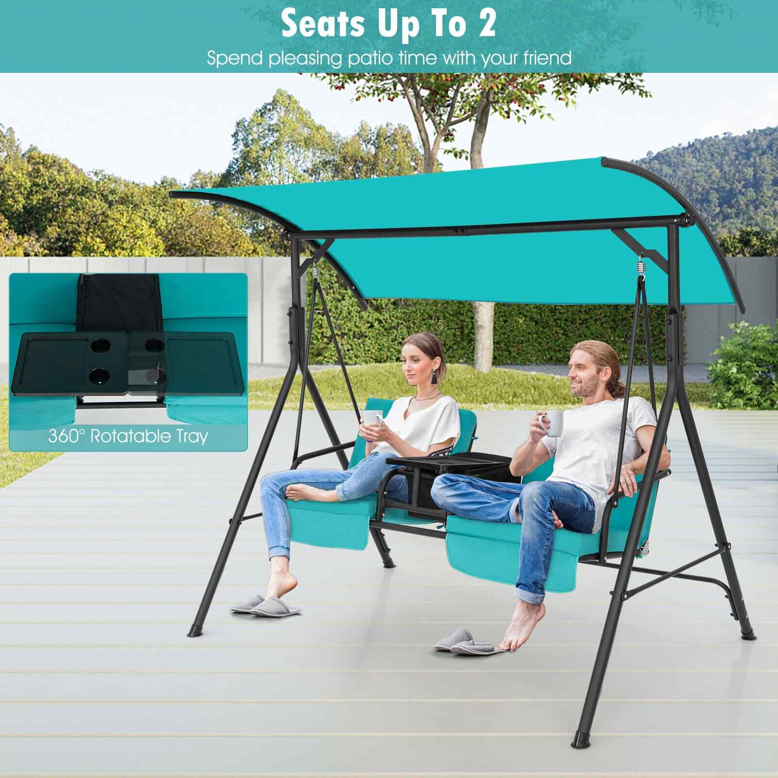 2 Person Porch Swing Outdoor Canopy Swing Chair Loveseat Swing-Green