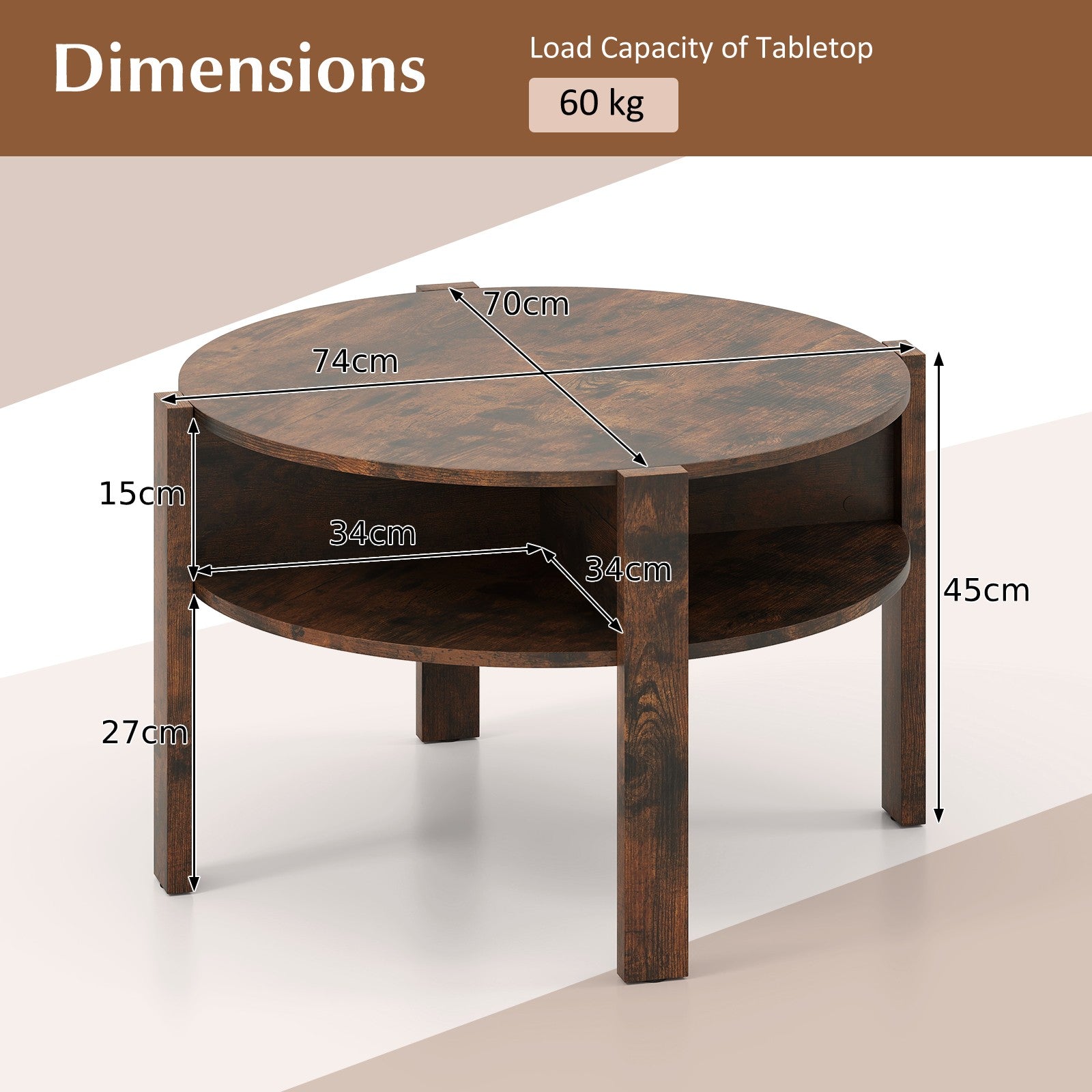 2-Tier Round Coffee Table 74cm Tea Cocktail Table w/ Storage-Coffee