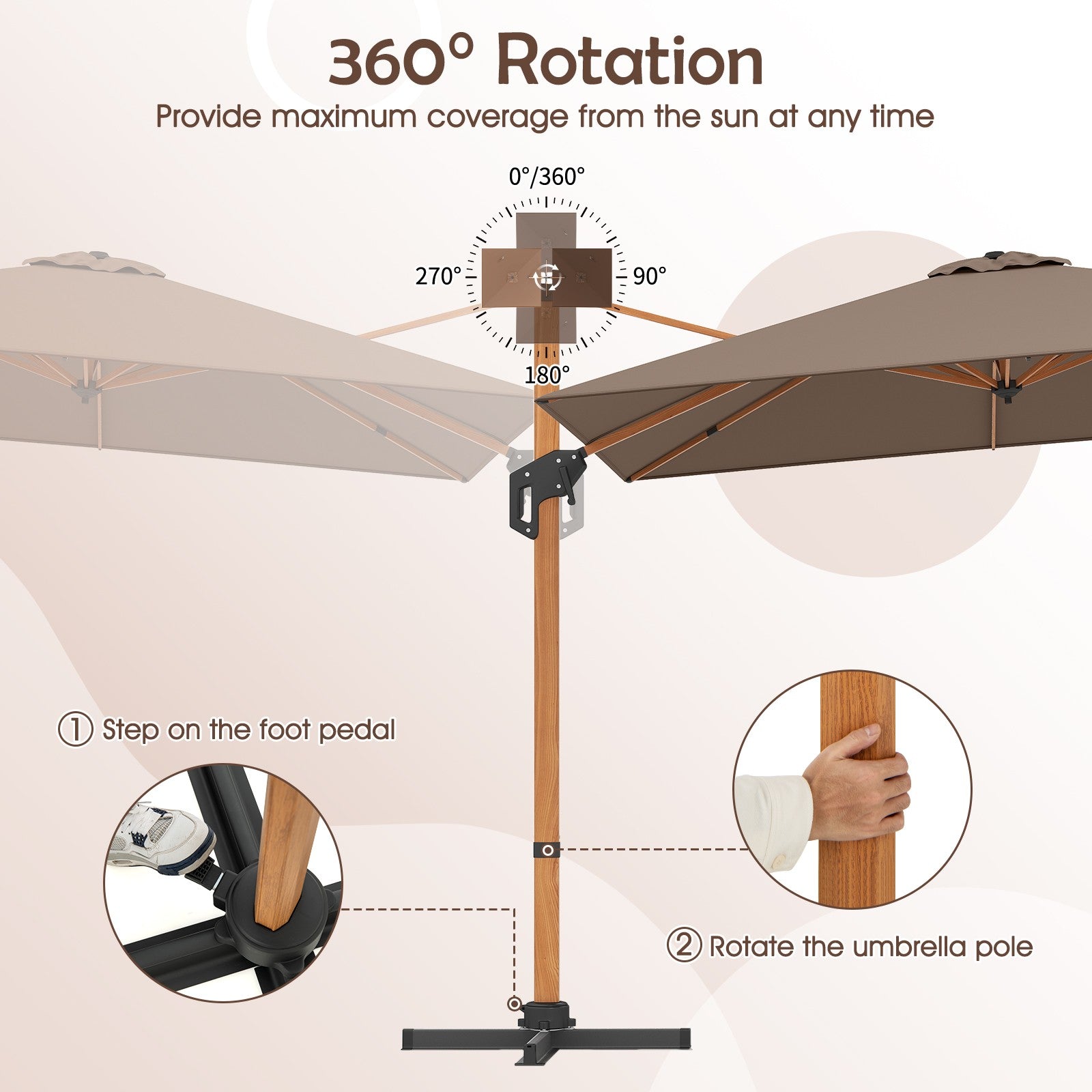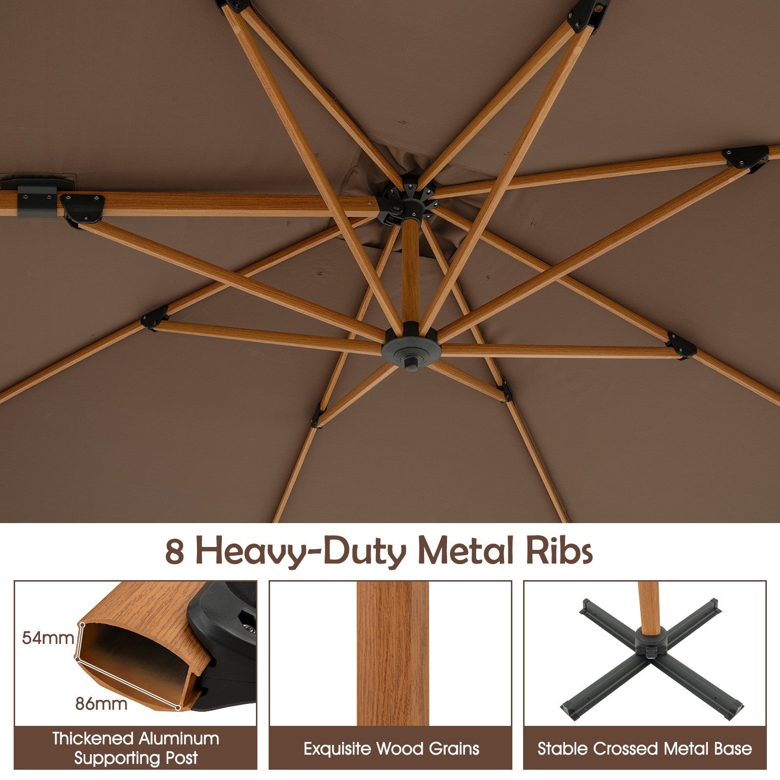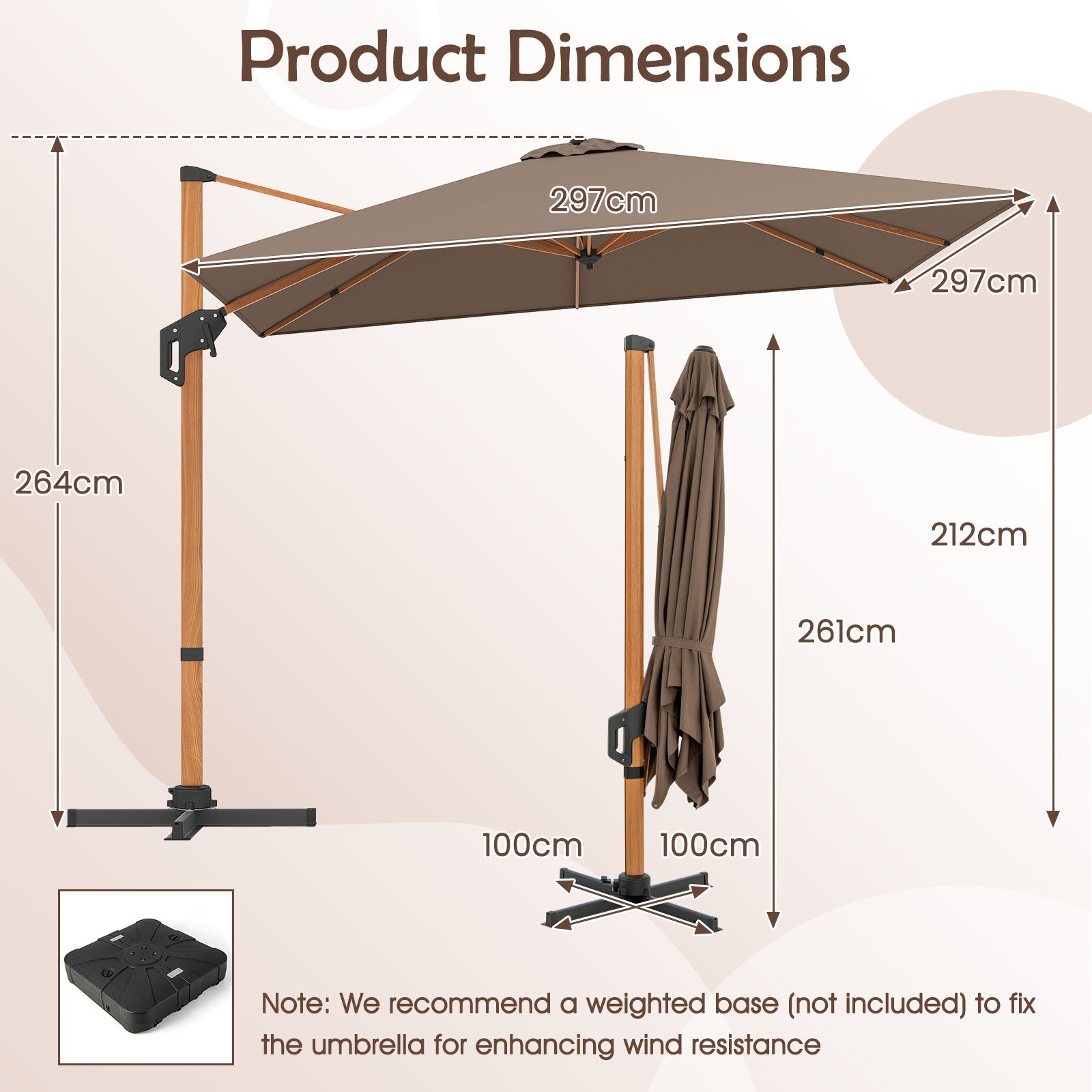 297cm Patio Cantilever Umbrella Square Double-Top Offset Umbrella Coffee
