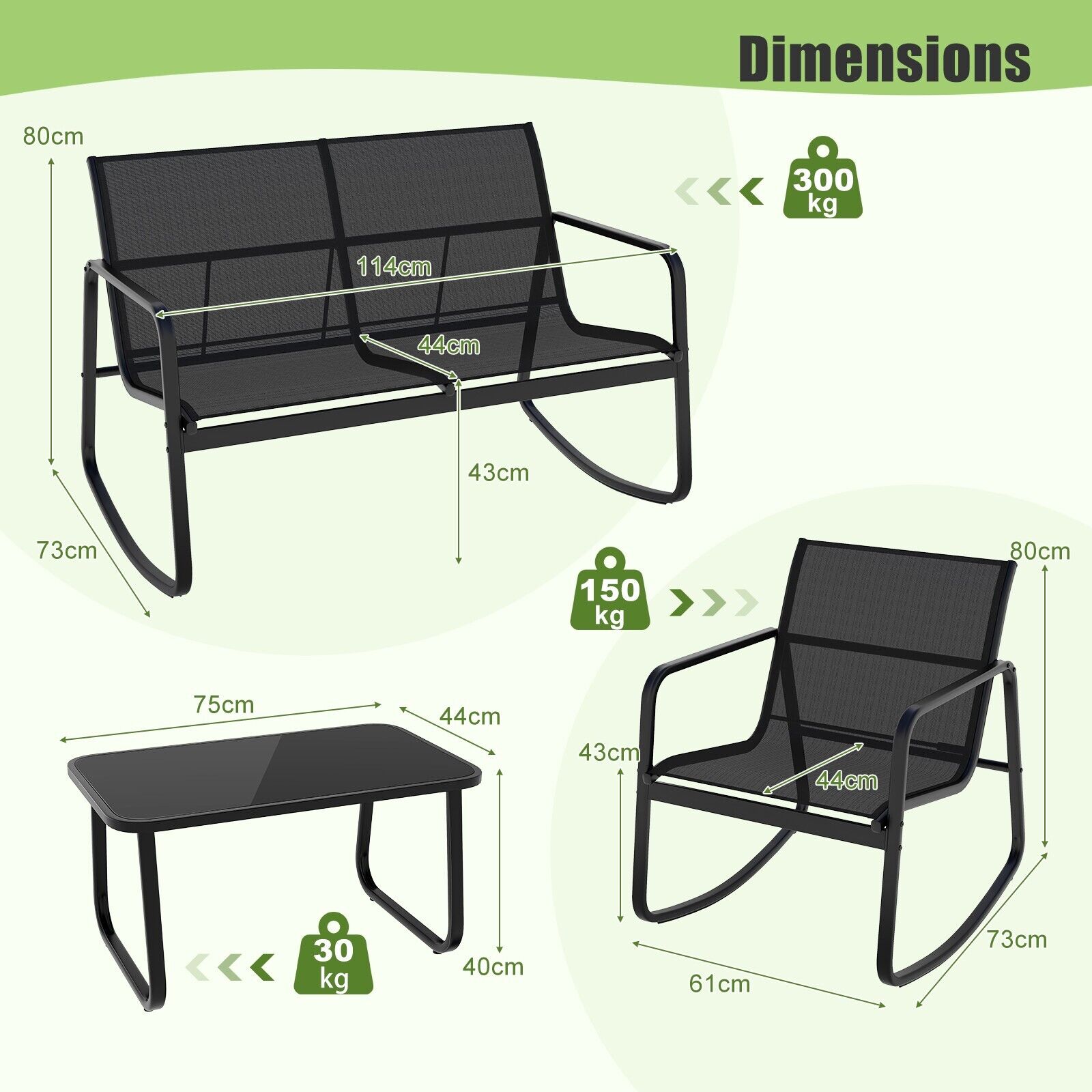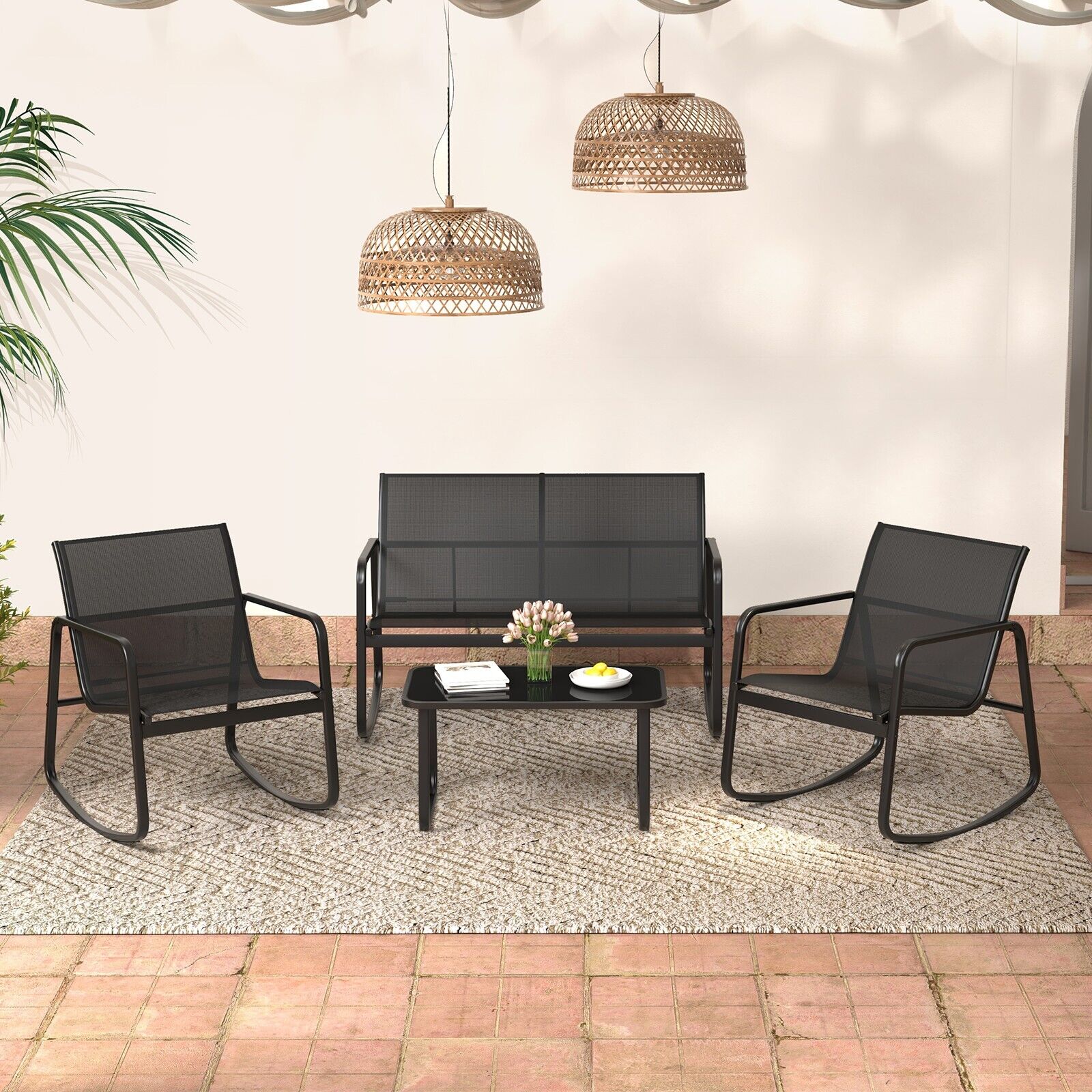4 Piece Patio Rocking Set Outdoor Rocker Chair Conversation Set