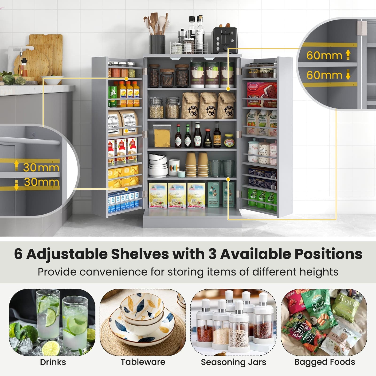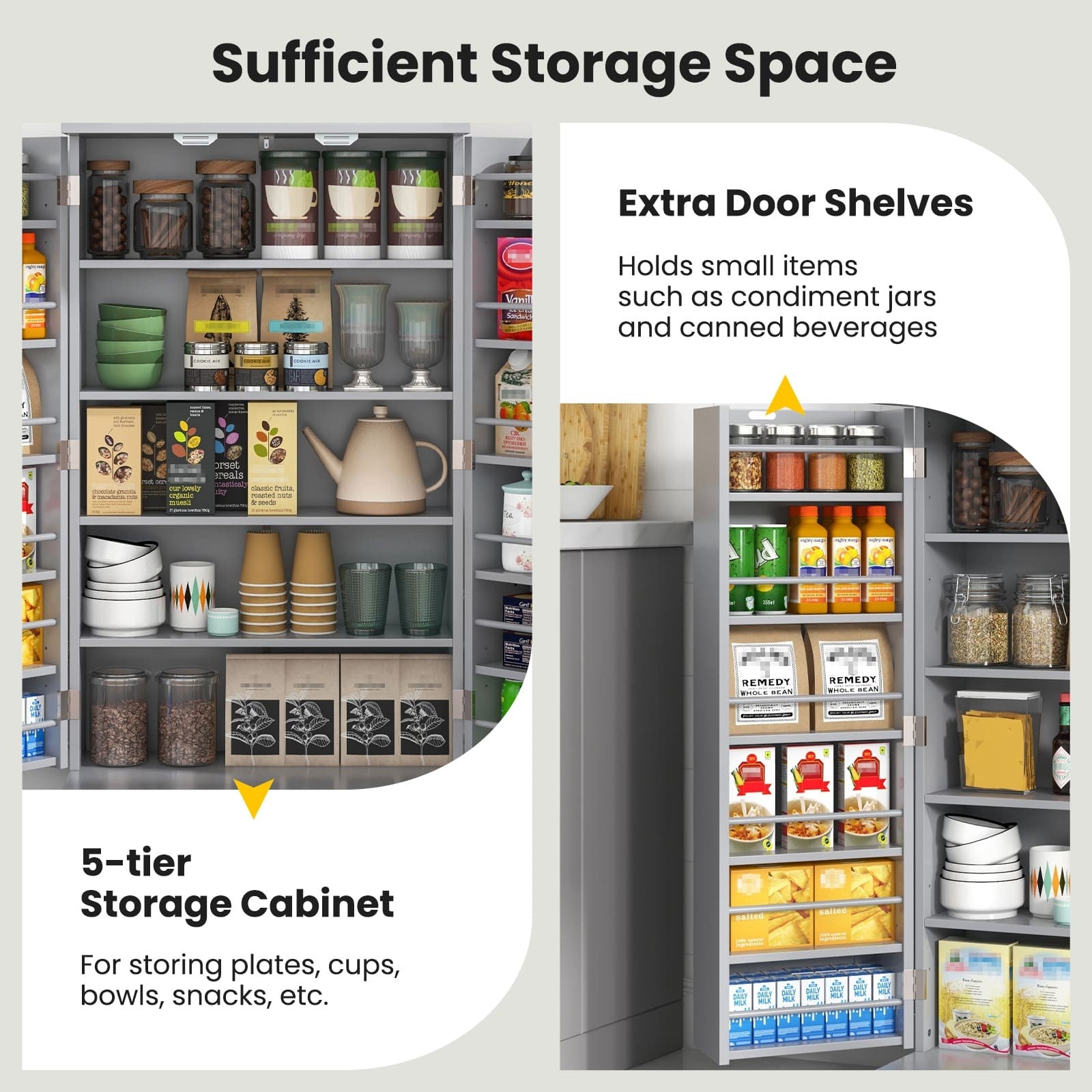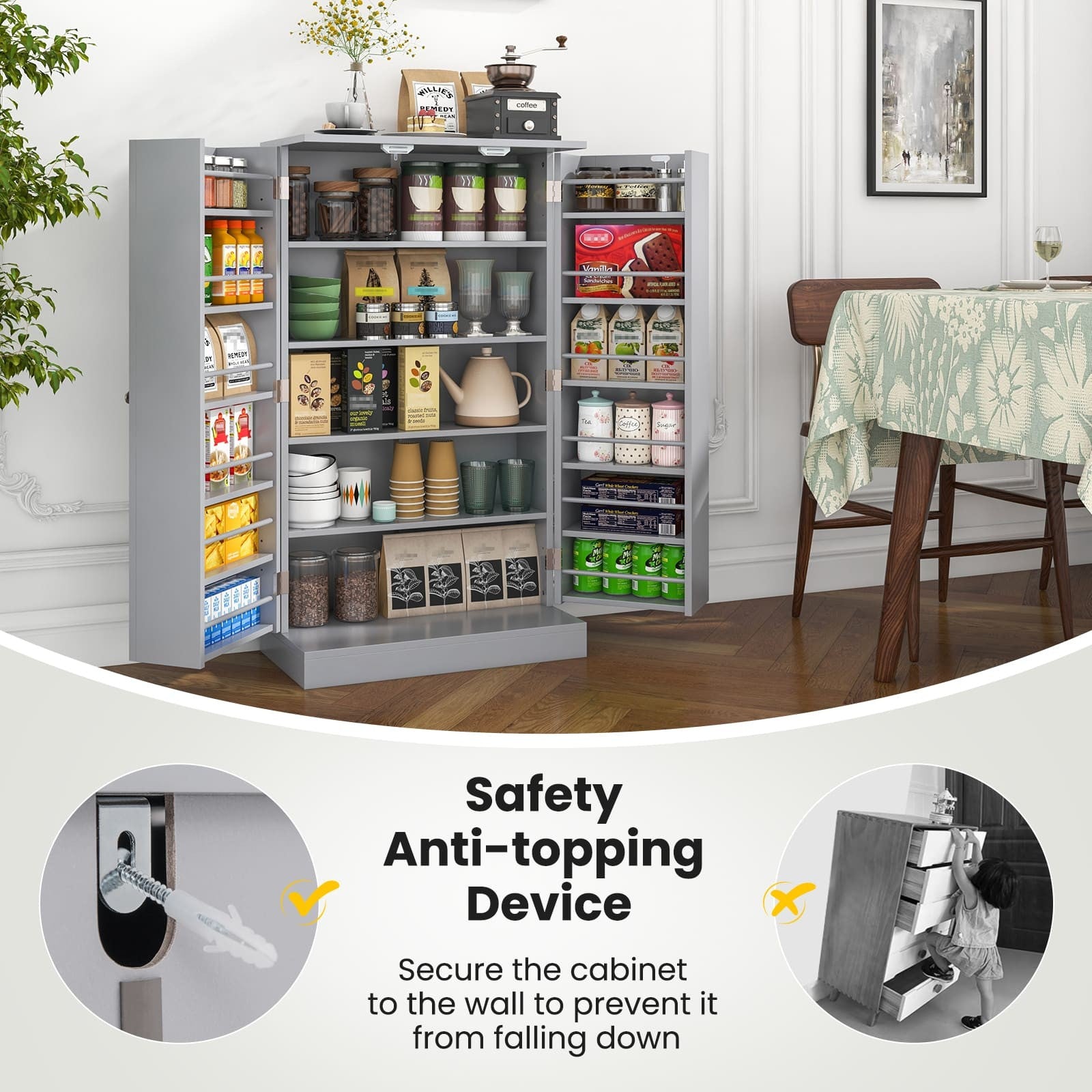 41” Tall Pantry Cabinet Kitchen Storage Cabinet with Doors-Grey