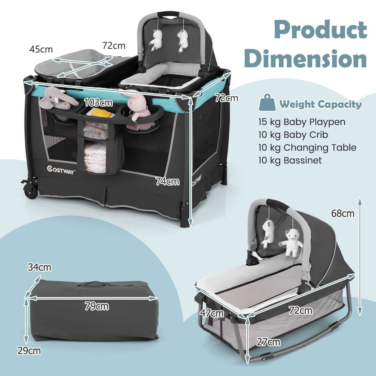 5-in-1 Toddlers Portable Travel Cot Baby Playard Convertible Playpen