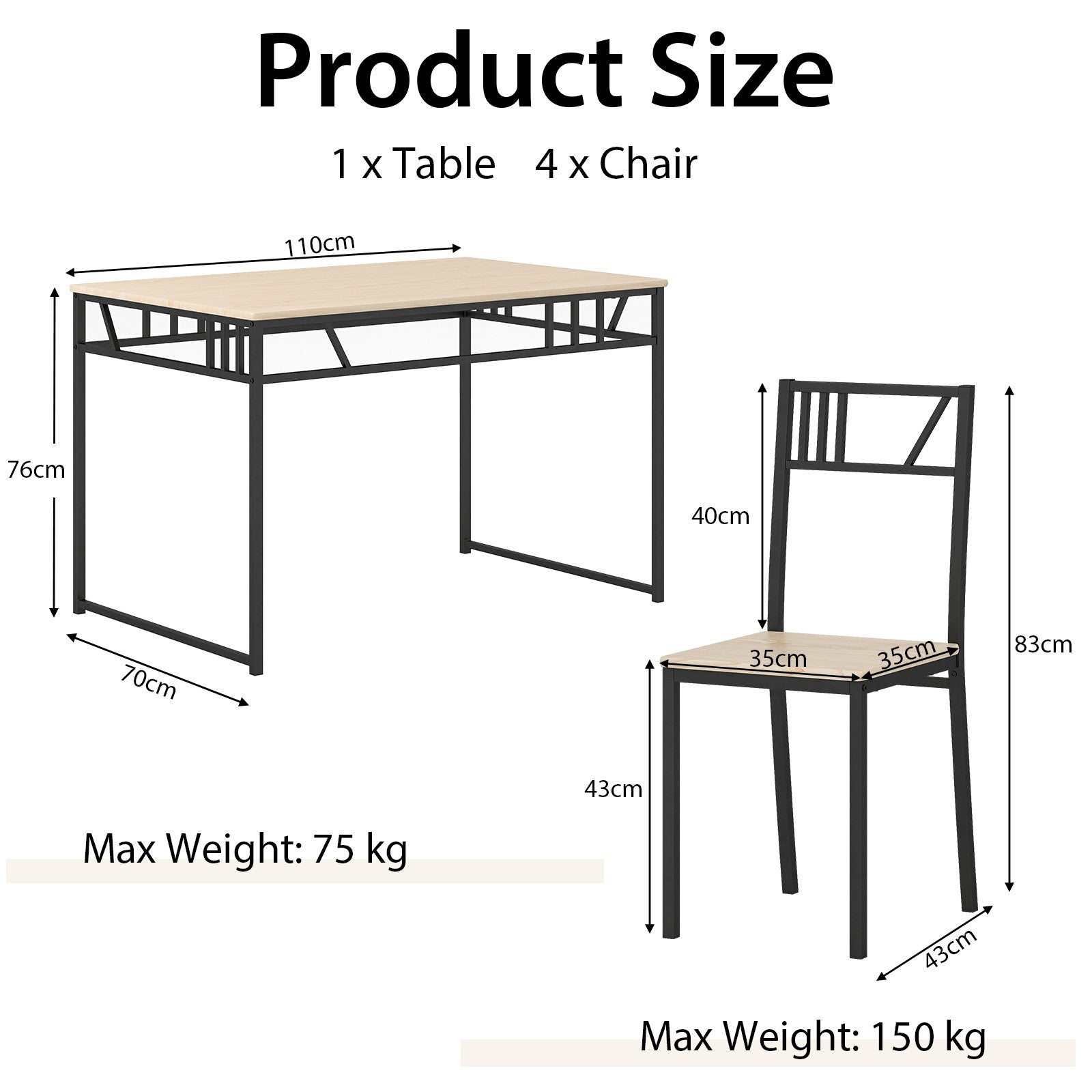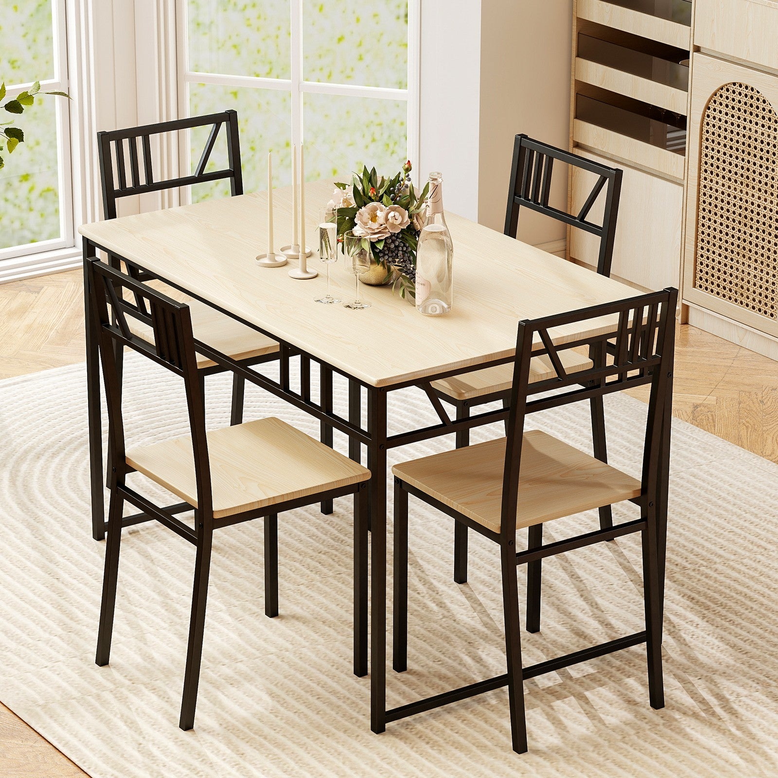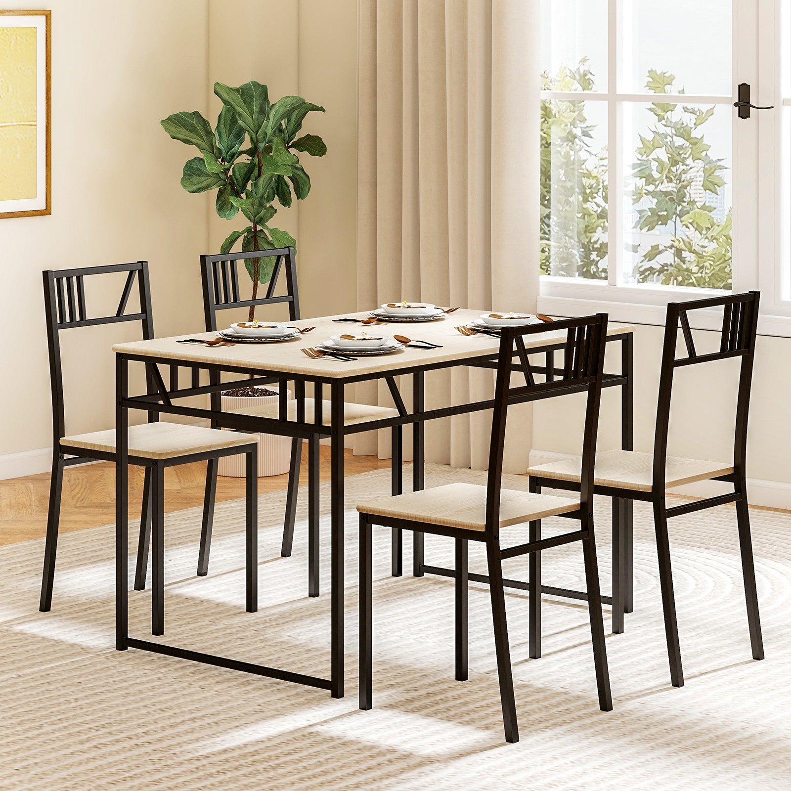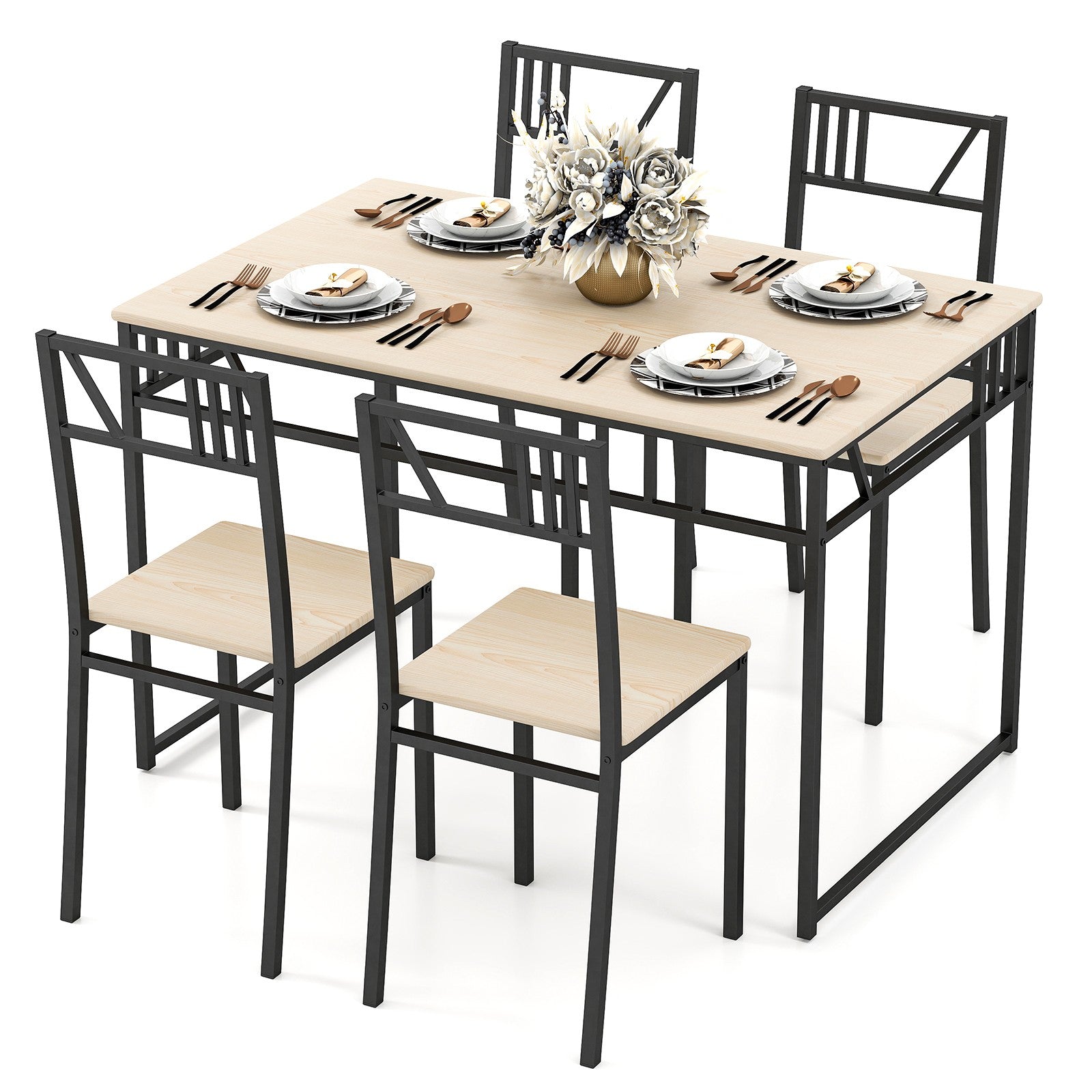 5 Pcs Dining Table Set Industrial-Style Kitchen Table & 4 Chairs-Natural