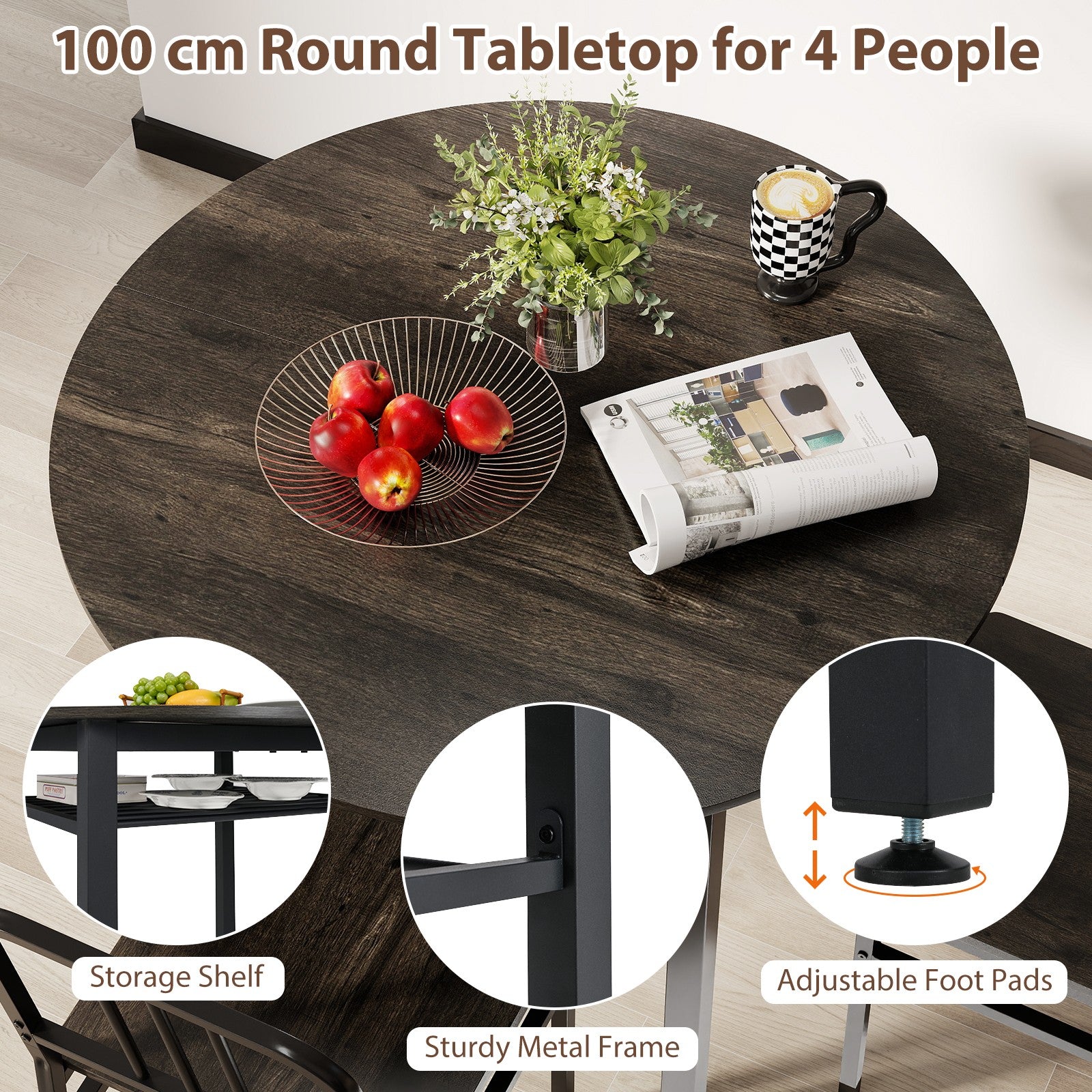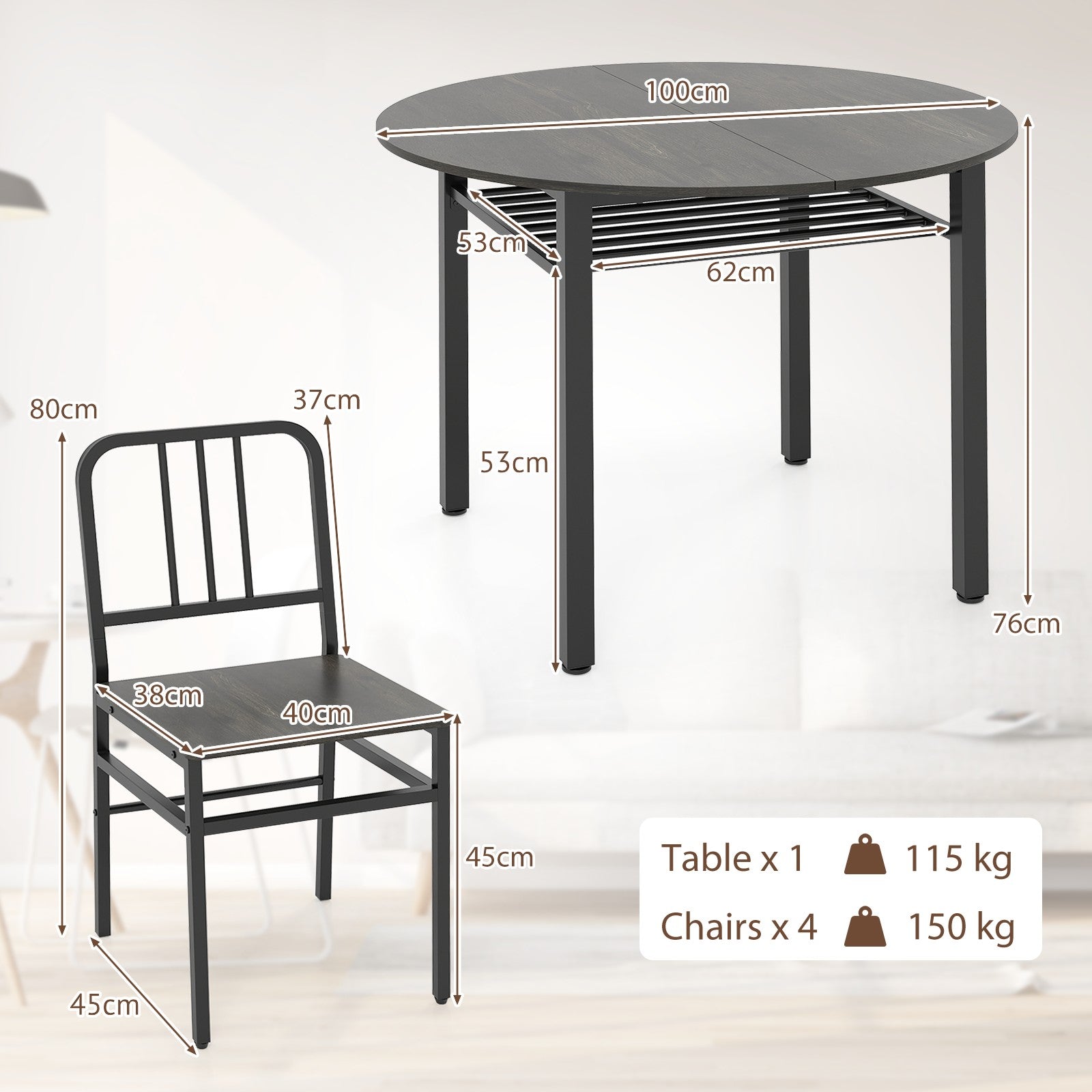 5 Piece Dining Table Set Round Kitchen Table & 4 Chairs-Gray
