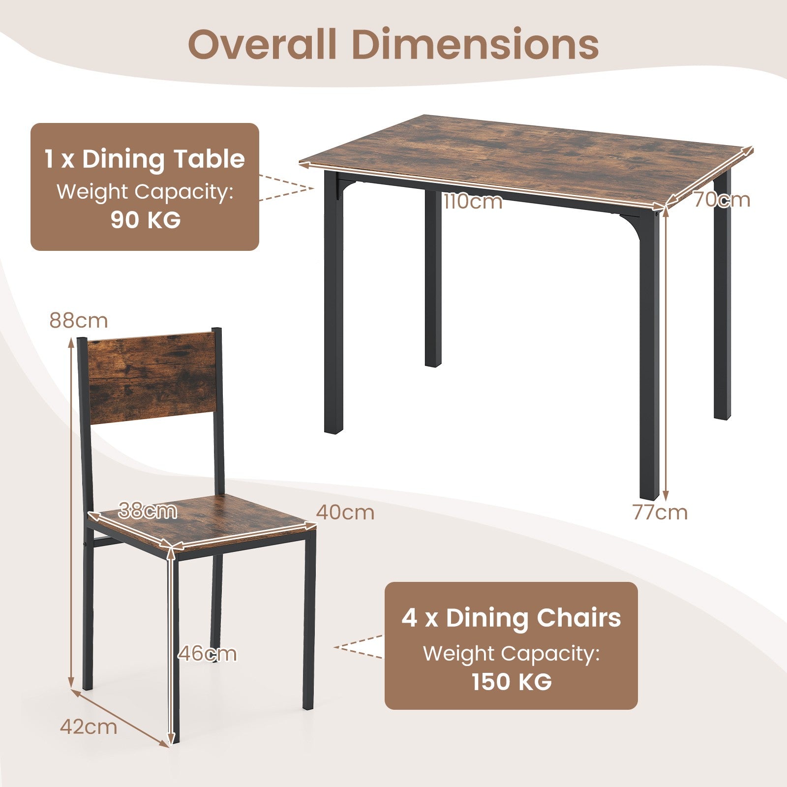 5Pcs Modern Kitchen Dining Room Furniture Dining Table Set for 4-Brown
