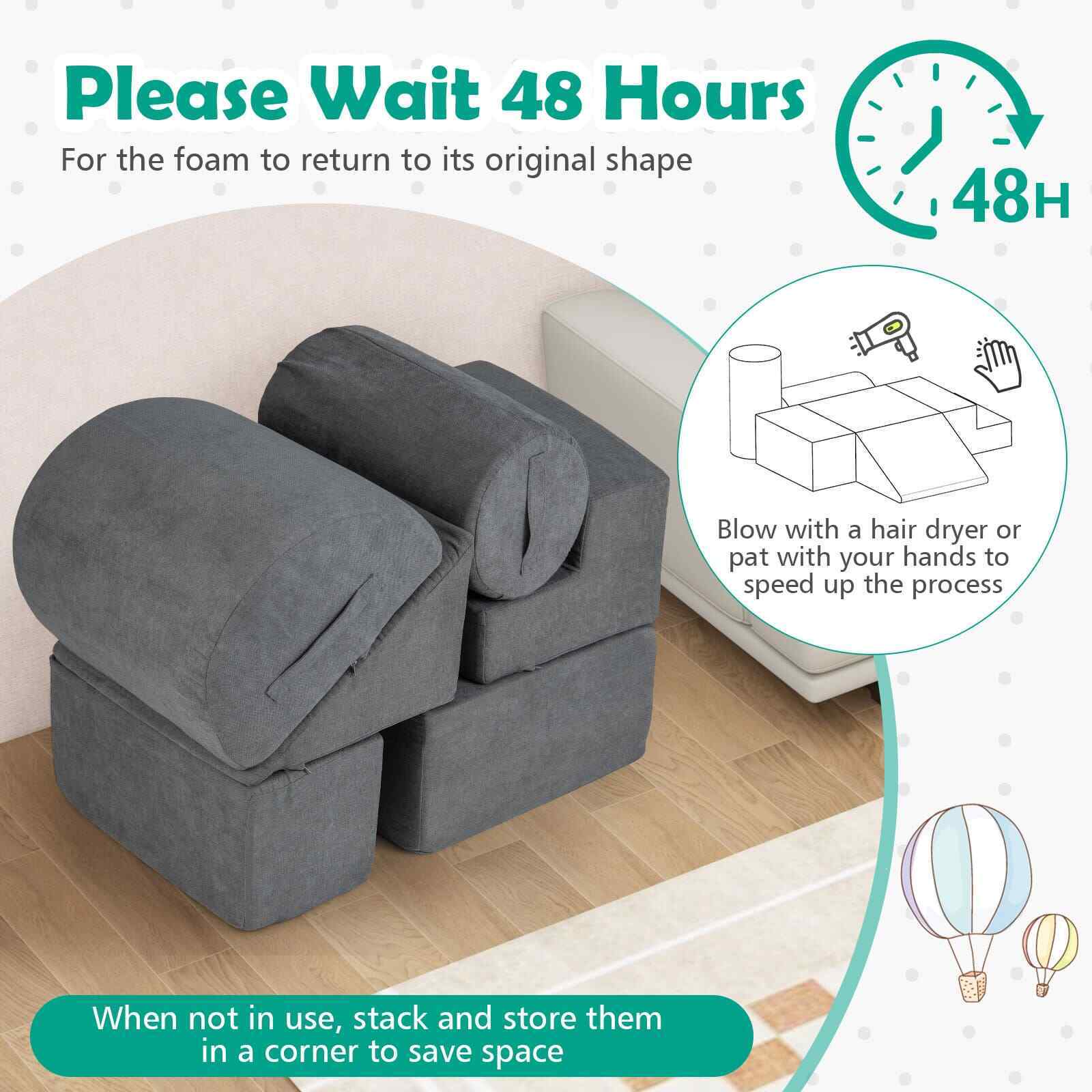 6-Piece Baby Climbing Blocks Kids Indoor Soft Play Structure-Grey