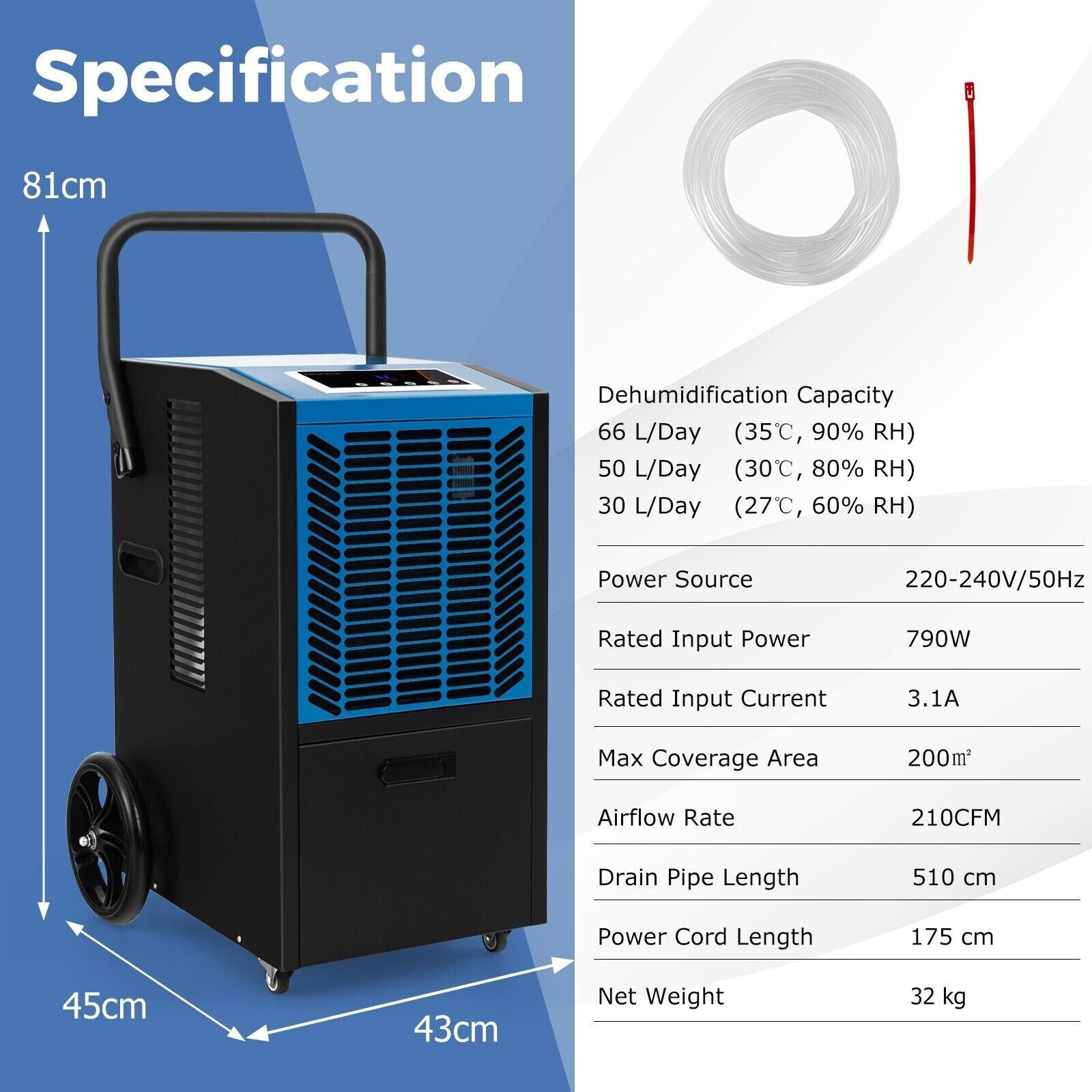 66L Commercial Dehumidifier Industrial Crawl Space Dehumidifier w/Pump