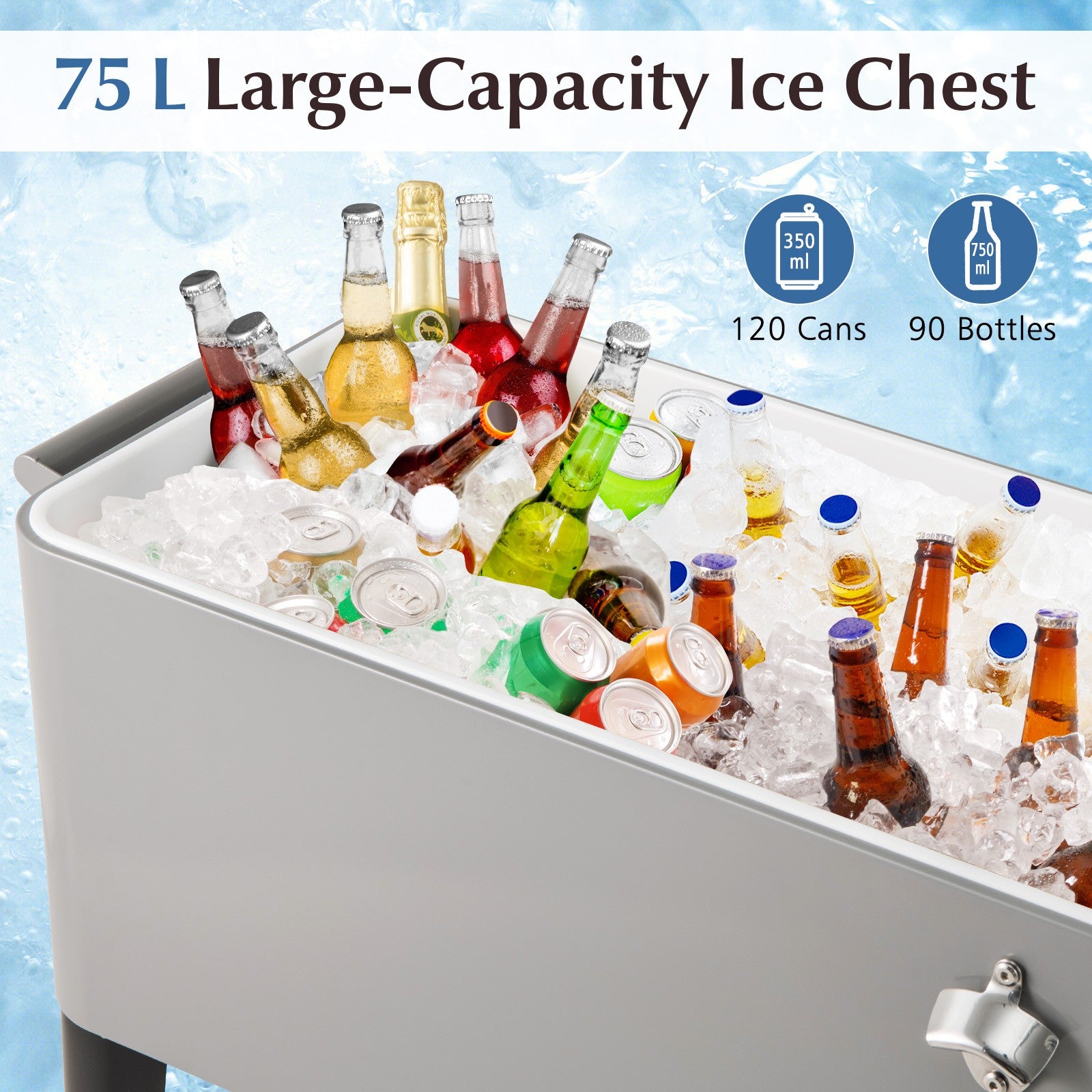 75L Rolling Ice Chest Portable Patio Beverage Cooler Cart-Grey