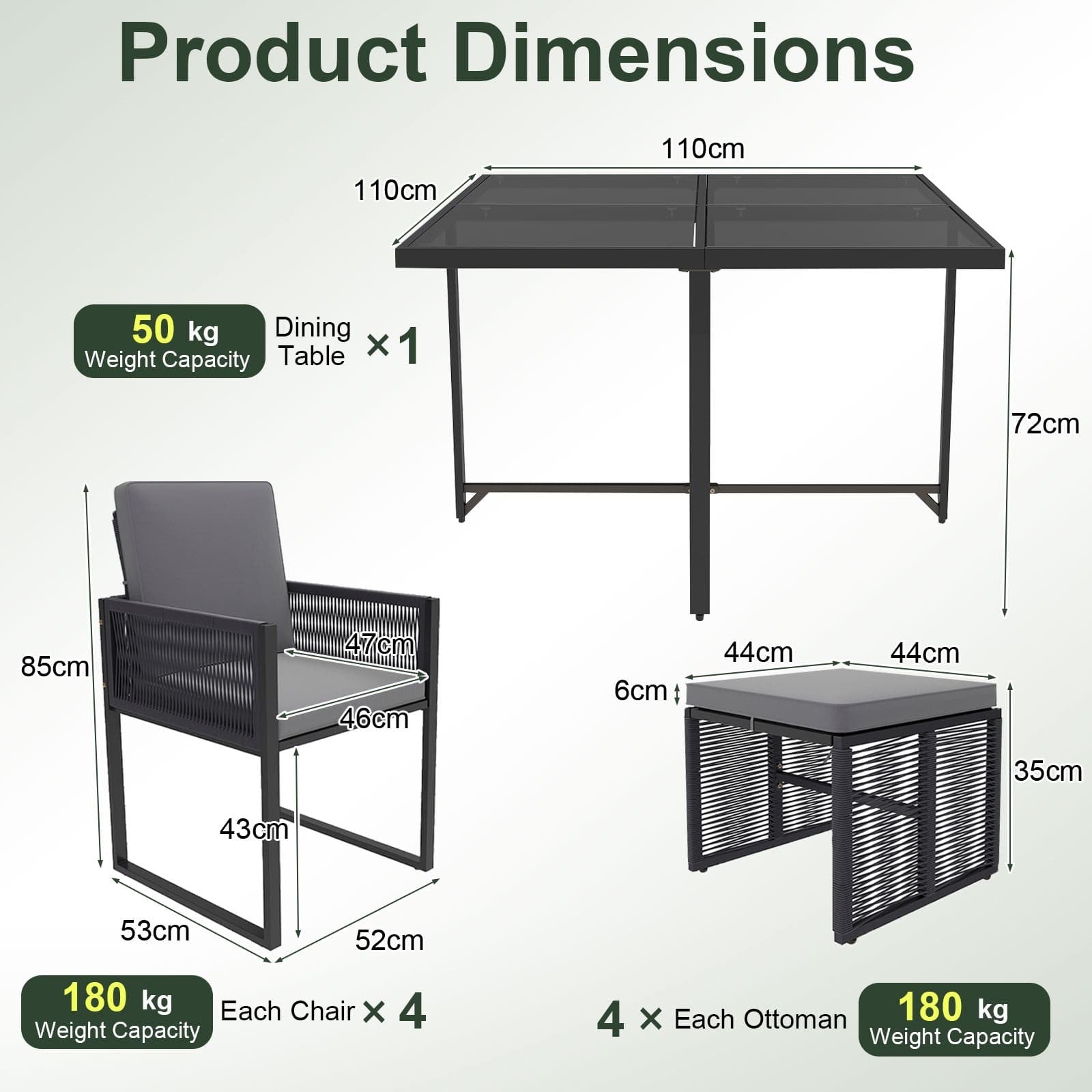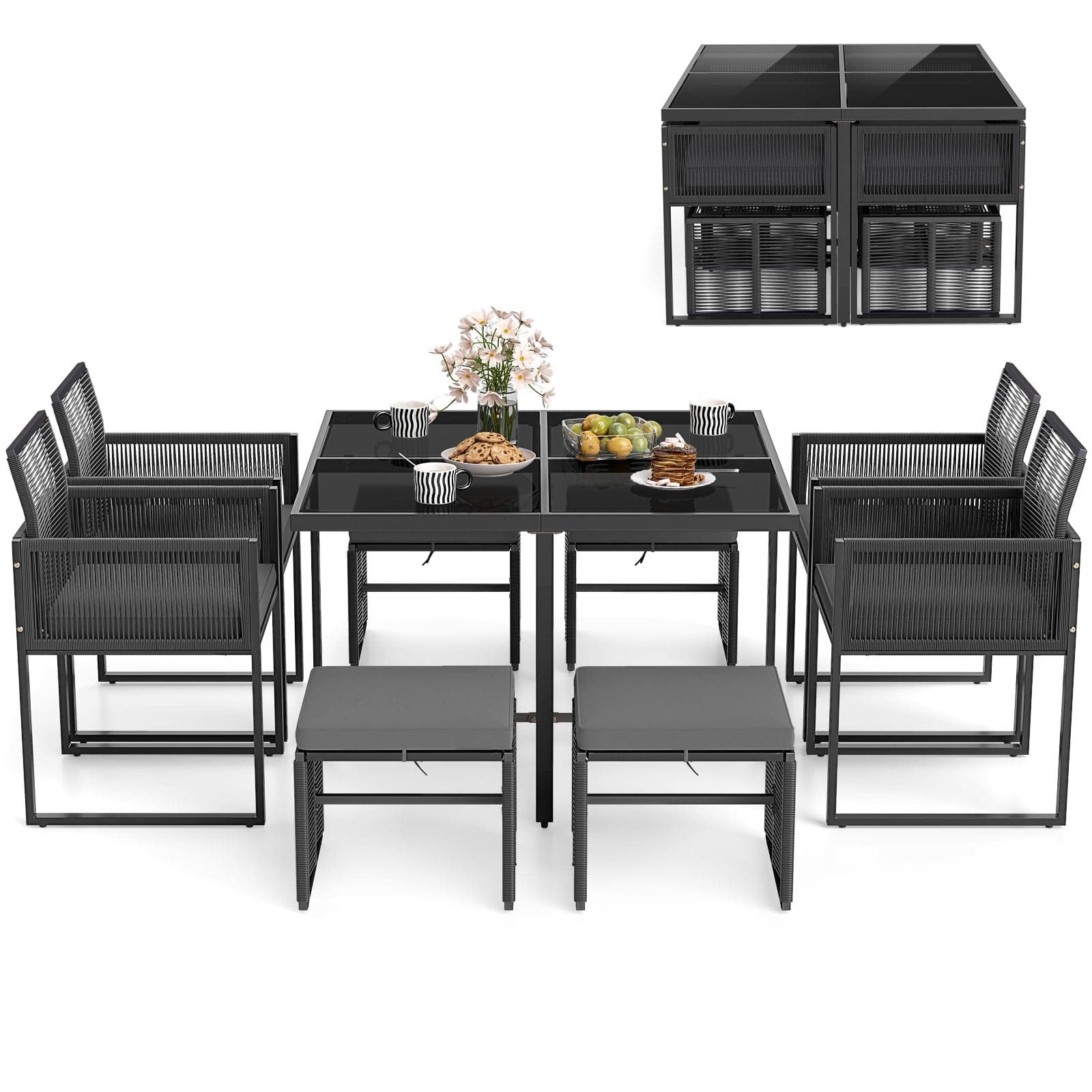 9 Pieces Patio Dining Set Outdoor Space-Saving Furniture Set-Gray