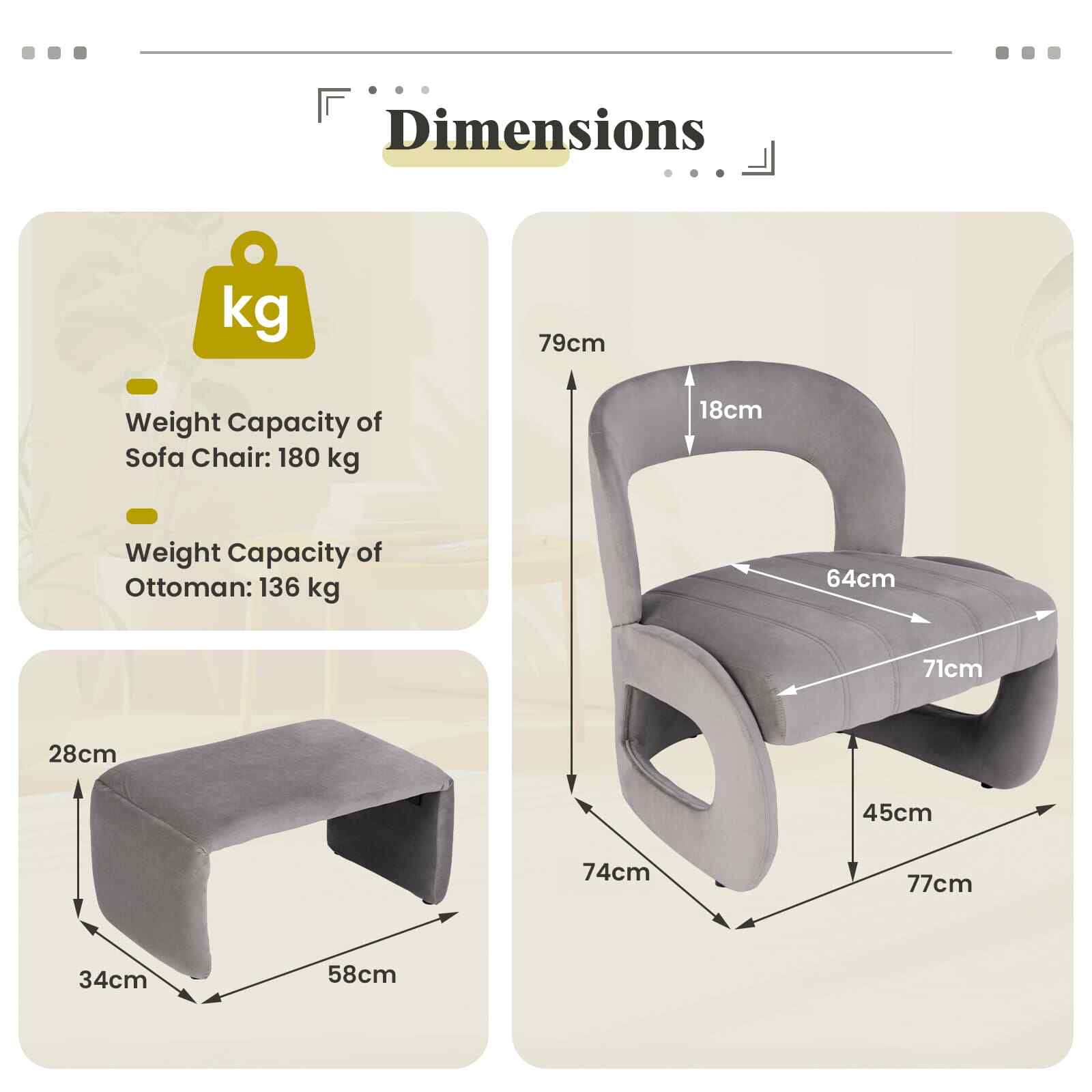 Accent Chair Upholstered Velvet Chair and Ottoman Set