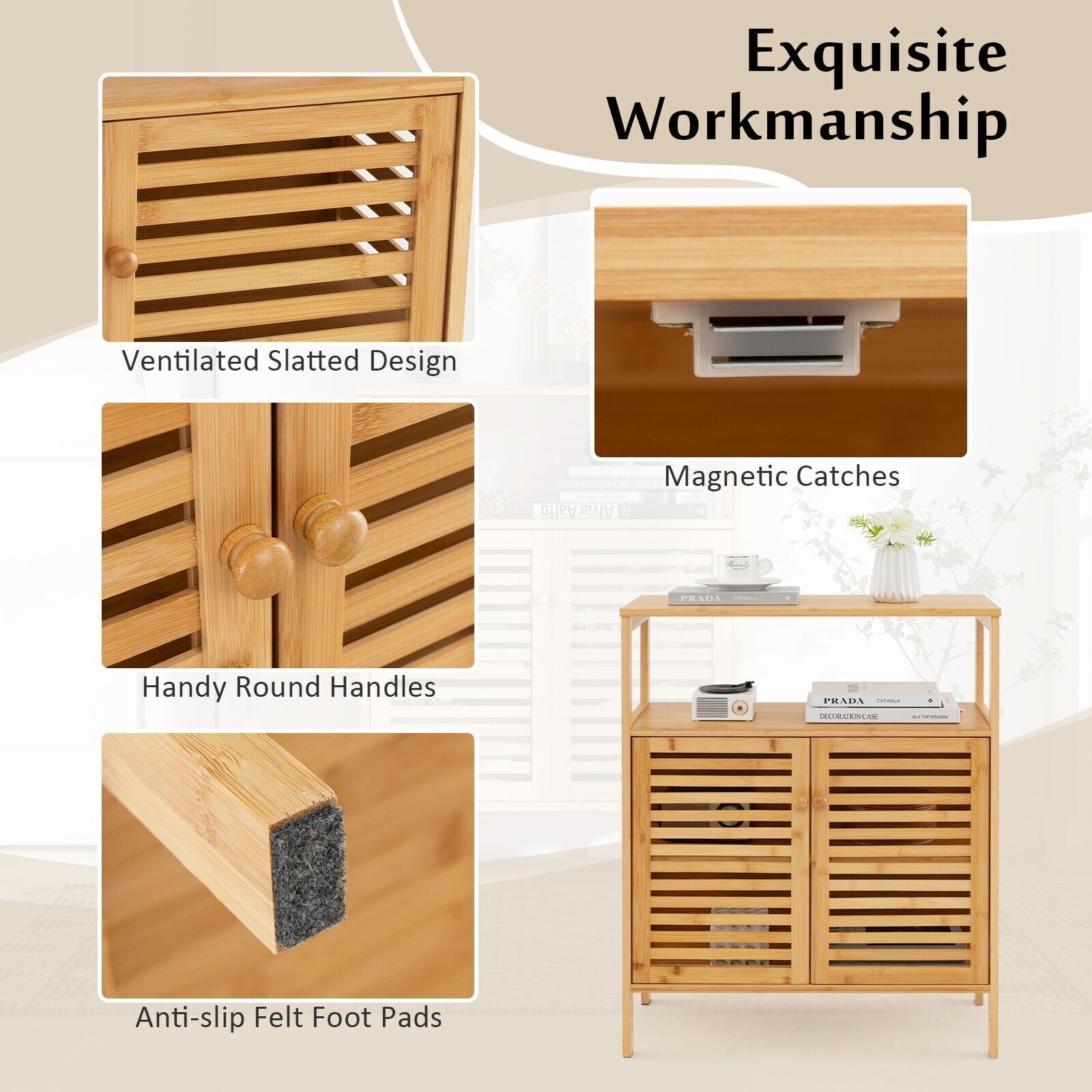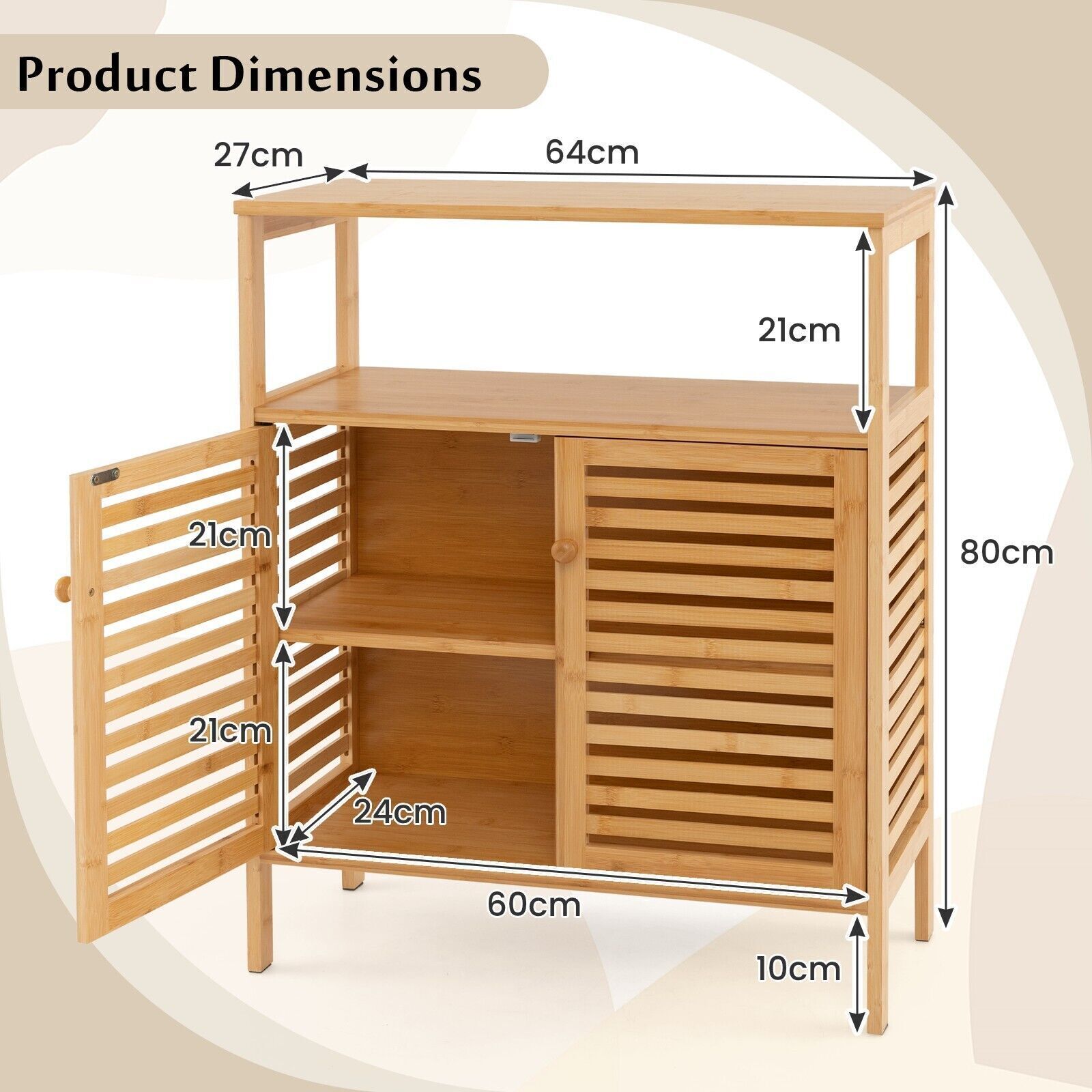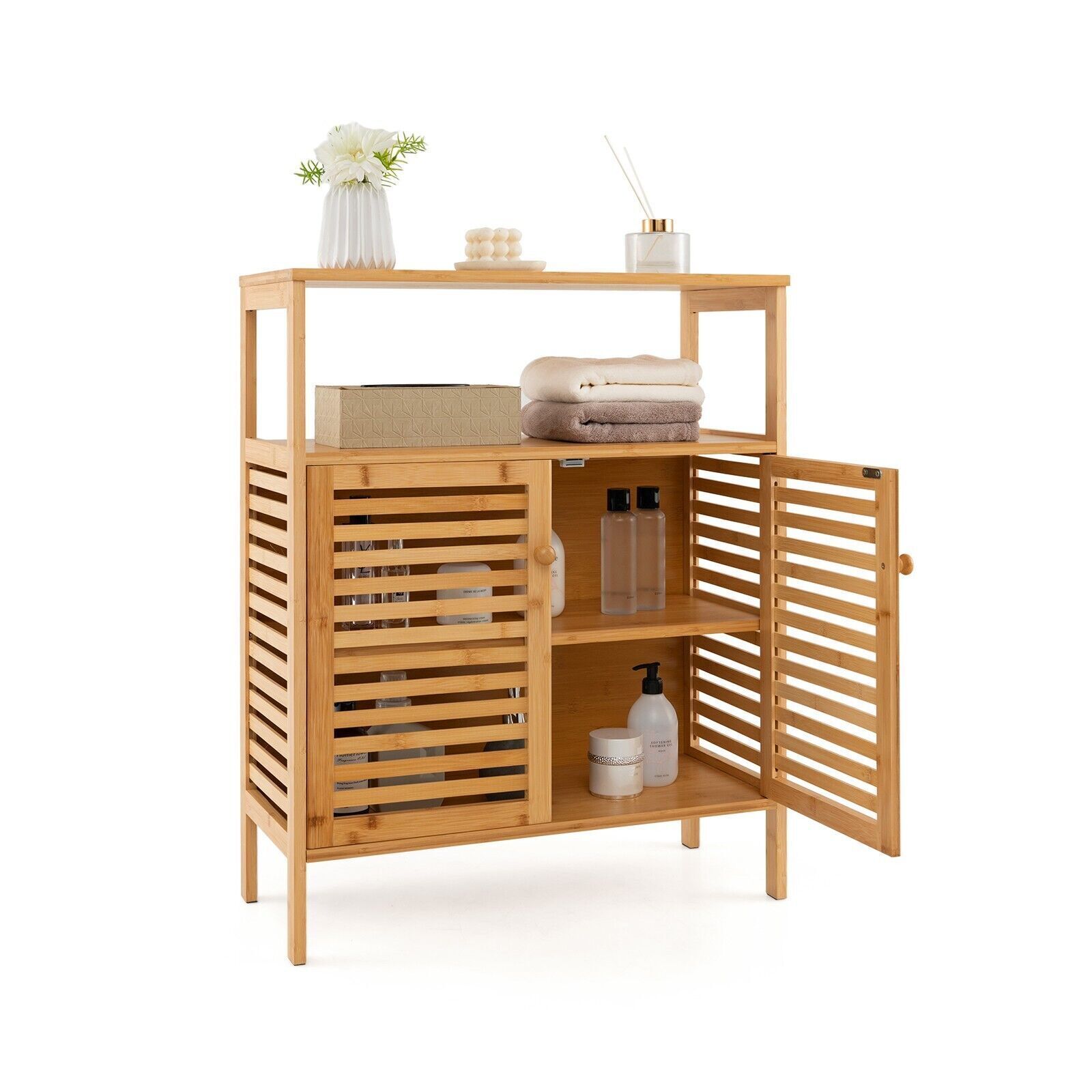 Bamboo Side Storage Organizer Bathroom Floor Cabinet w/ Double Doors