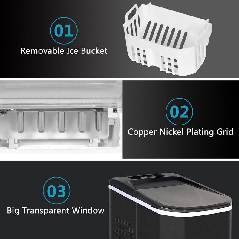 Countertop Ice Maker Machine with Ice Scoop & Basket for Home Kitchen Bar 1.5L