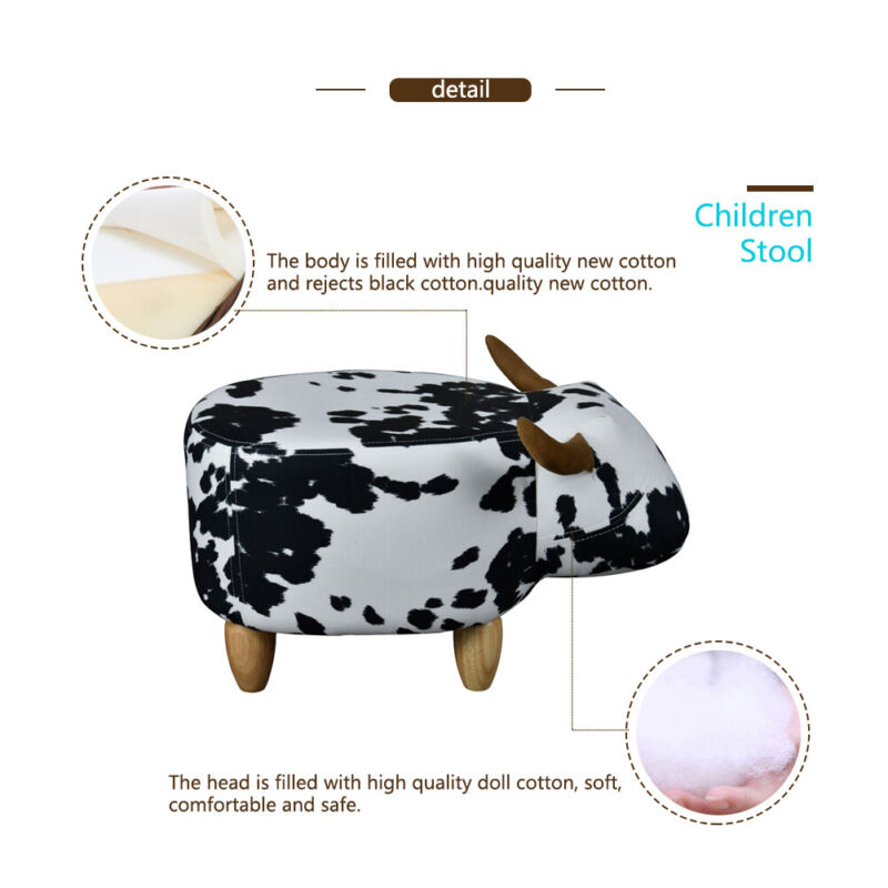 Cow Footstool Ottoman Cushion Padded Upholstered Stool Pouffe Footrest Seat Kids