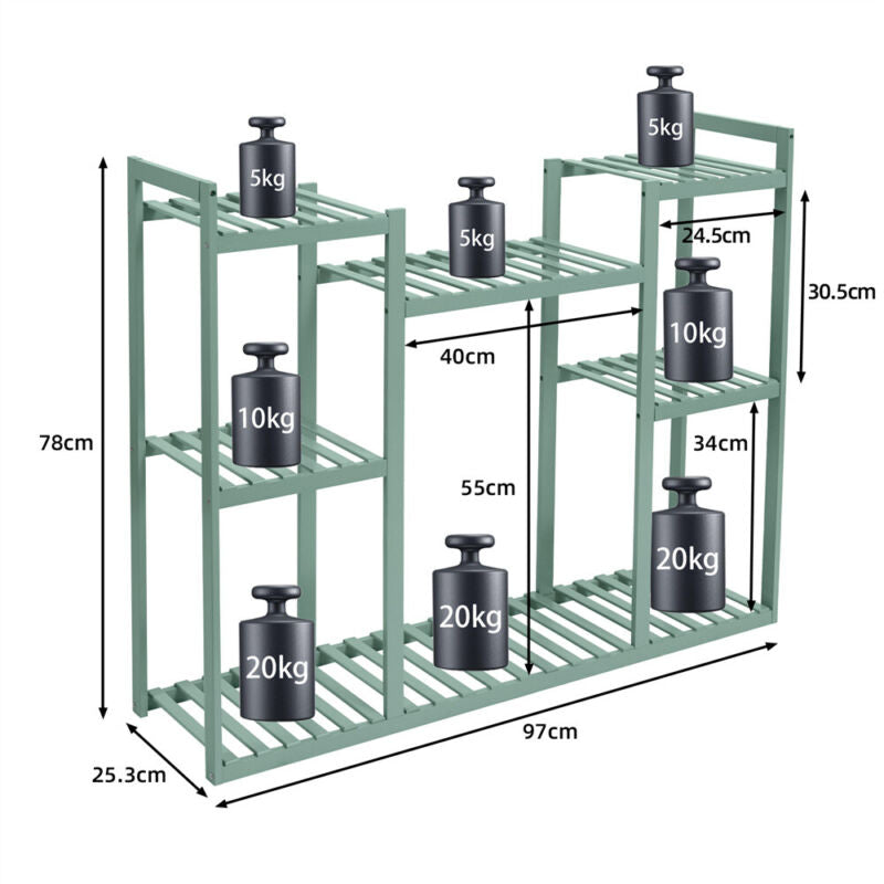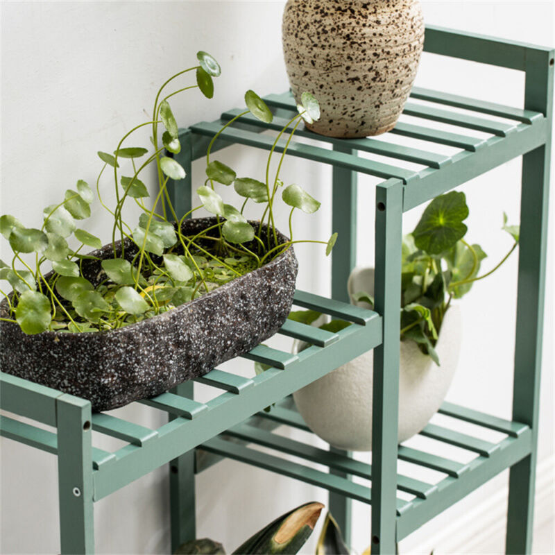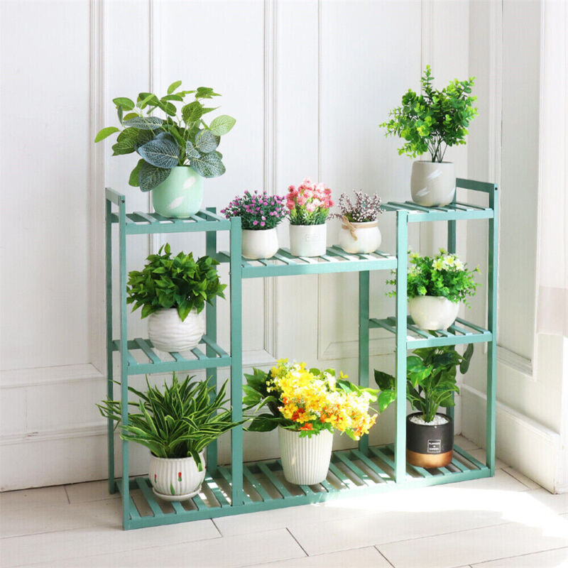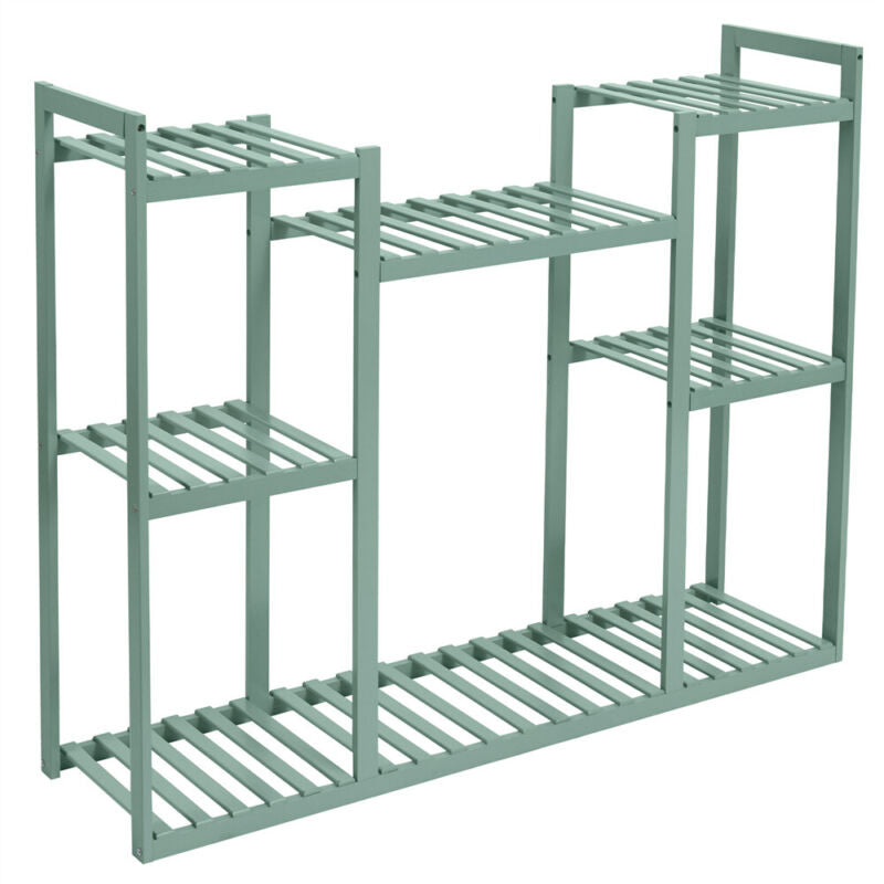 Cozy Green 8-Tier Bamboo Plant Stand Pots Planter Holder Hollow-out Shelf Porch