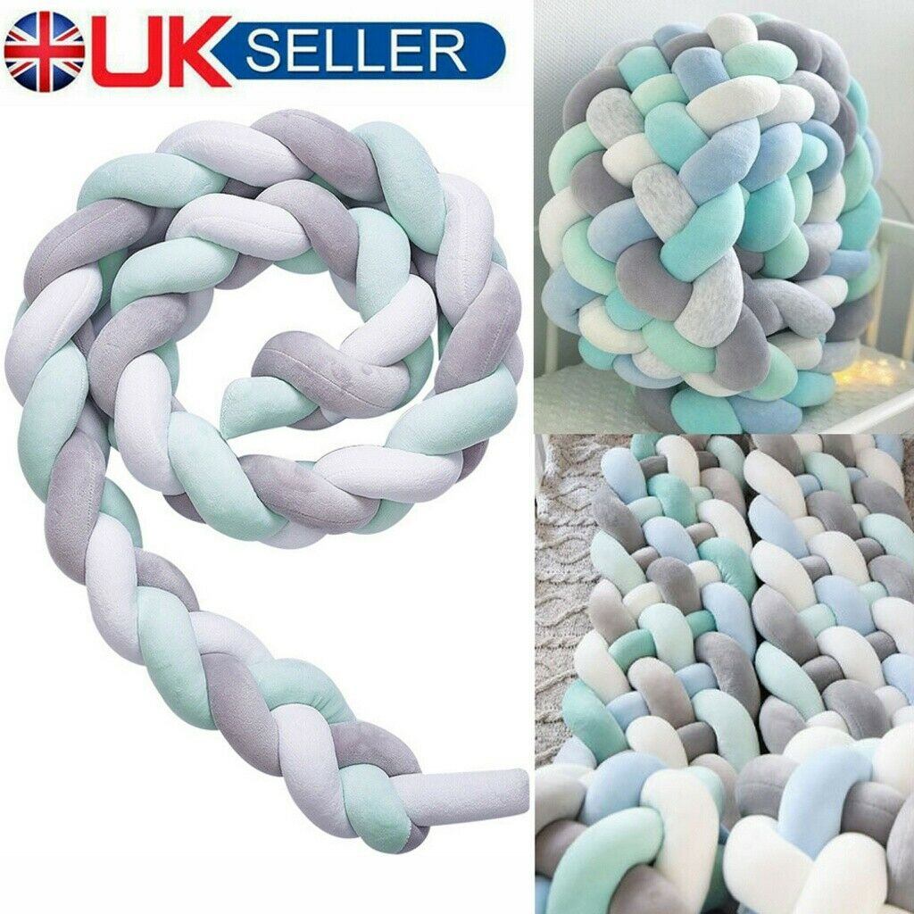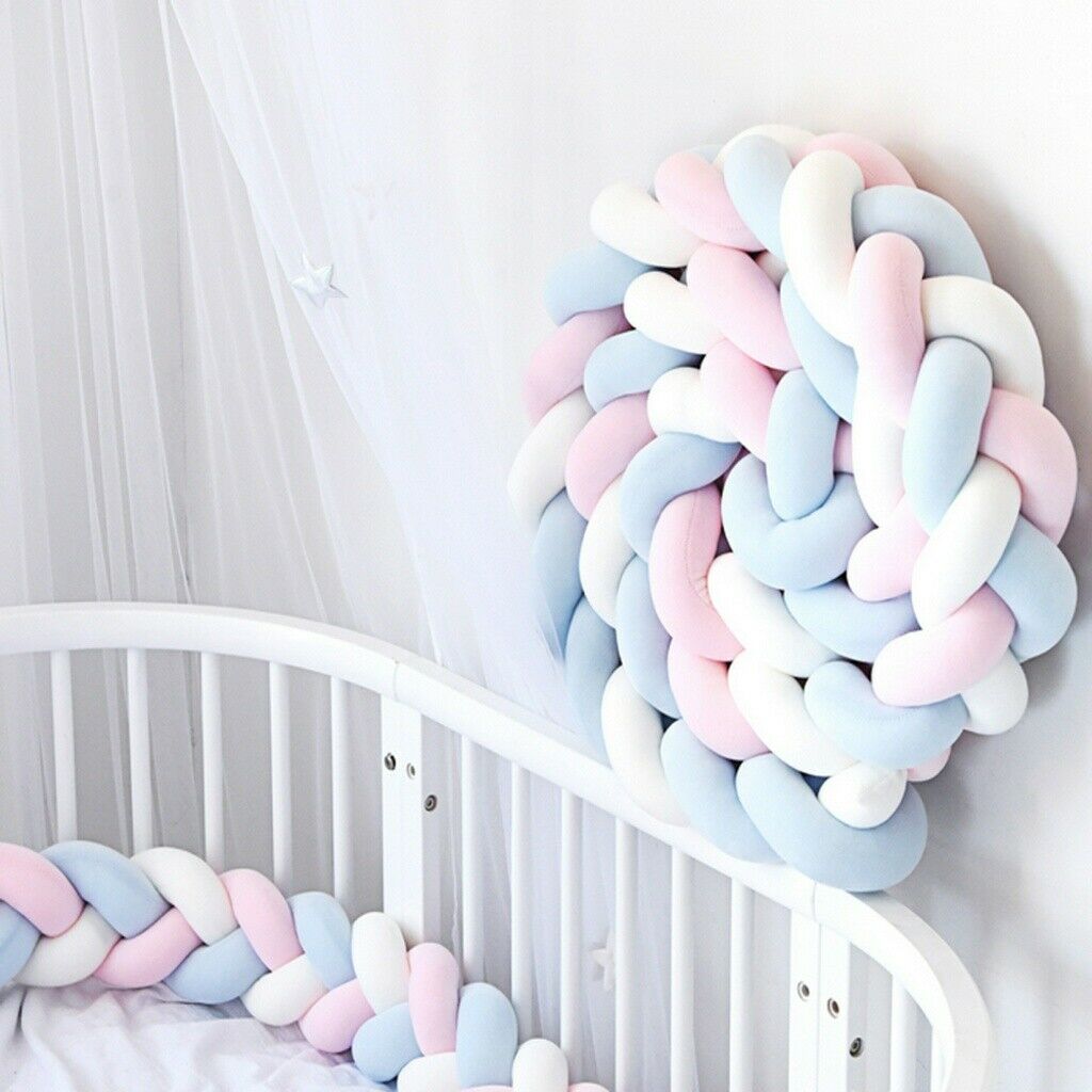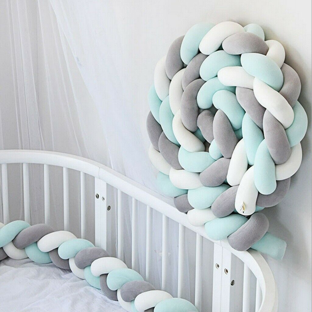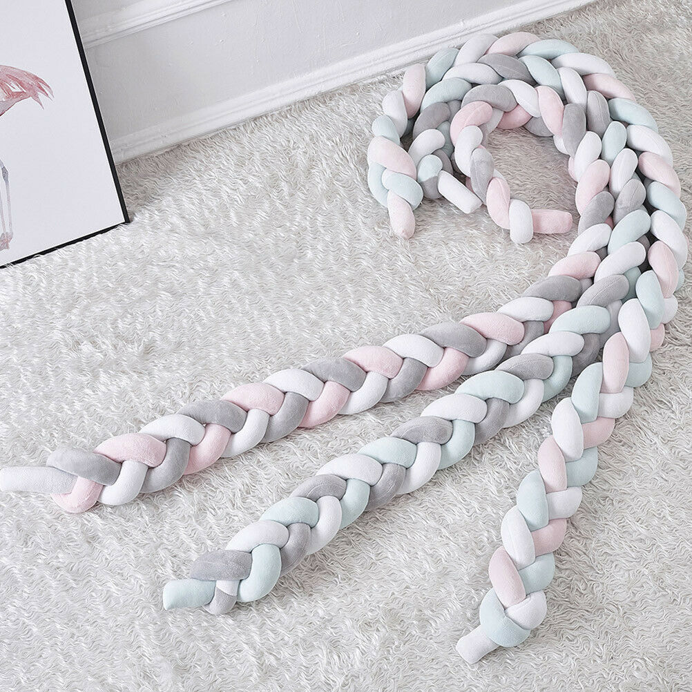 Crib Bumper 200CM Knot Plush Bedding Bed Cot Braid Pillow Cushion Pad Protector