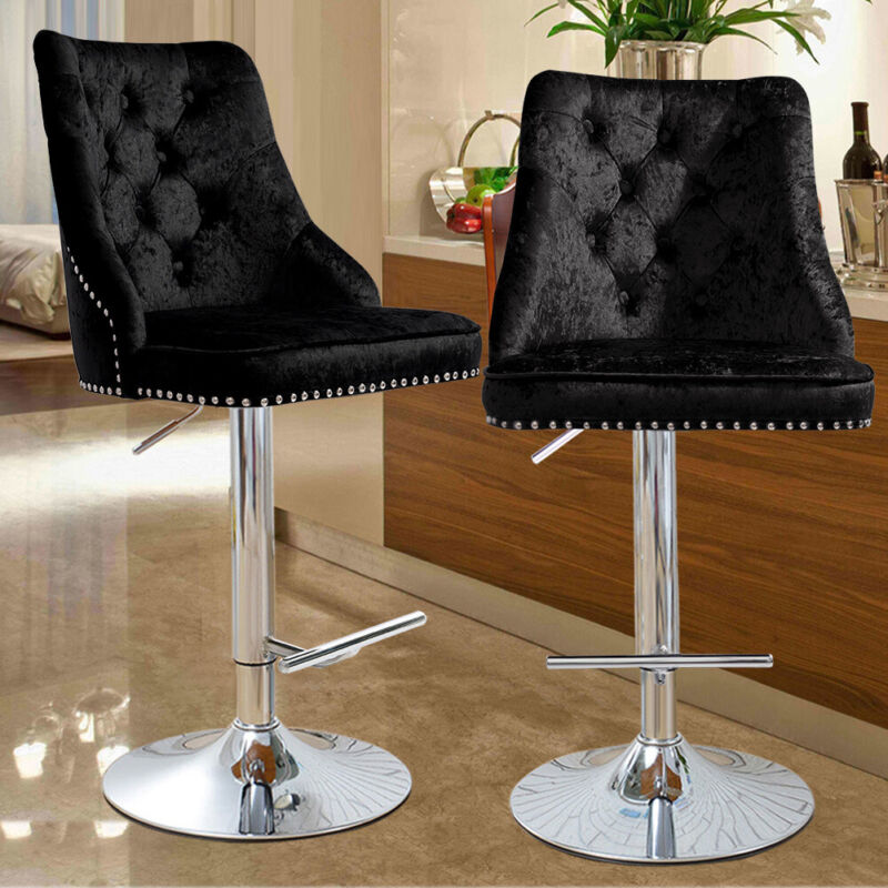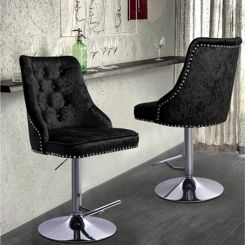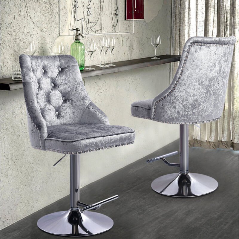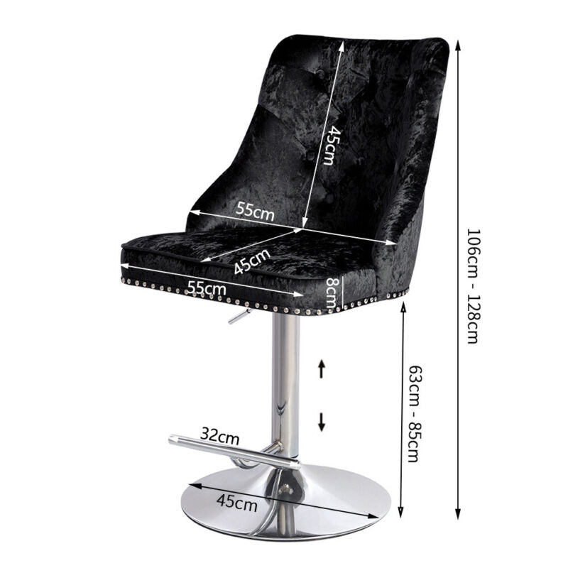 Crushed Velvet Bar Chair Swivel Kitchen Stool Barstool Armchair with Chrome Base