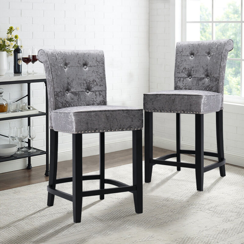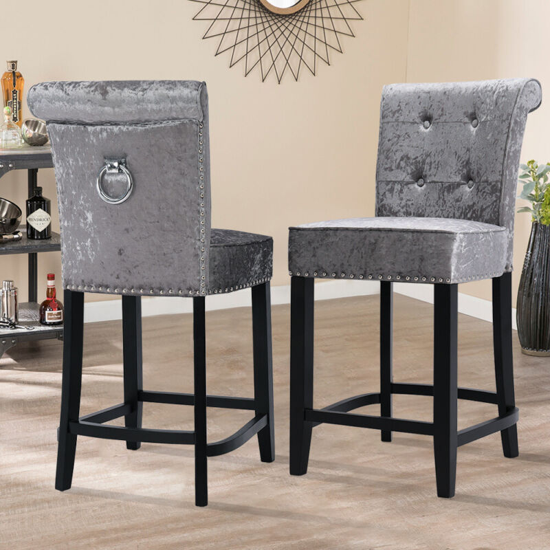 Crushed Velvet Bar Stool Back Knocker Studded Kitchen Breakfast Bar Stools Chair