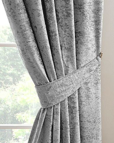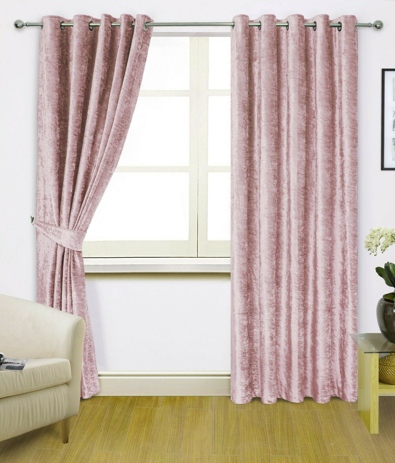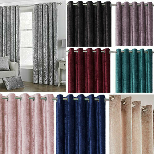 Crushed Velvet Lined Eyelet Ring Top Curtains (Pair of) Ready Made