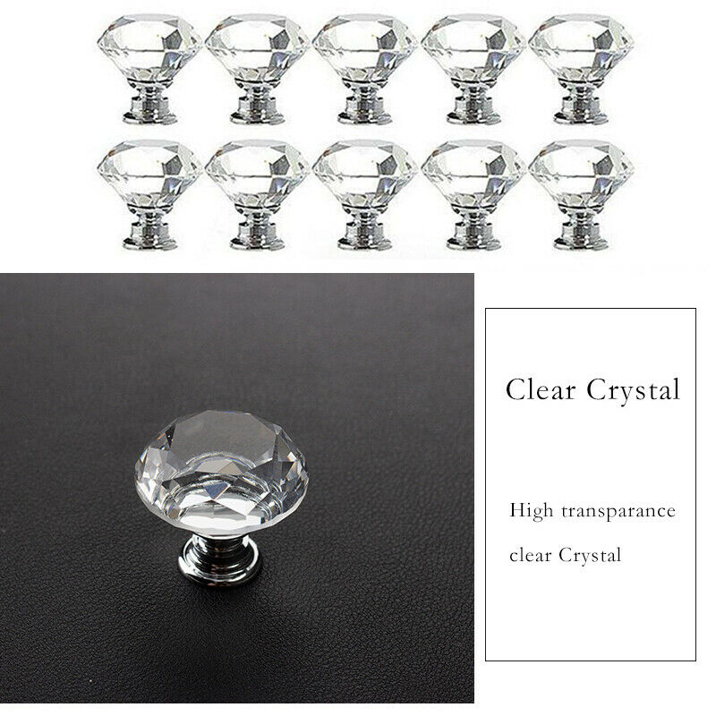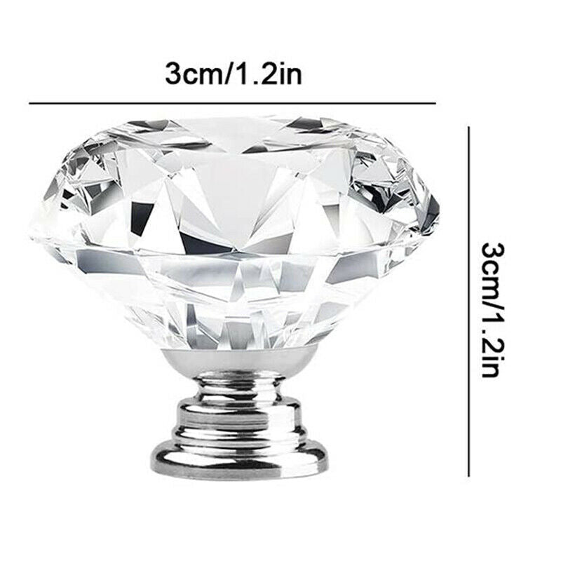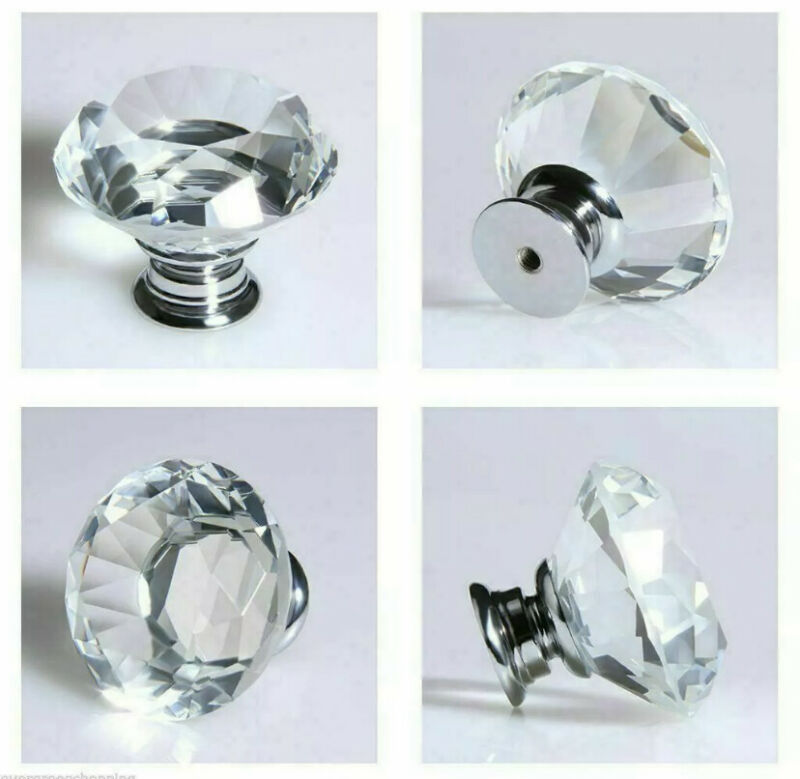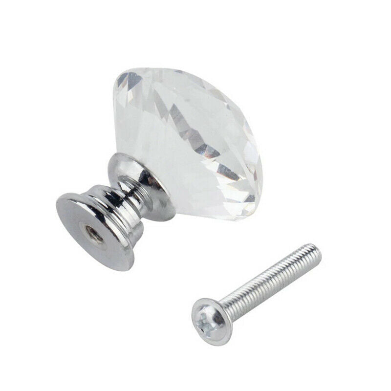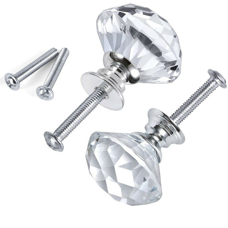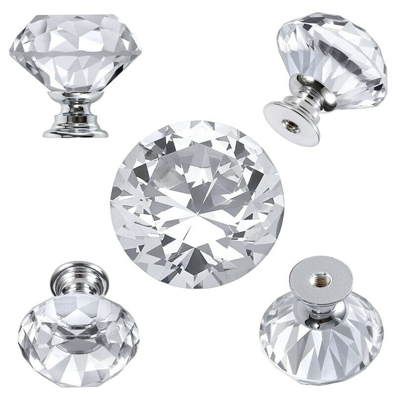 CRYSTAL DIAMOND GLASS DOOR KNOBS CUPBOARD DRAWER FURNITURE HANDLE CABINET