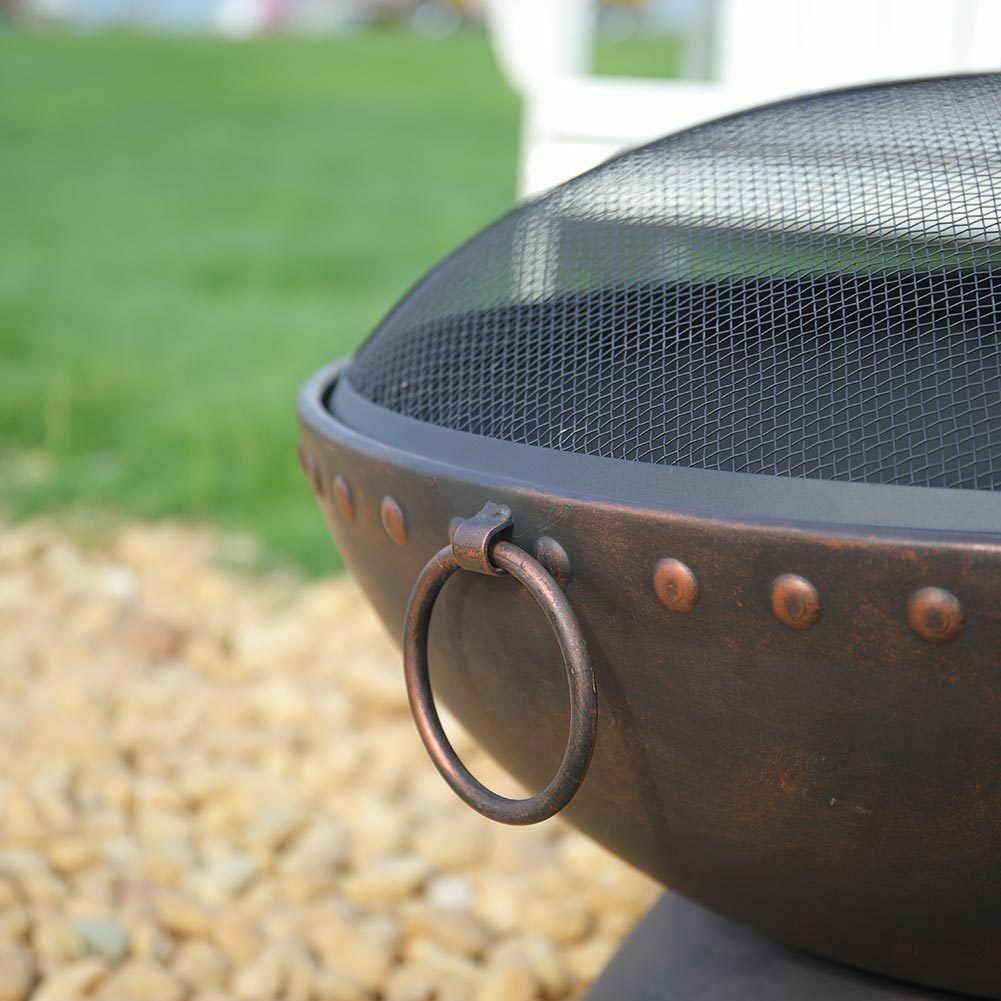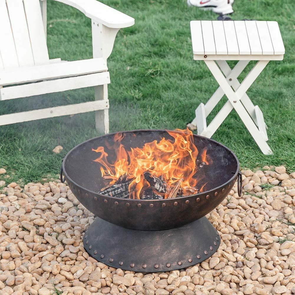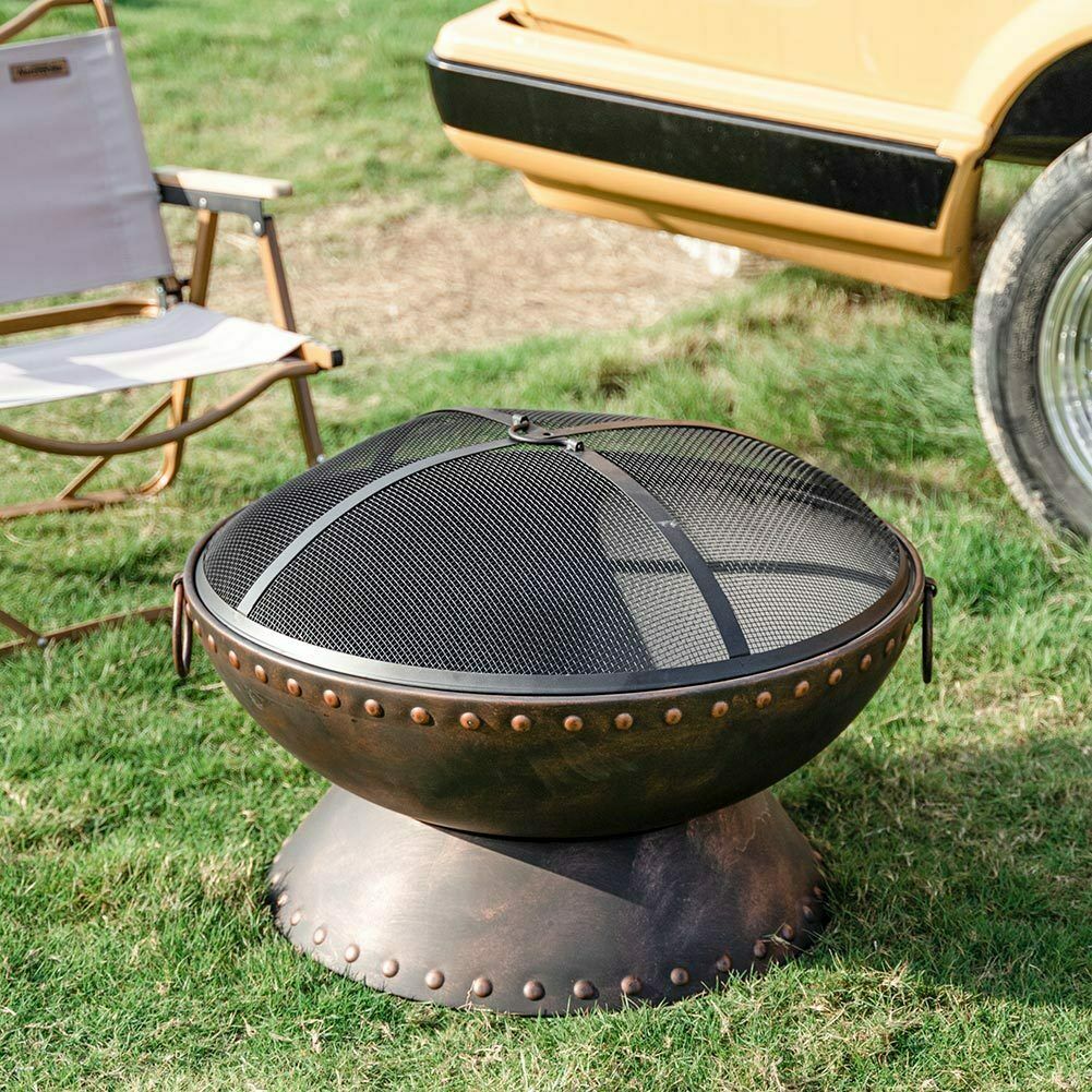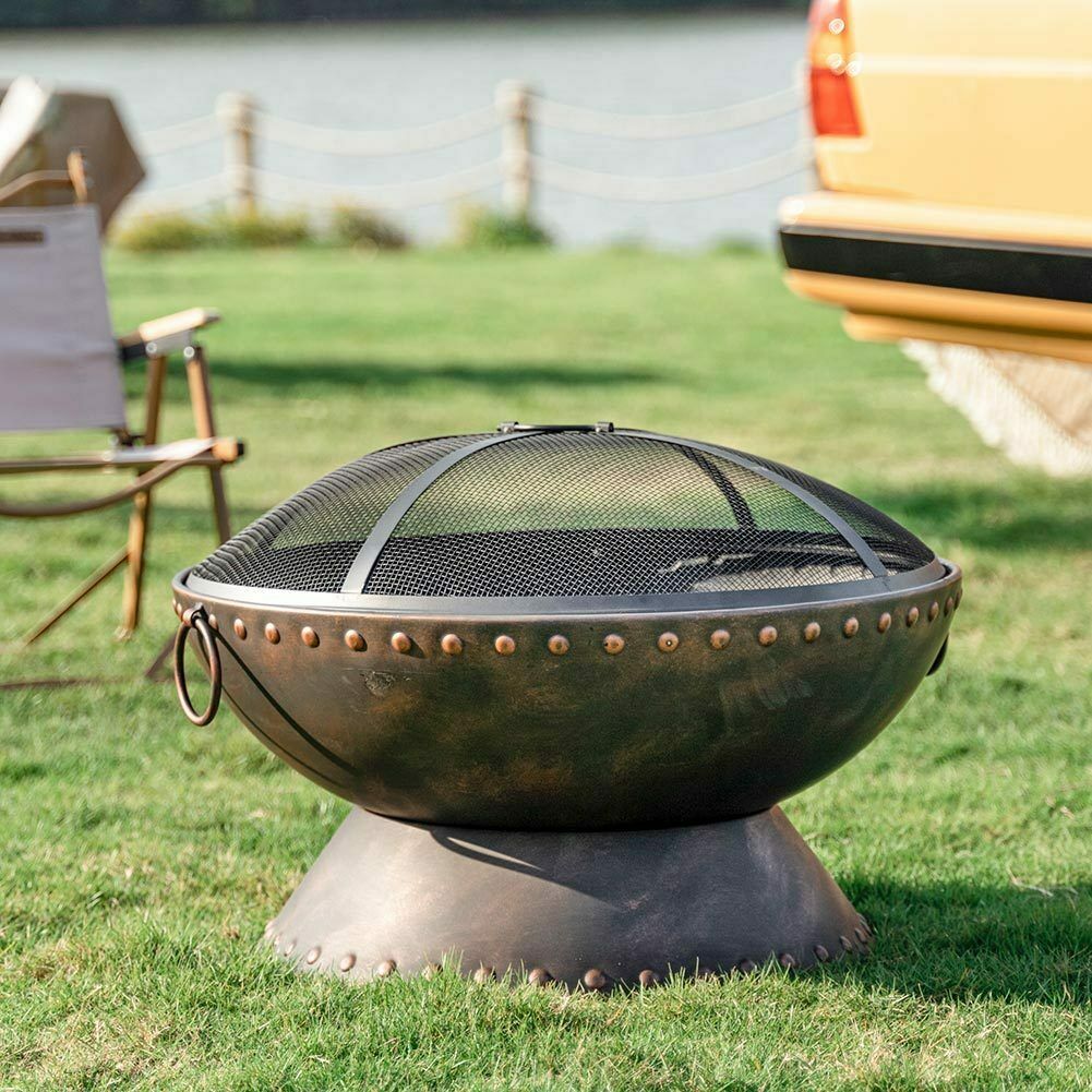 Cup Shape Fire Pit BBQ Firepit Brazier Stove Patio Heater Grill With Poker & Lid
