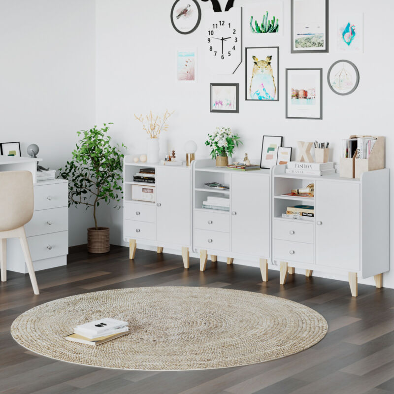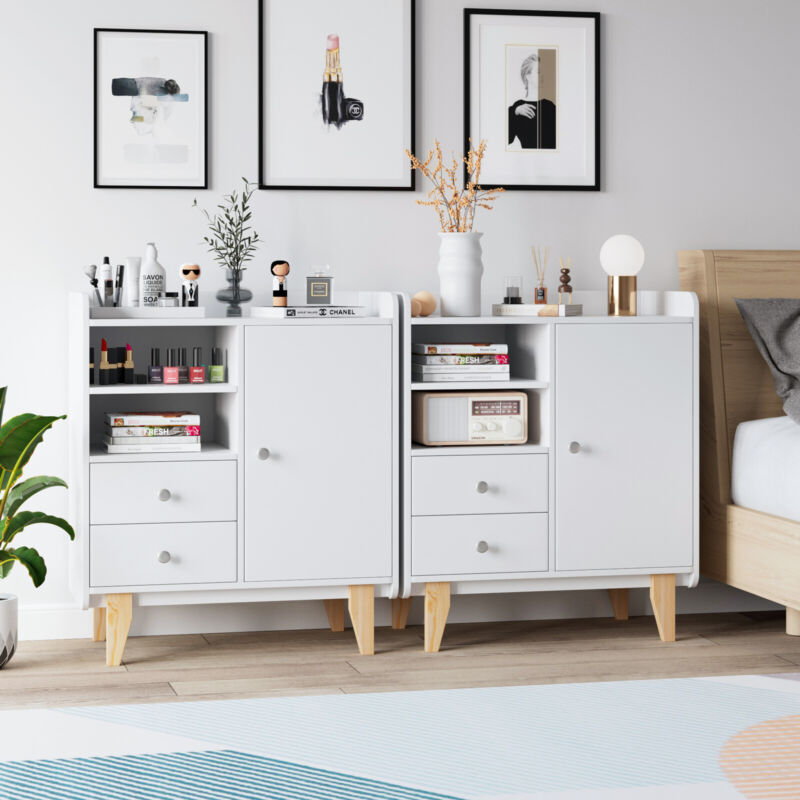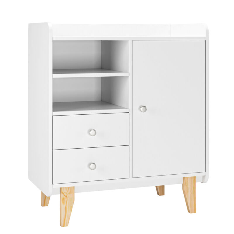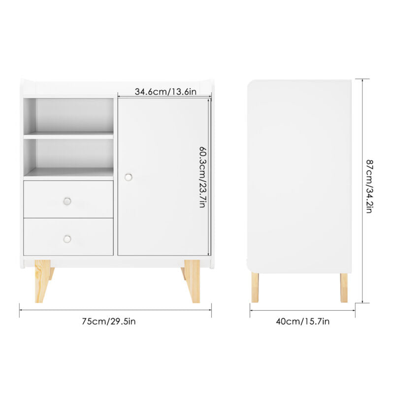 Cupboard White Storage Cabinet Sideboard with 2 Drawers, 2 Shelves and 1 Door
