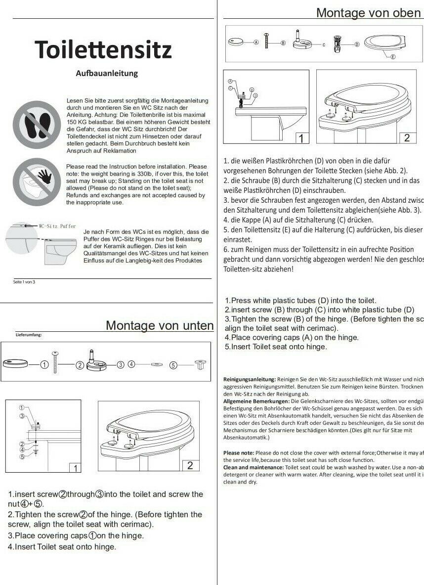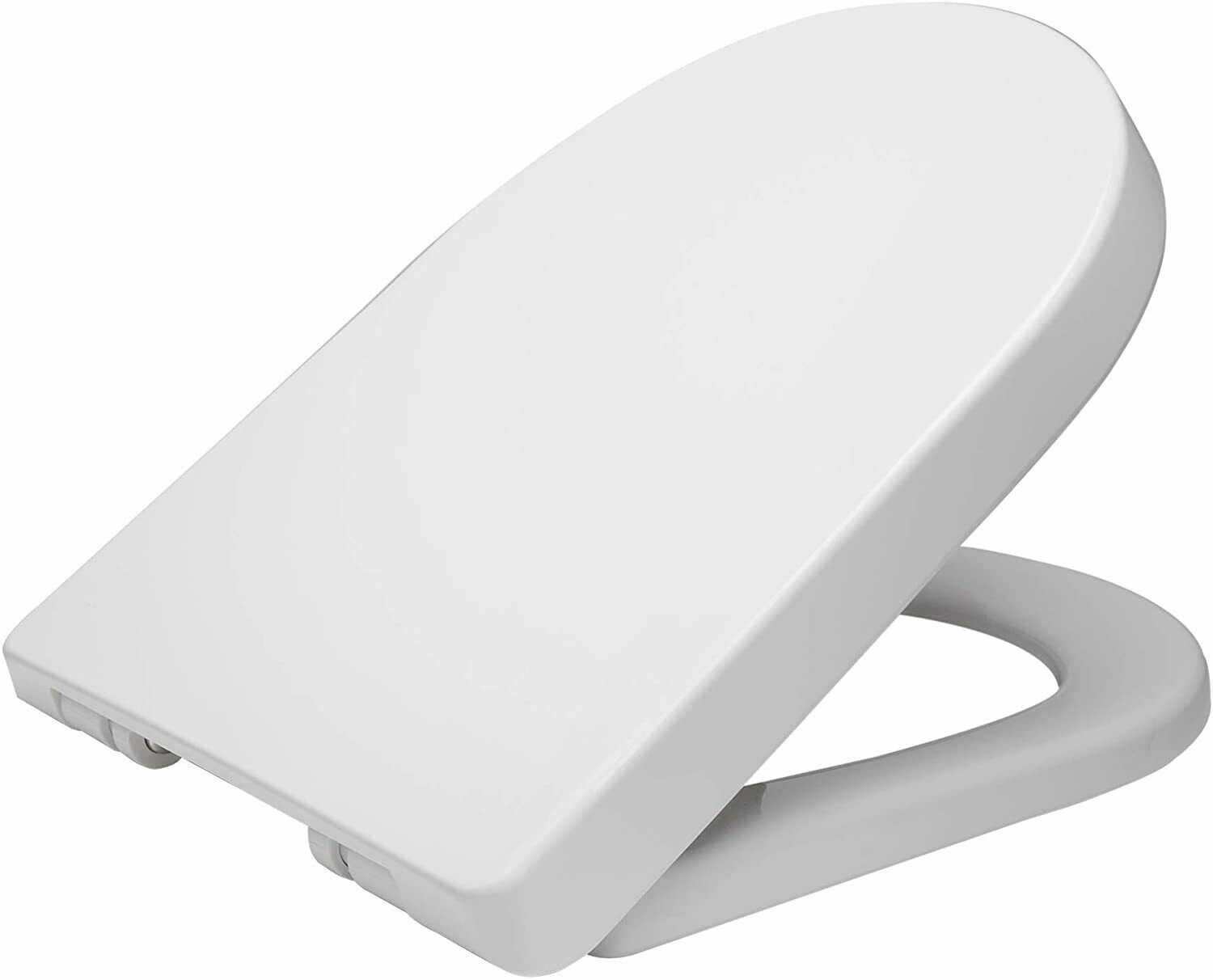 D Shape Toilet Seat Soft Close Adjustable Hinge Quick Release Plastic White
