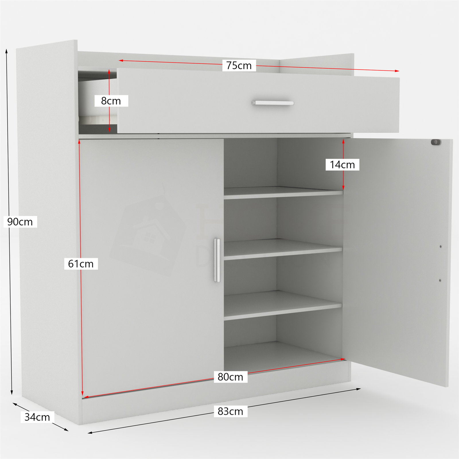 Dalby 2 Door 1 Drawer Shoe Cabinet Footwear Storage Rack Cupboard Stand White