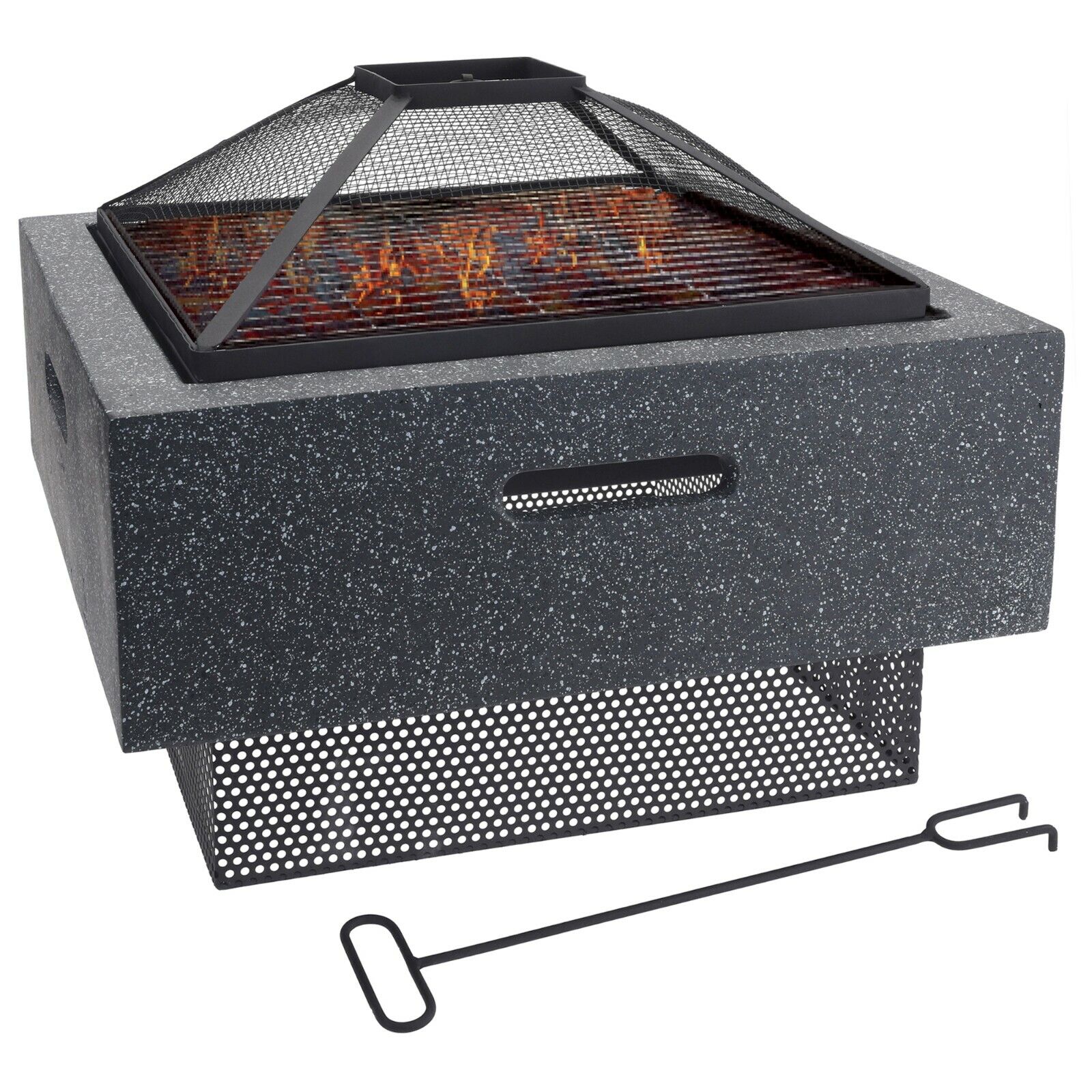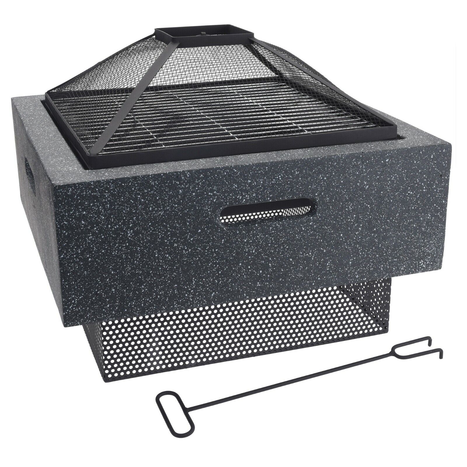 Dark Grey Square Fire Pit Bowl Heater BBQ Grill Camping Burner Outdoor Decking