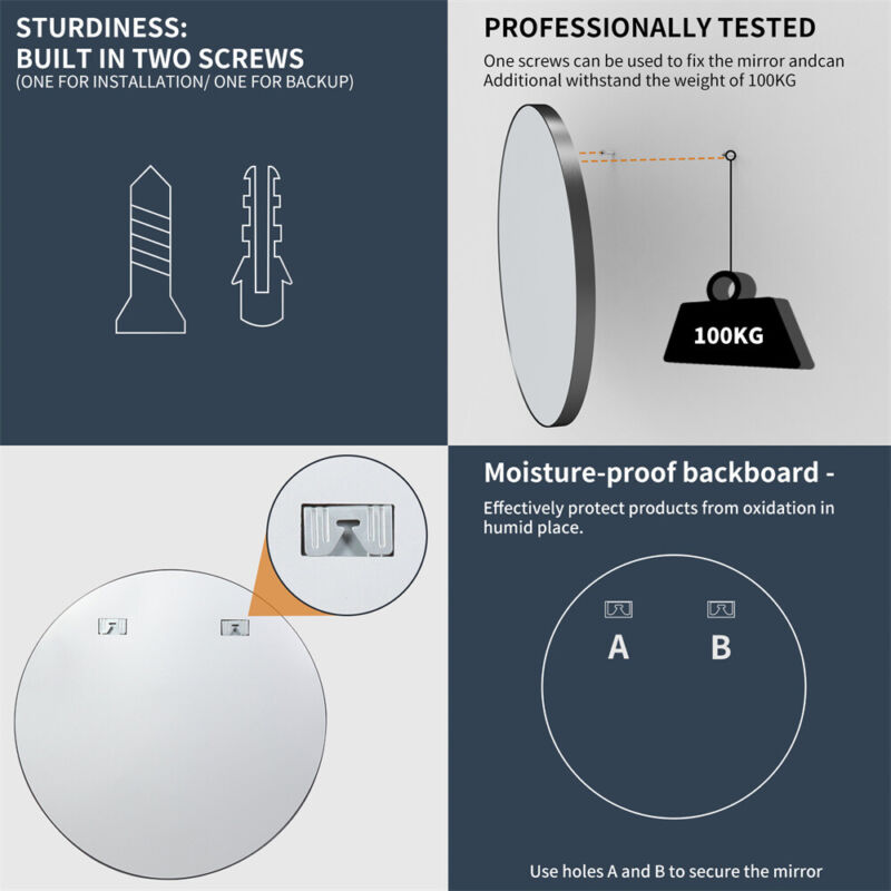 Decorative Black Framed Wall Bathroom Mirror Makeup Vanity Washroom Bedroom Home
