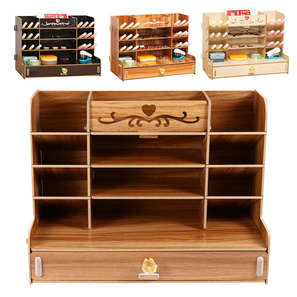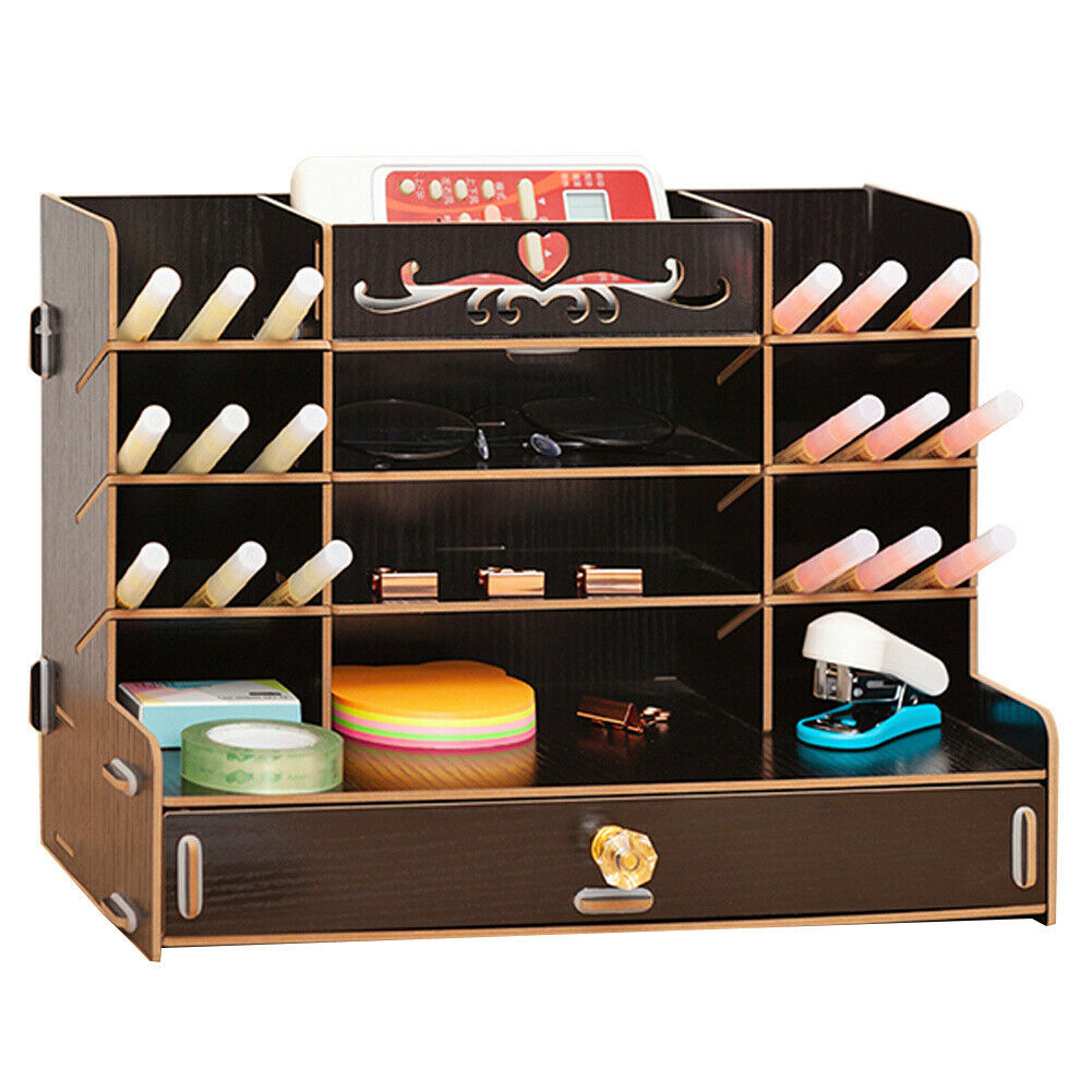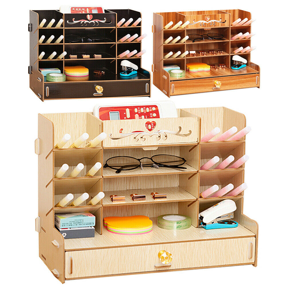 Desk Organizer Desktop Storage Brush Container Pencil Holder Pen Box & Drawer