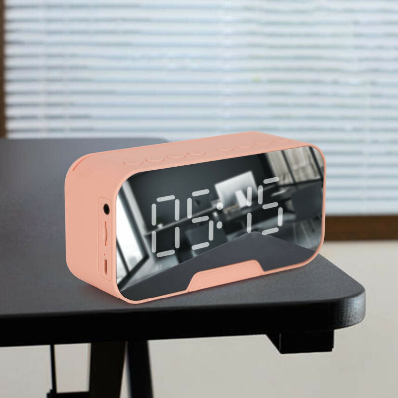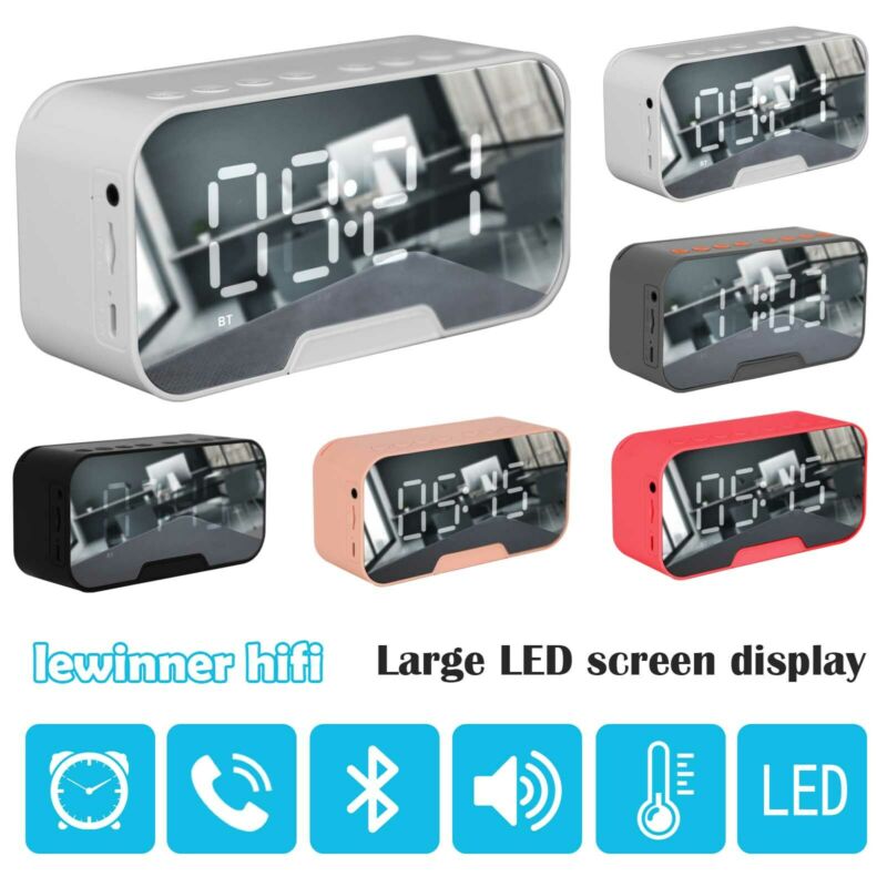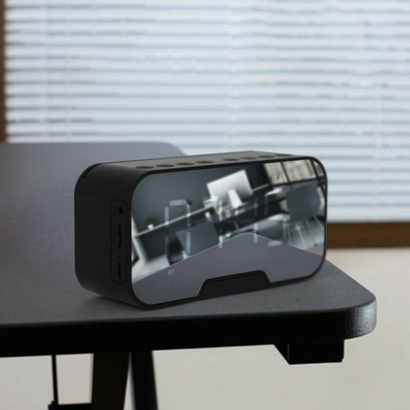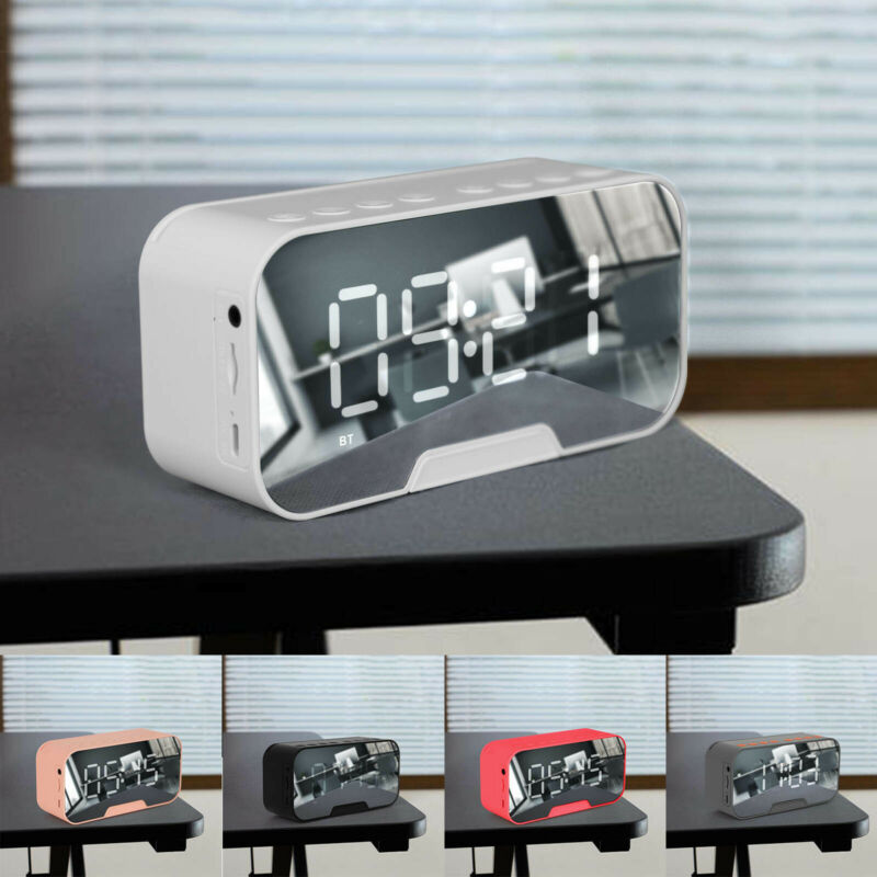 Digital Electronic Mirror Alarm Clock LED Night Light Bedside Wall Dual USB