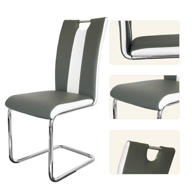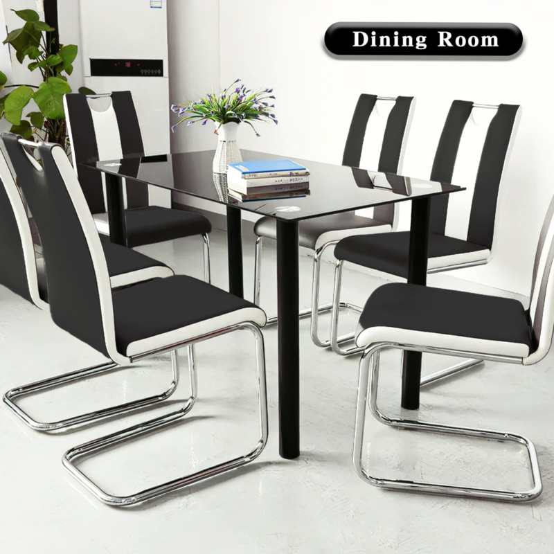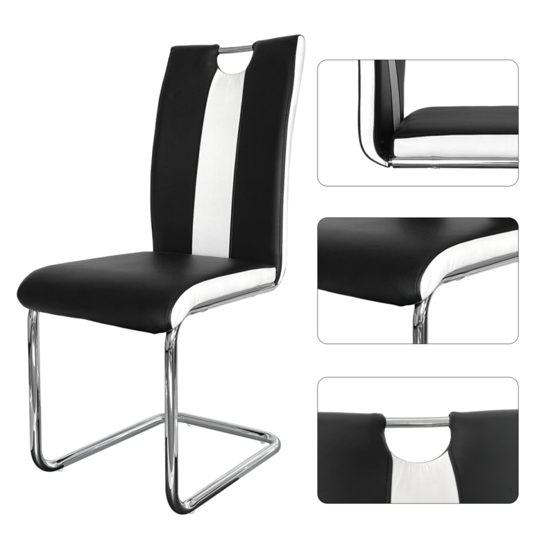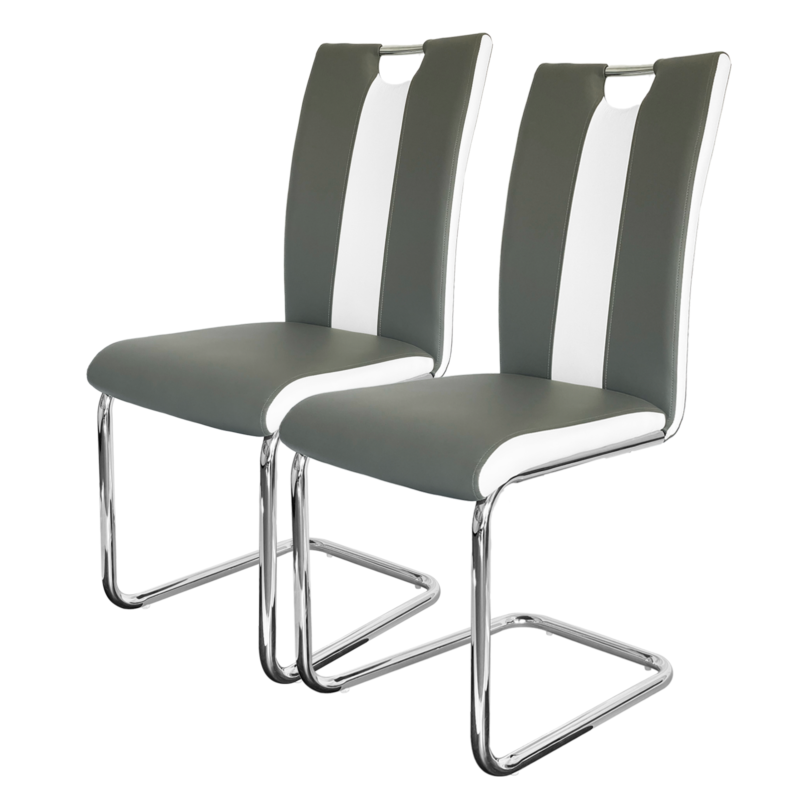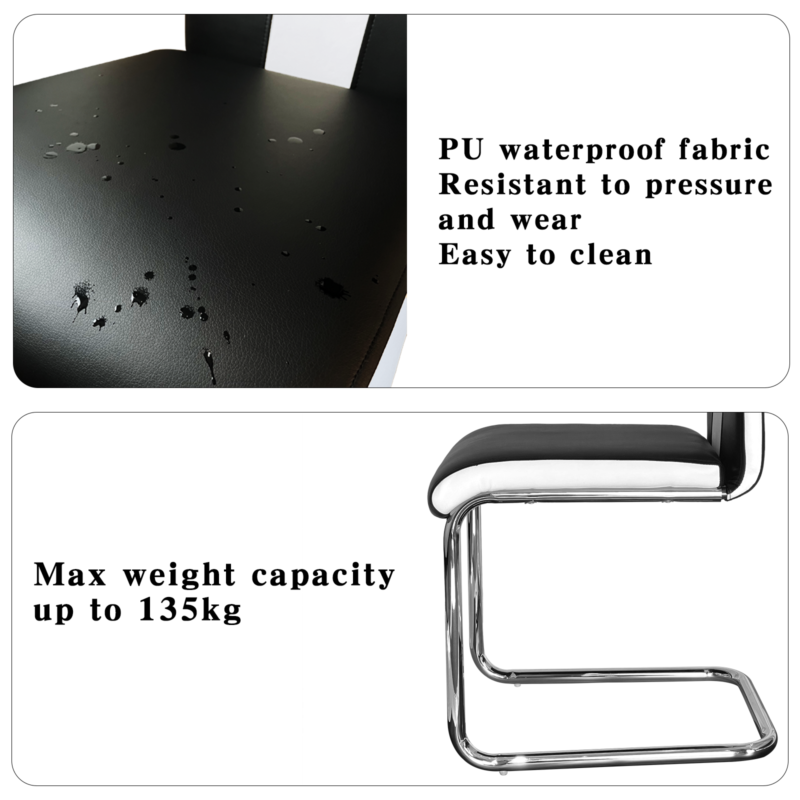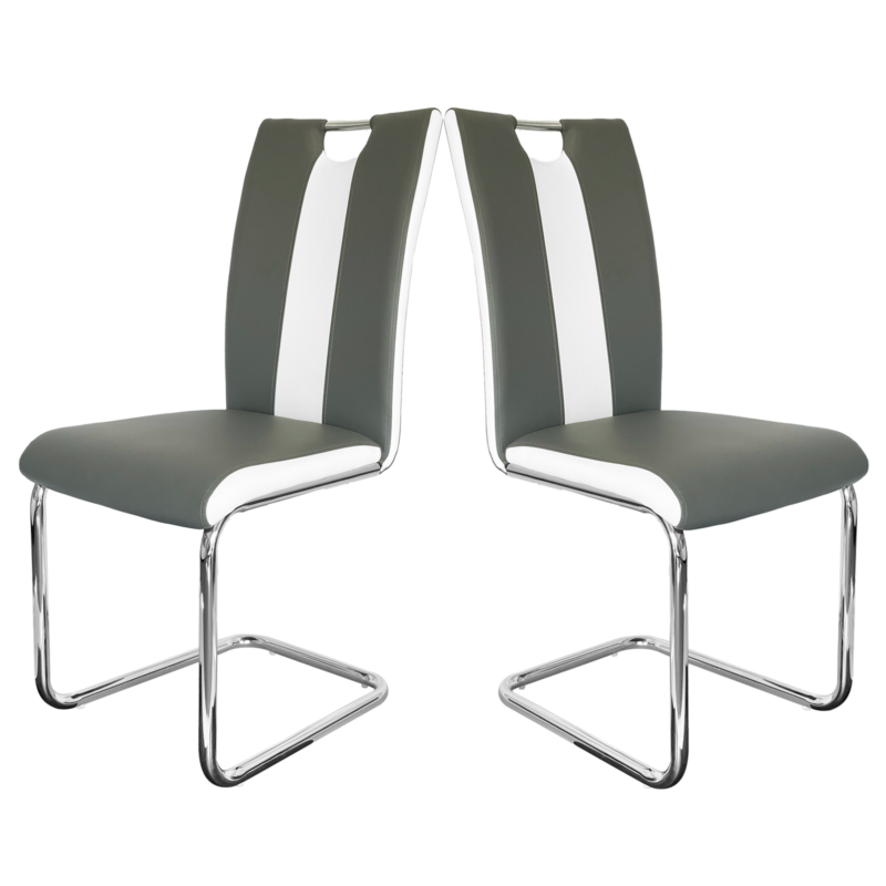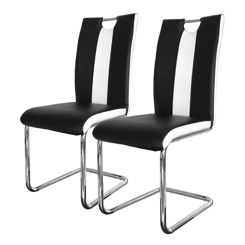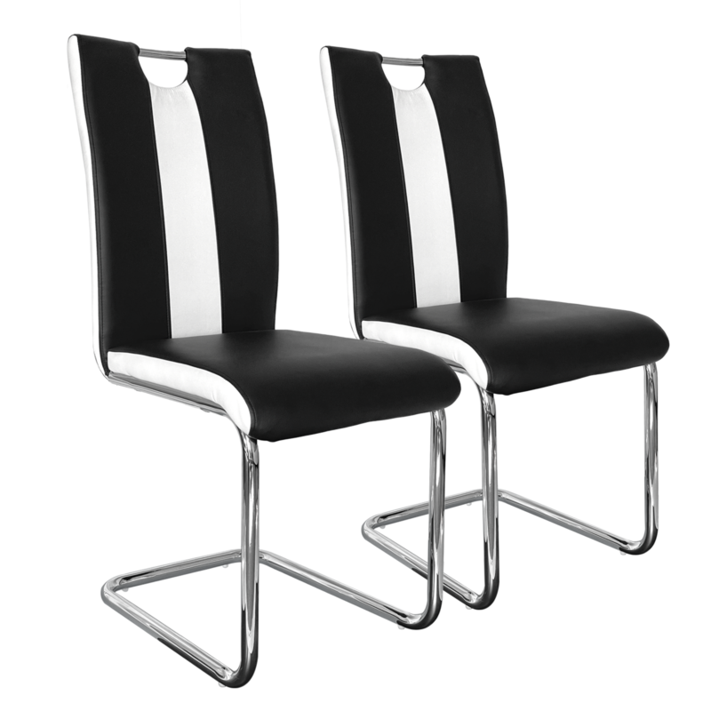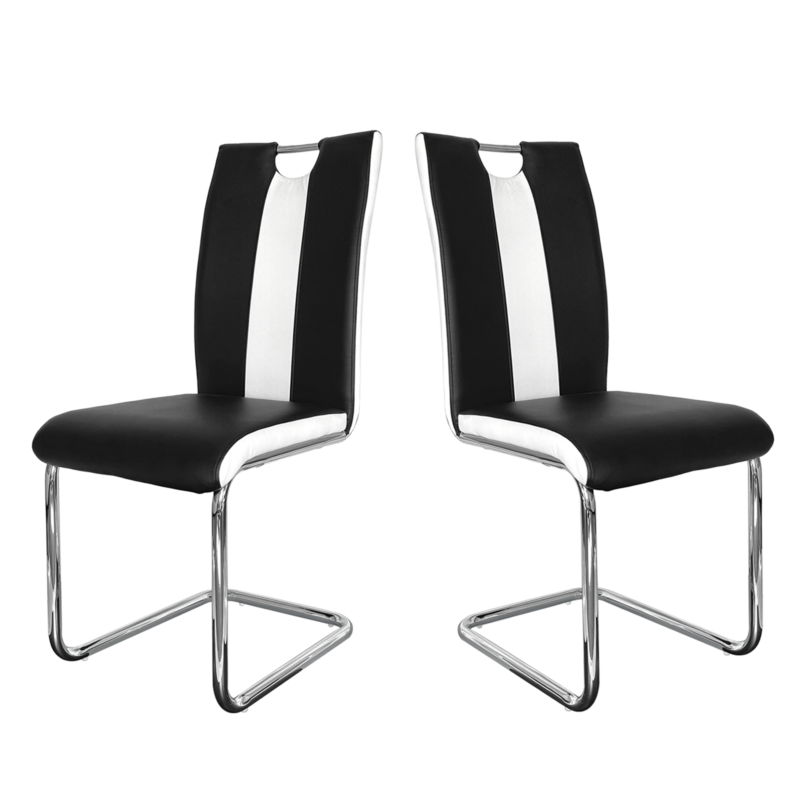 Dining Chair Set of 2 High Back PU Leather Chrome Leg Kitchen Office Padded Seat