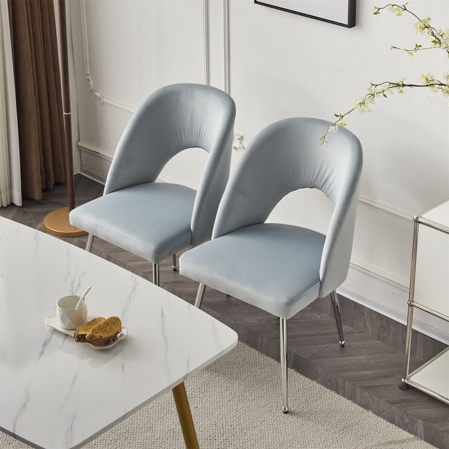 Dining Chair Set of 4 Velvet Upholstered Padded Seat Metal Legs Side Chairs Grey