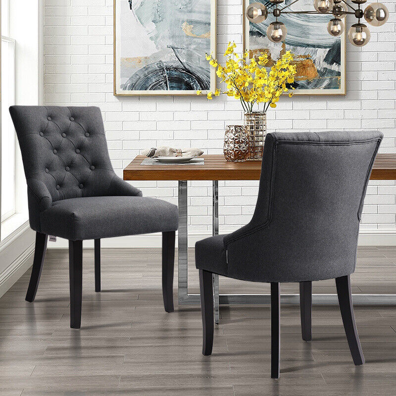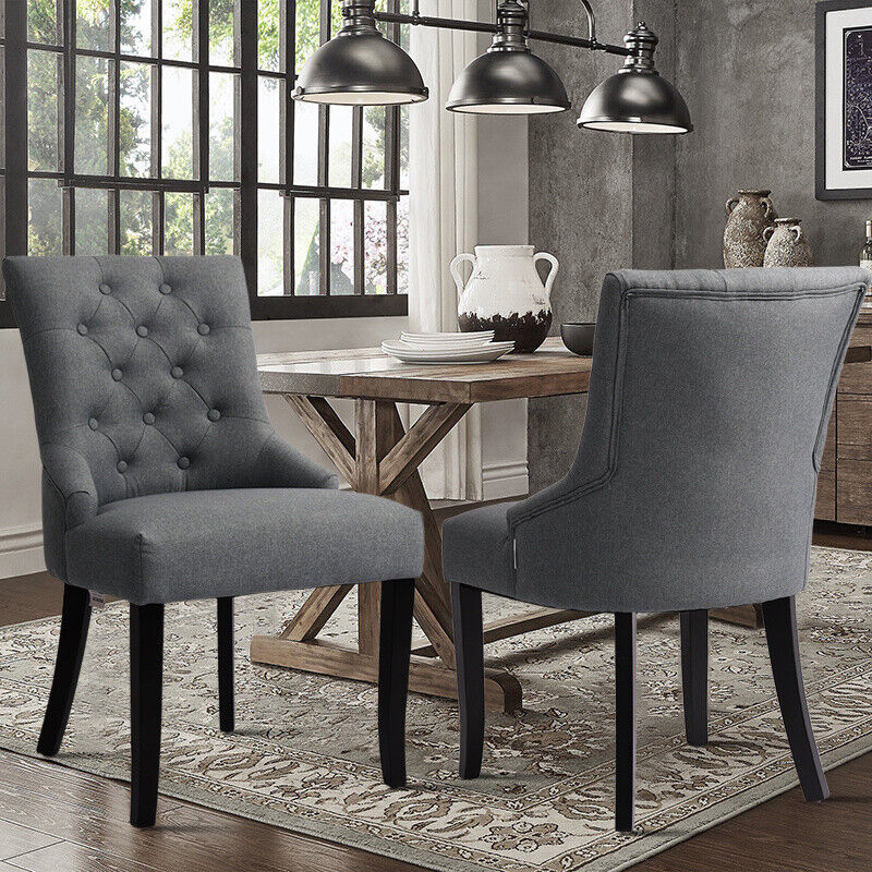 Dining Chairs Set of 2/4 Grey Linen Fabric Home Kitchen Chair Soft Padded Seat
