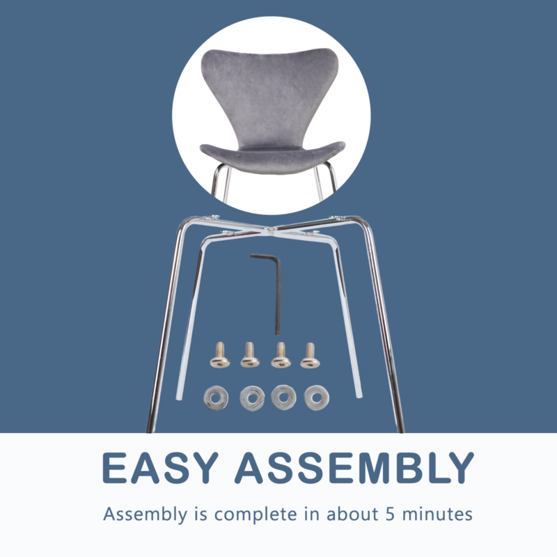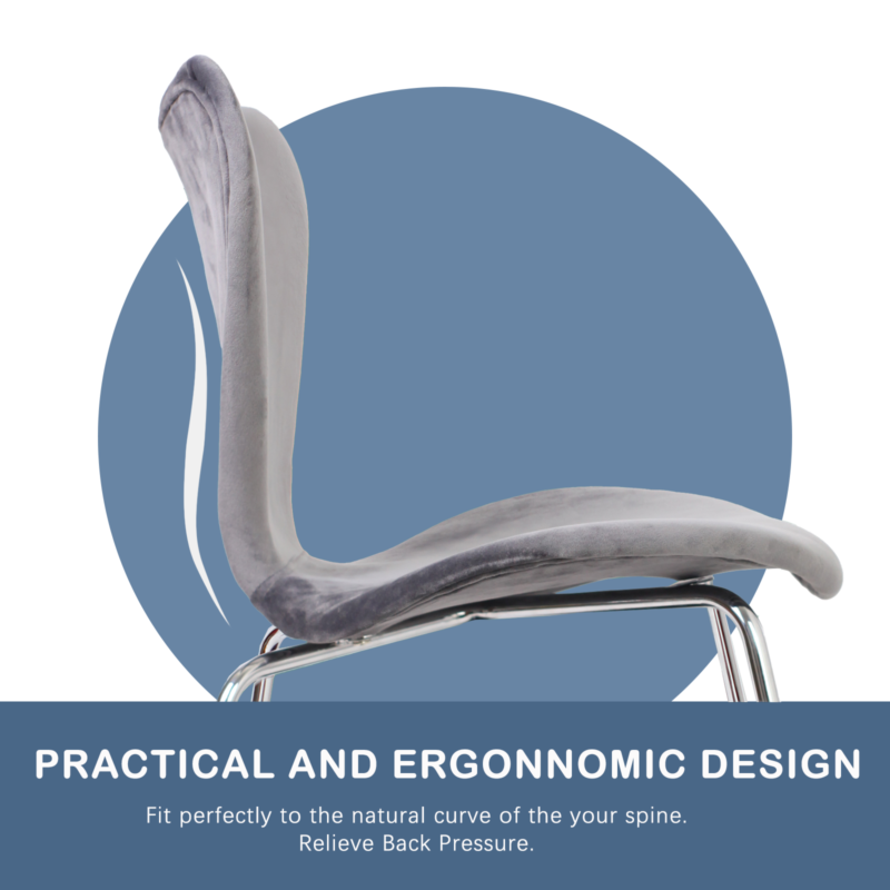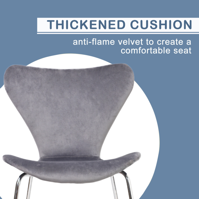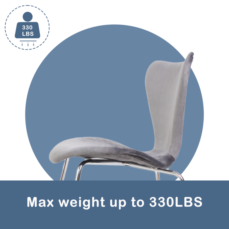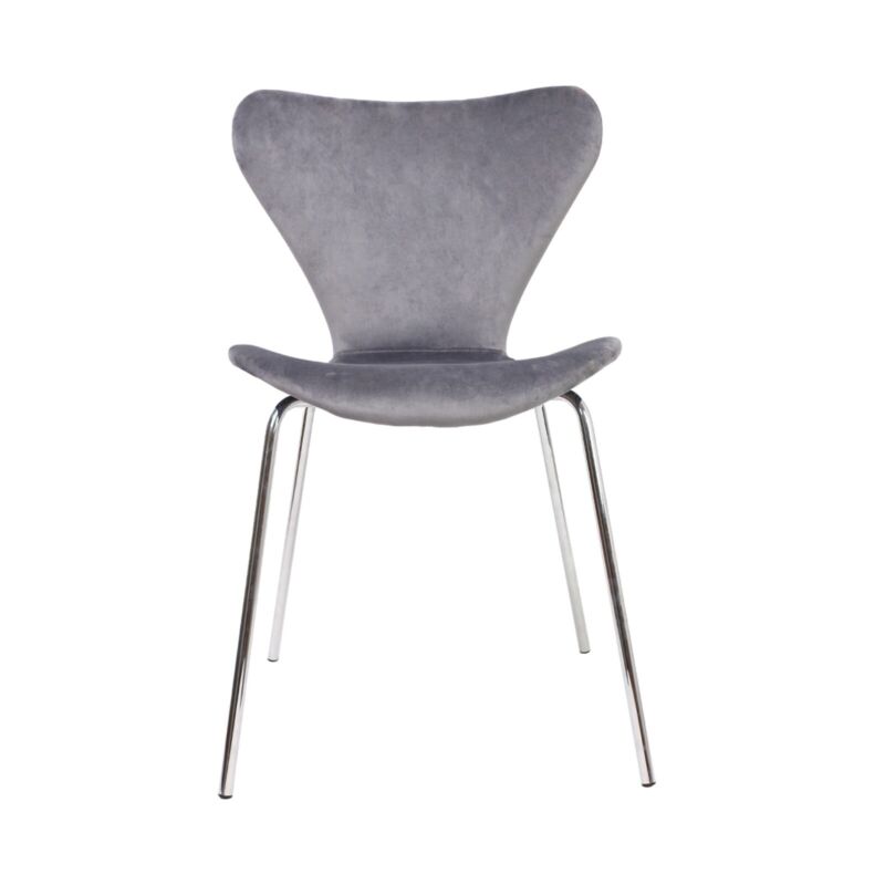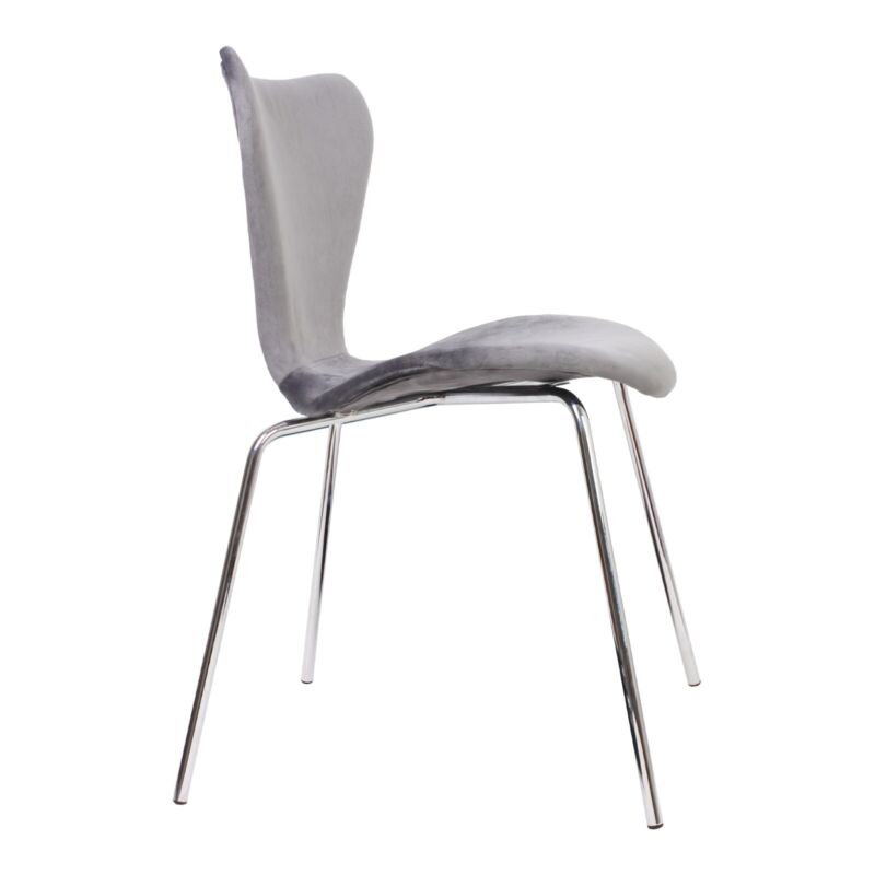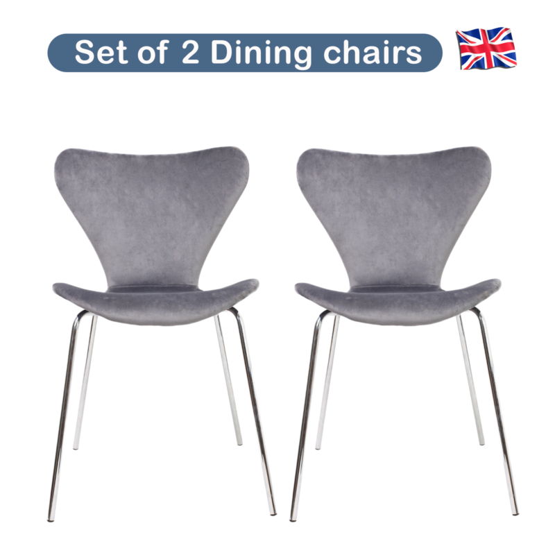 Dining Chairs Set of 2 Velvet Grey Padded Seat Chrome Legs Kitchen Home Office