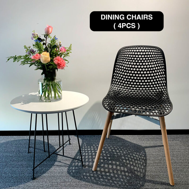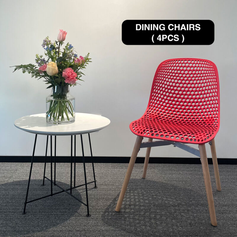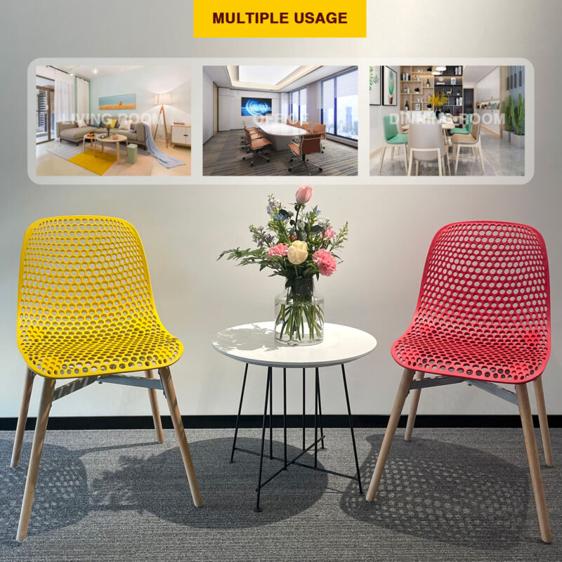 Dining Chairs Set of 4 Retro Eiffel Kitchen Chairs Wooden Legs Plastic Chair