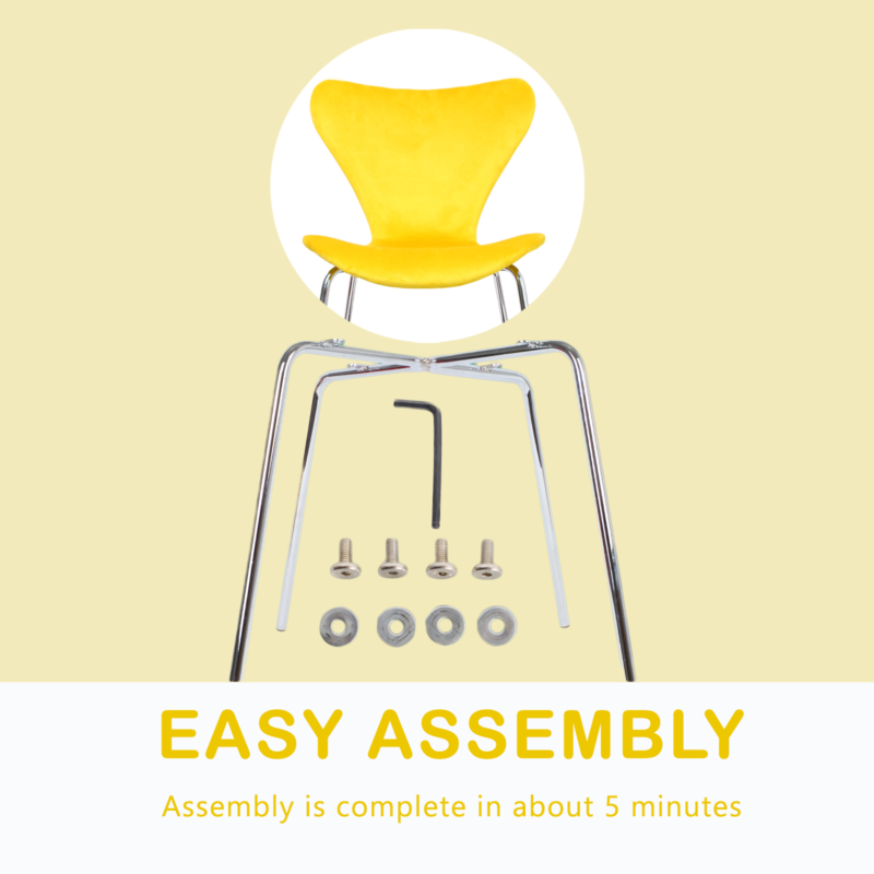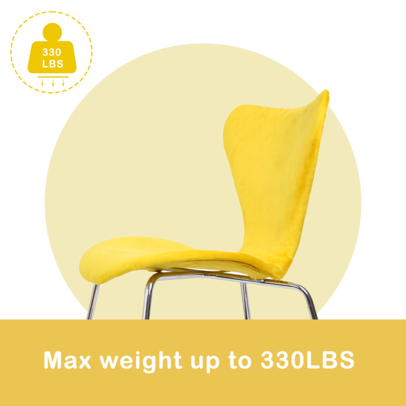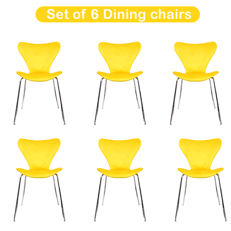 Dining Chairs Set of 6 Velvet Padded Seat Chrome Legs Kitchen Home Office Yellow