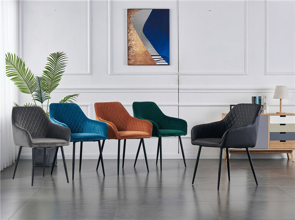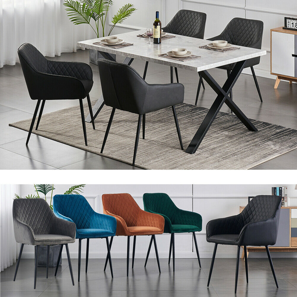 Dining Chairs Set Velvet / Faux Leather Upholstered Metal Legs Chair Armchair UK