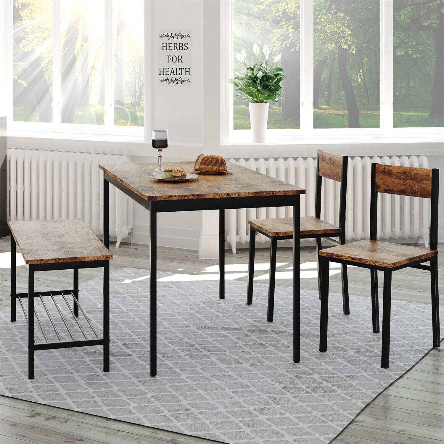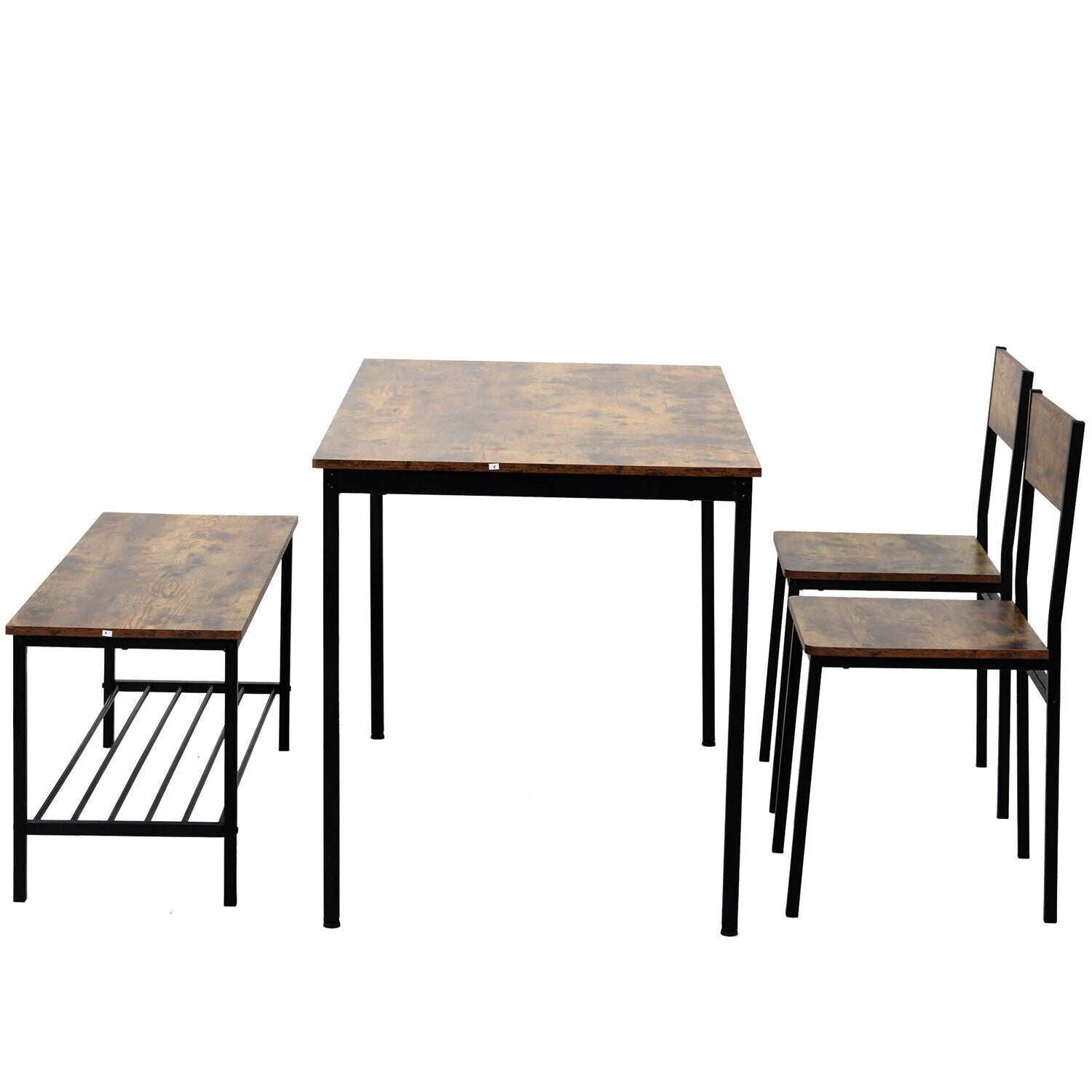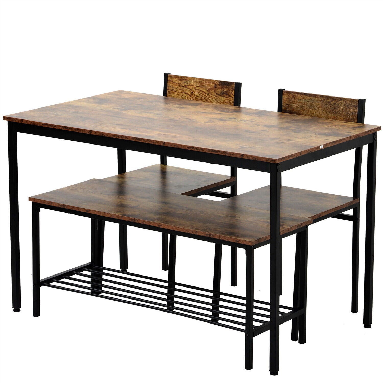 Dining Table and 2 Chairs Set Bench Seat 4 Seater Home Kitchen Room Furniture