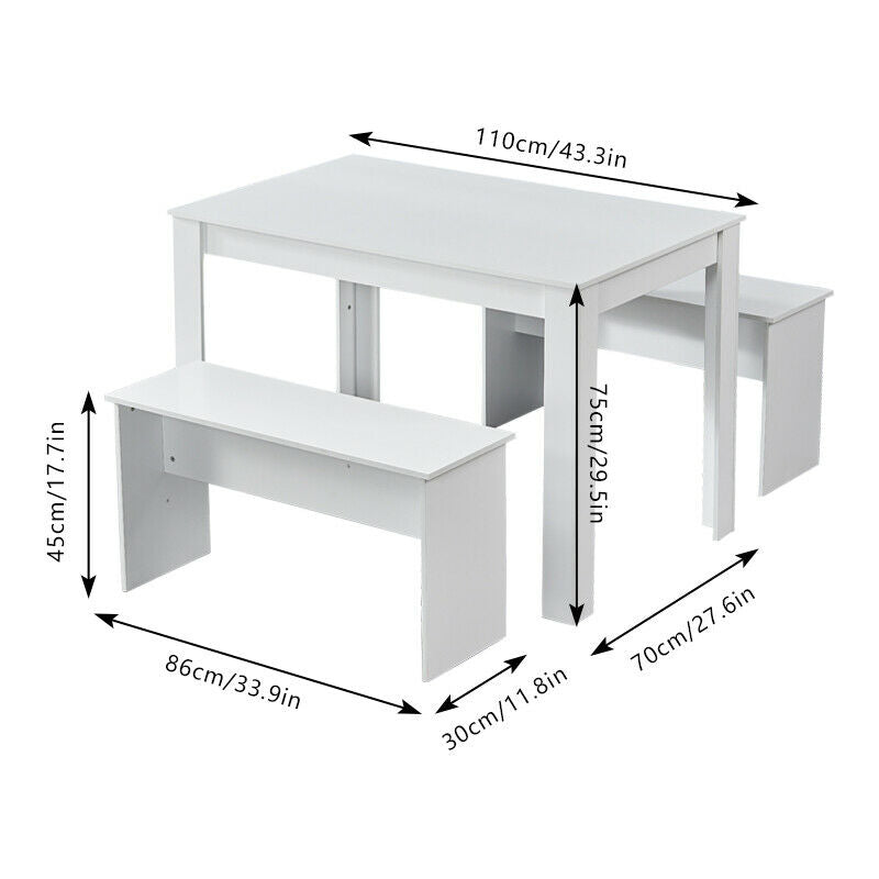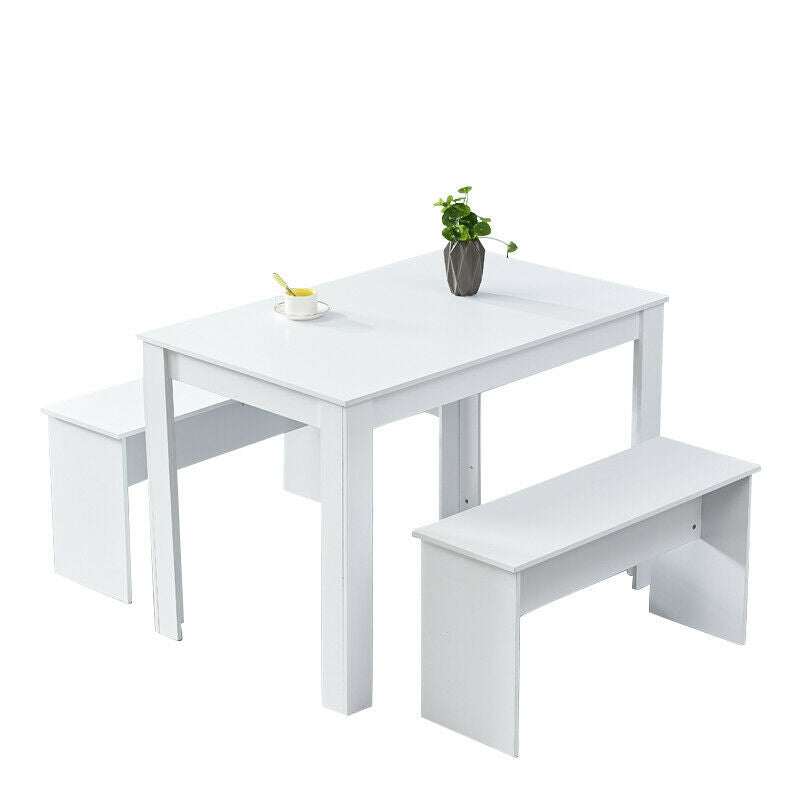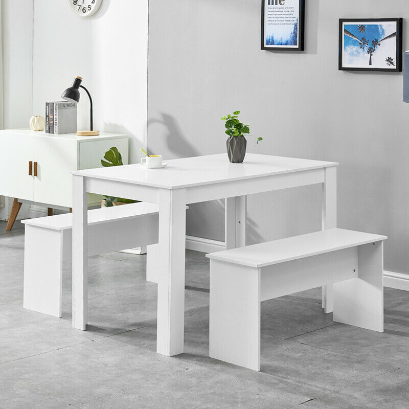 Dining Table and Bench Set Solid Dining Room Unit Kitchen Furniture White Home