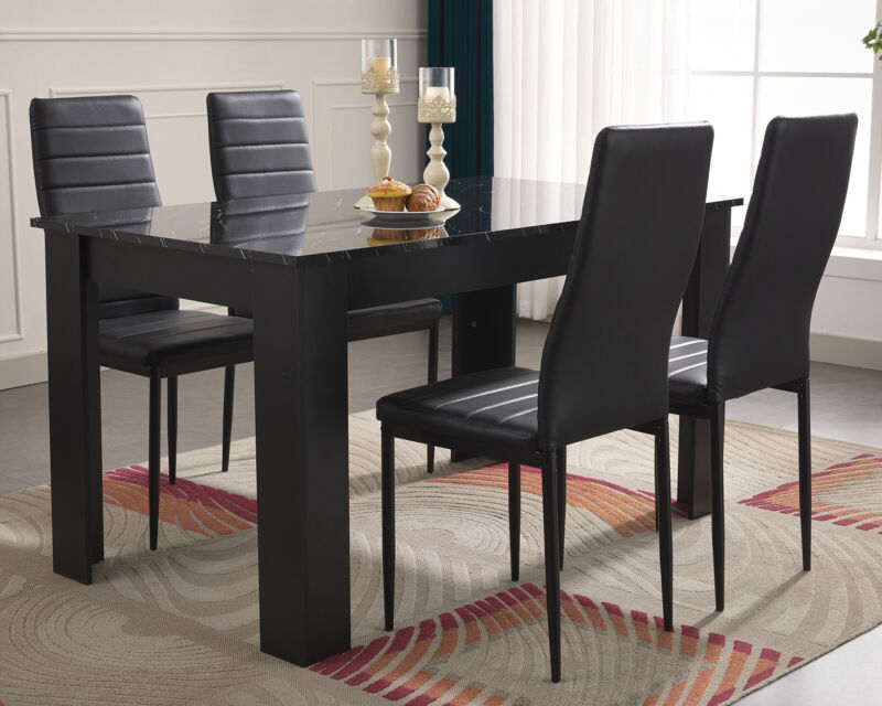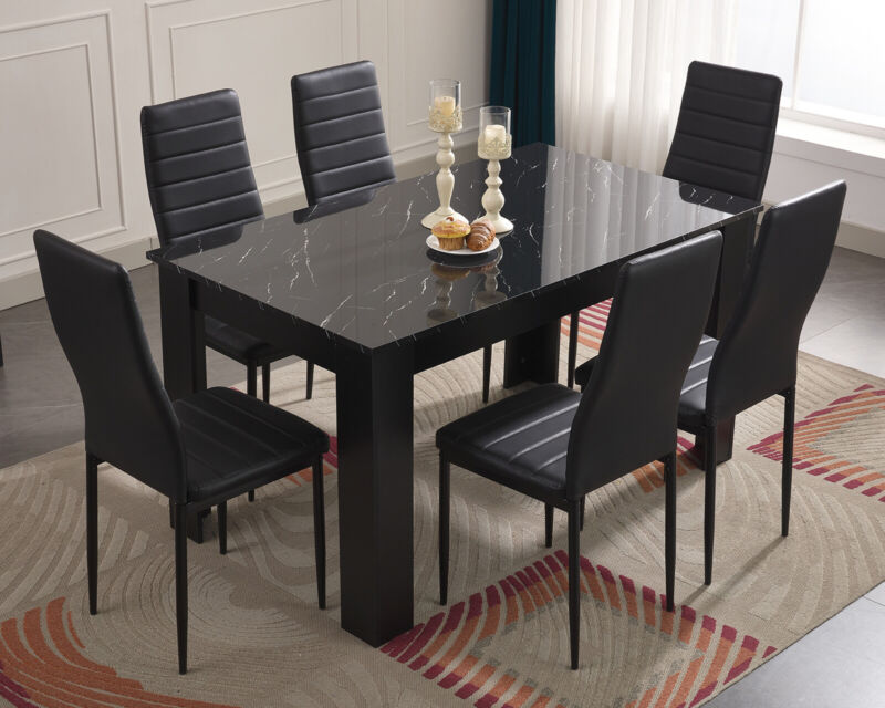 Dining Table and Chairs 4/6 Set Pu Leather Seat Dining Kitchen Room Furniture