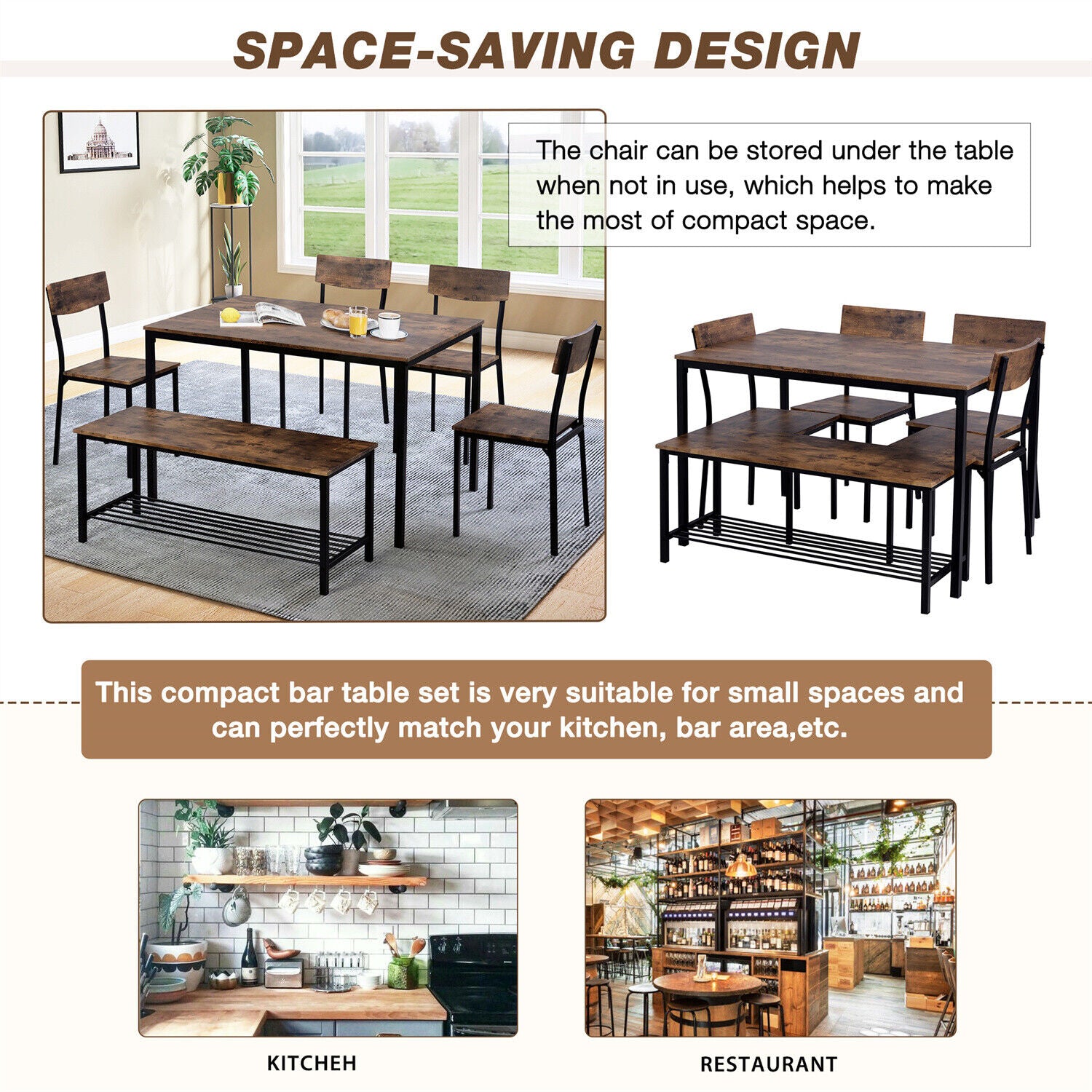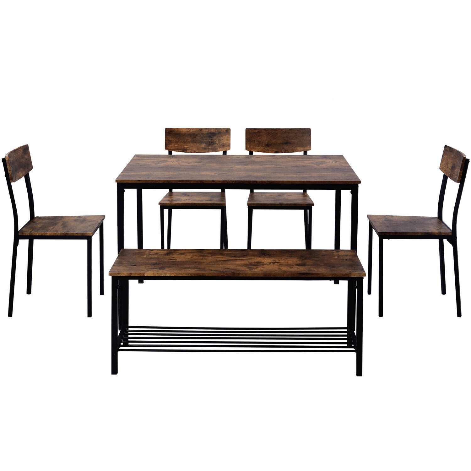 Dining Table and Chairs Bench Set of 6 Metal Frame Kitchen Dining Room Furniture