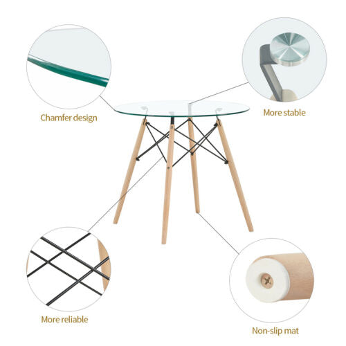 Dining Table Round Clear Glass Table Modern Style Table for Kitchen Dining Room