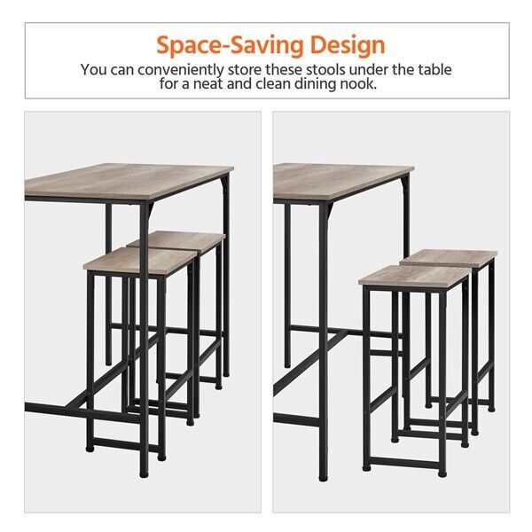 Dining Table Set Industrial Kitchen Table Set with 2 Stools for Small Space