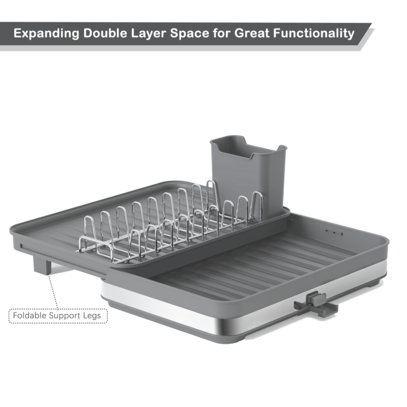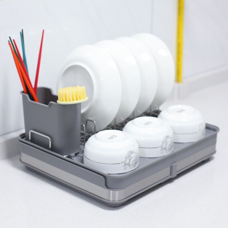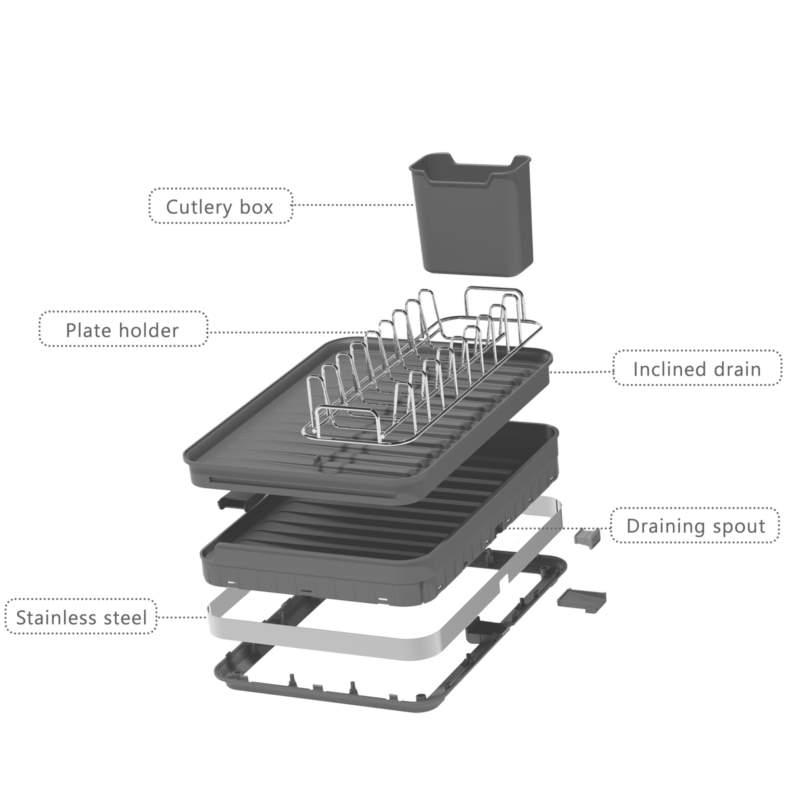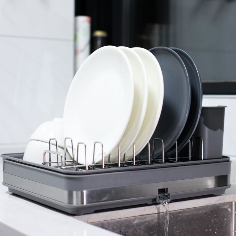 Dish Drainer Dry Rack Large Removable Tray Plate Cup Cutlery Kitchen Holder Grey